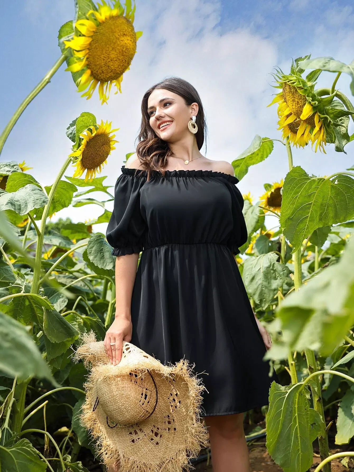 Plus Off-shoulder Ruffle A Line Dress