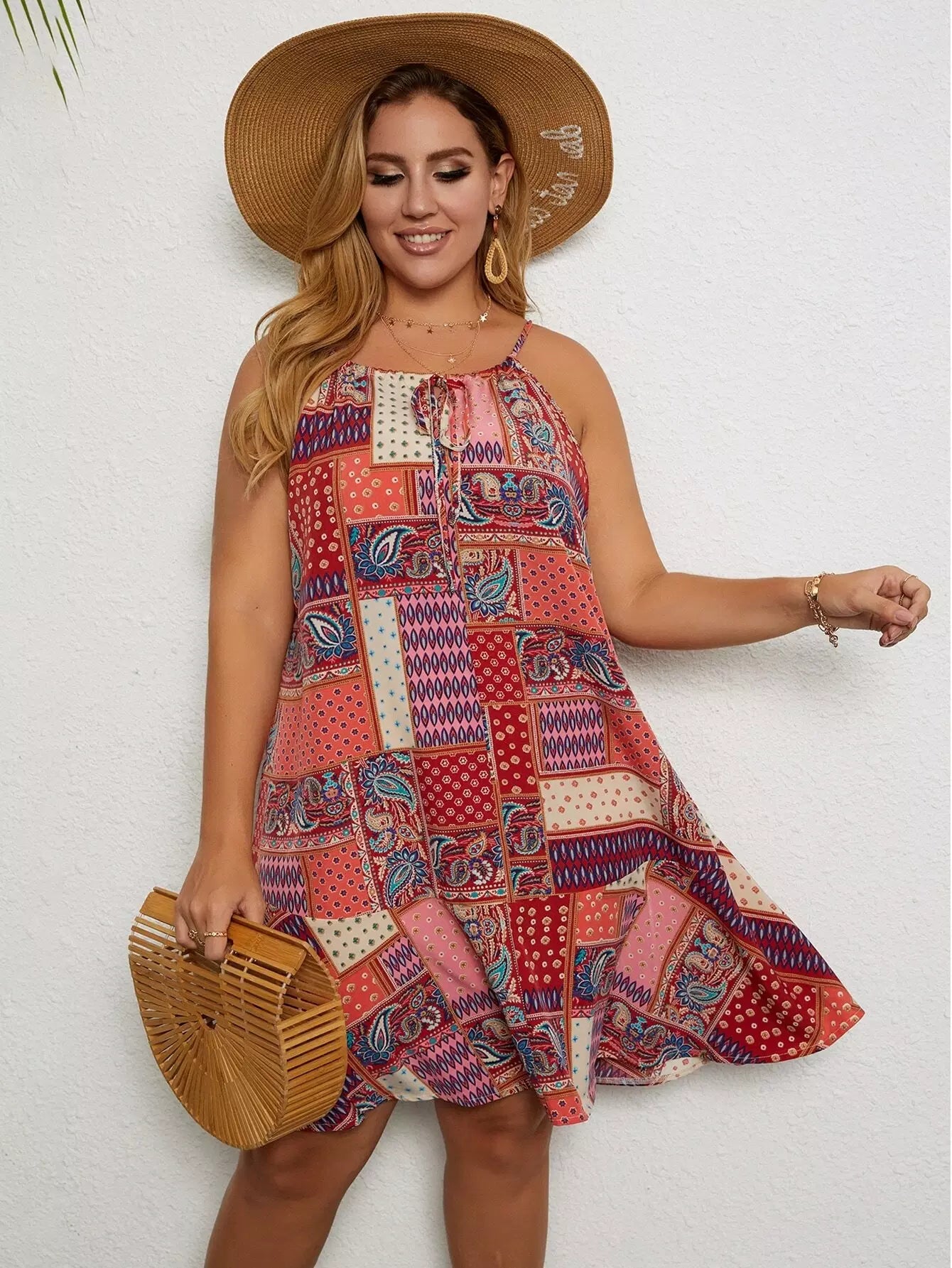 Plus Paisley And Patchwork Print Cami Dress