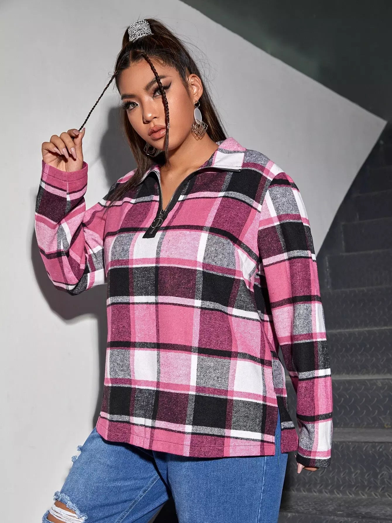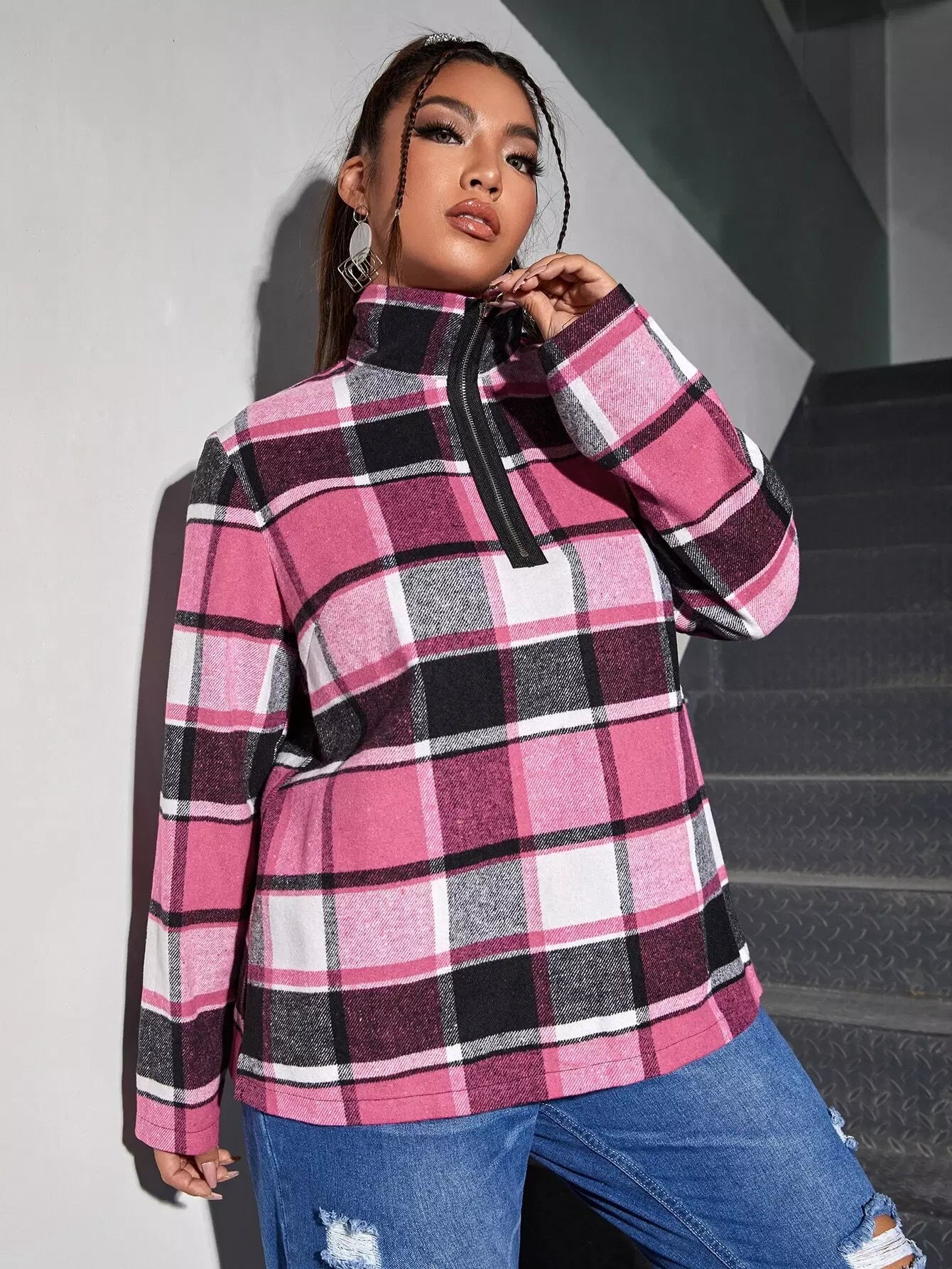 Plus Plaid O-ring Zip Sweatshirt