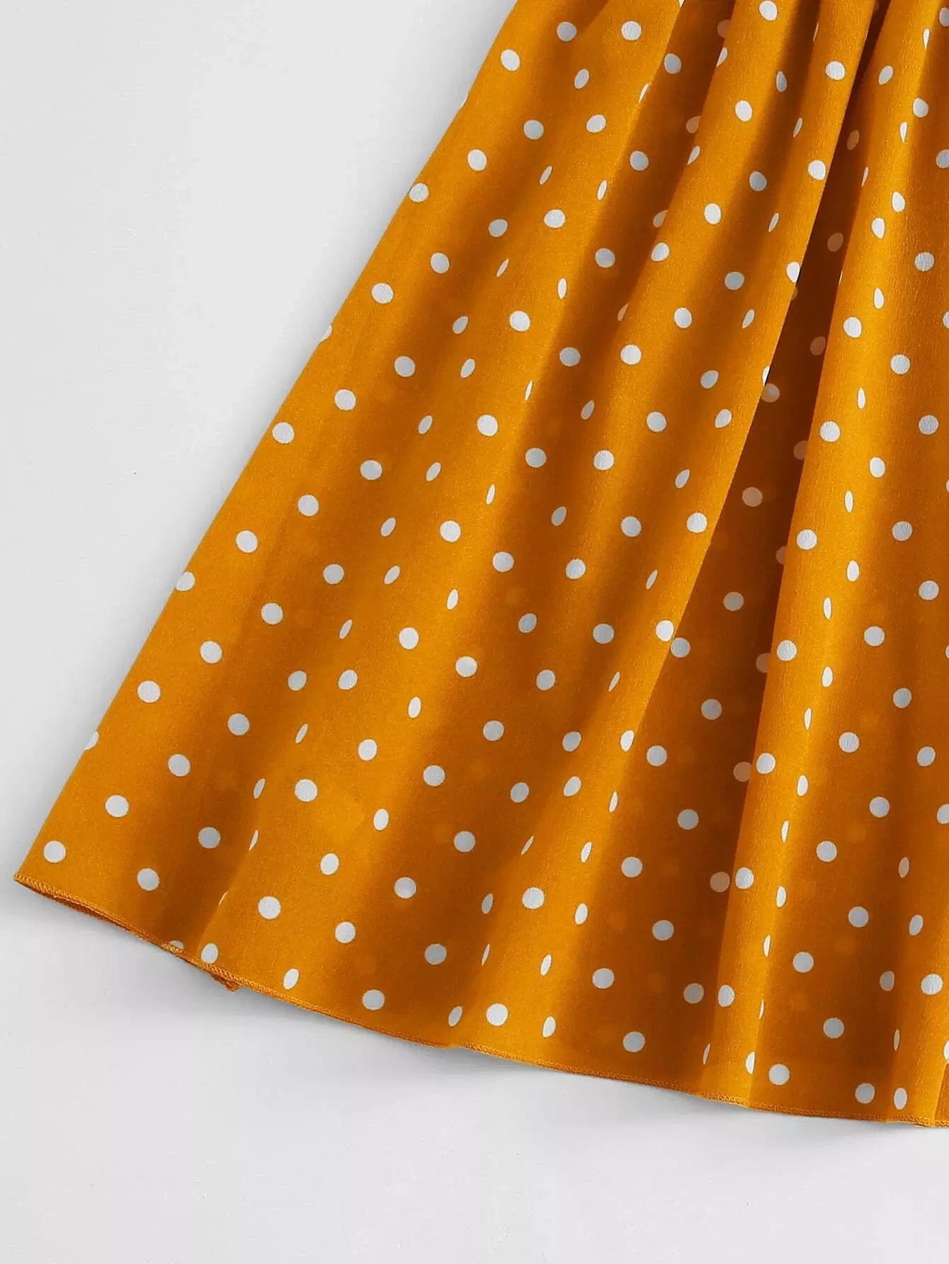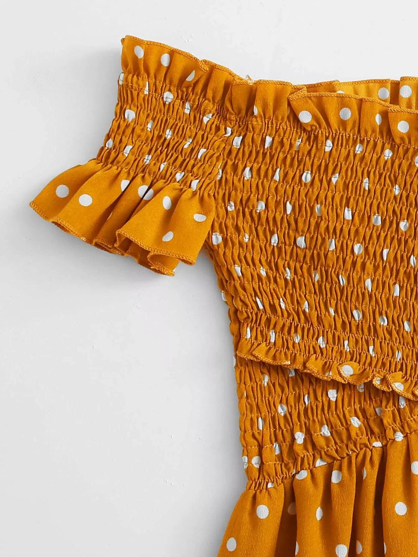 Plus Polka Dot Shirred Bodice Frill Trim Bardot Dress