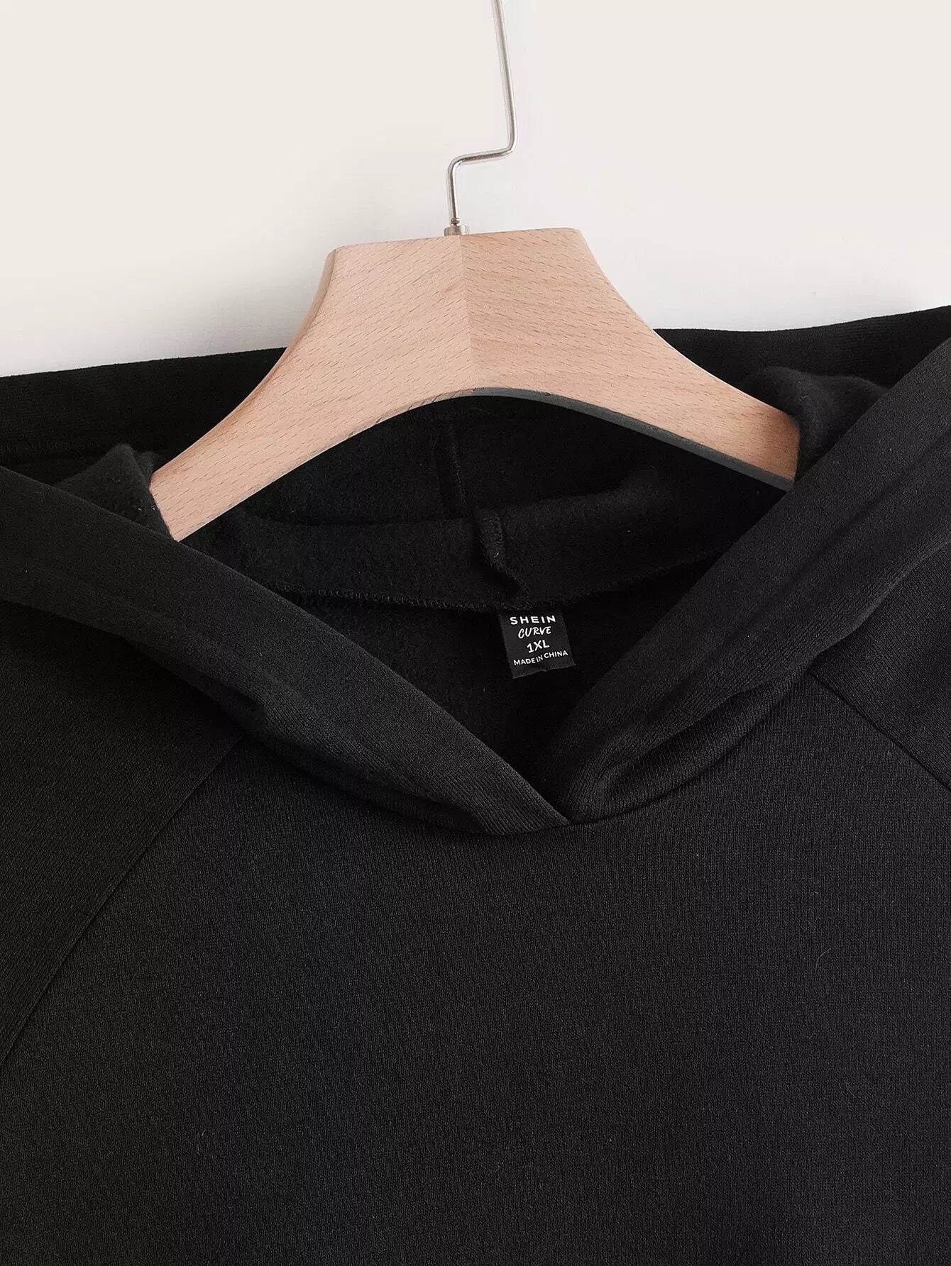 Plus Raglan Sleeve Kangaroo Pocket Thermal Hoodie