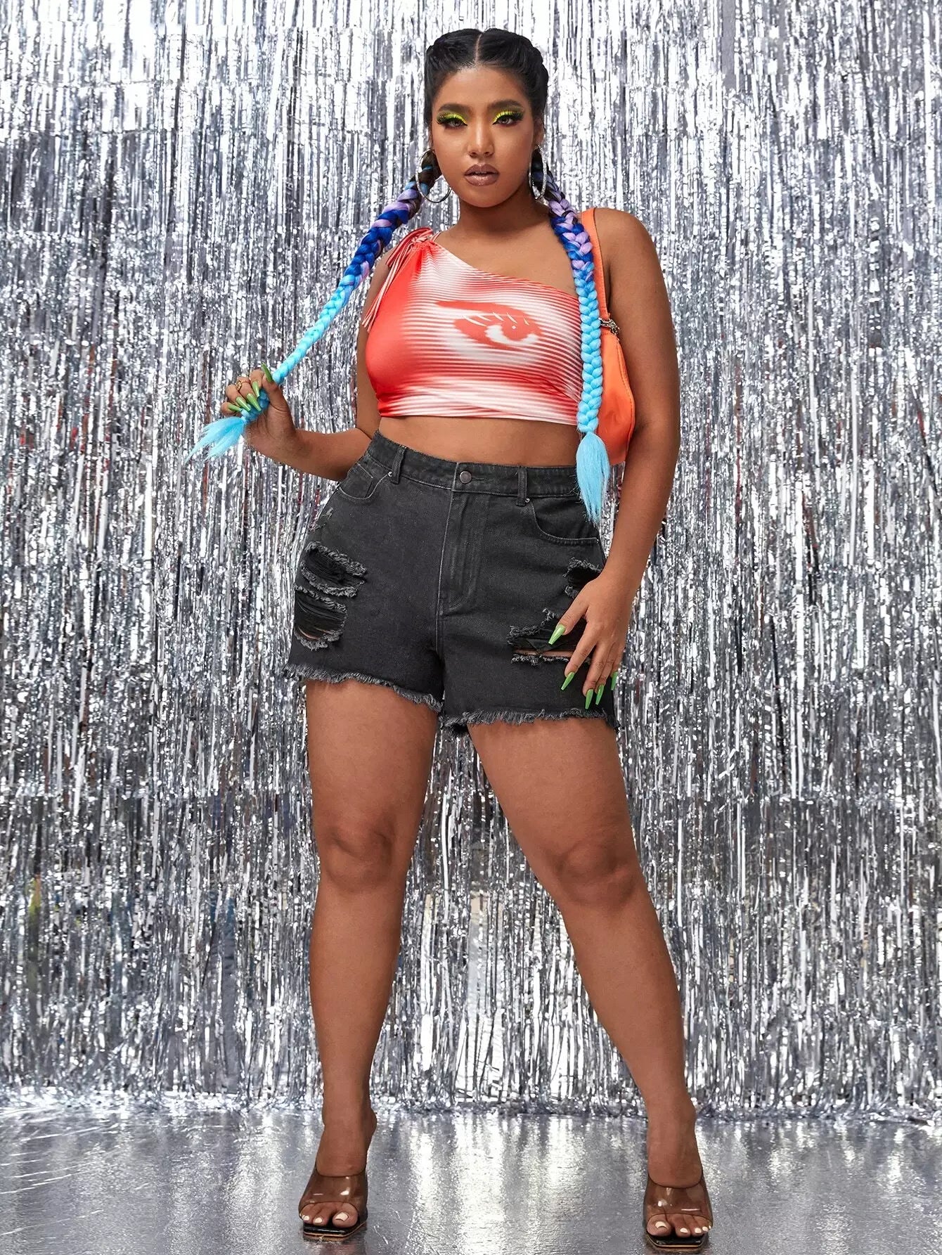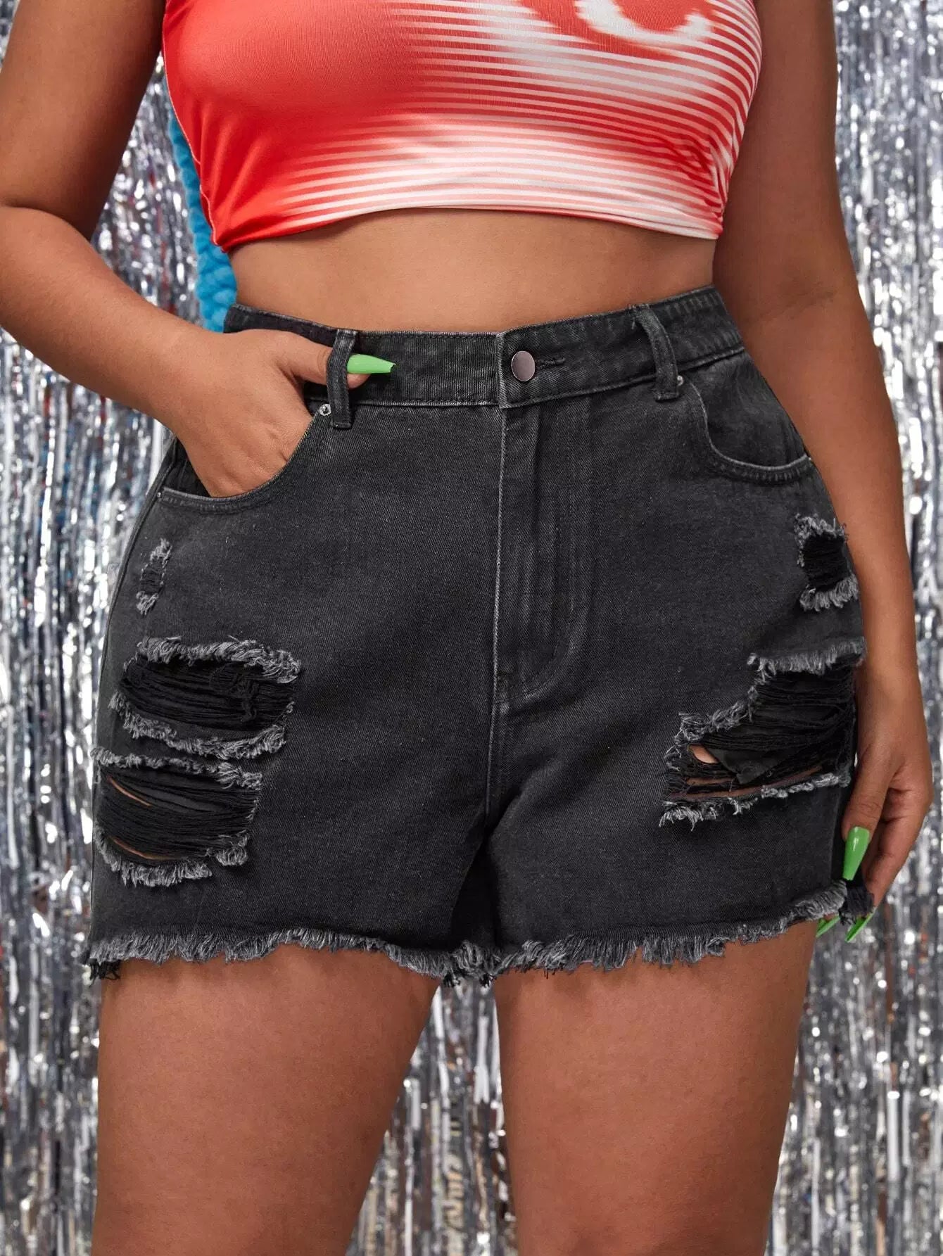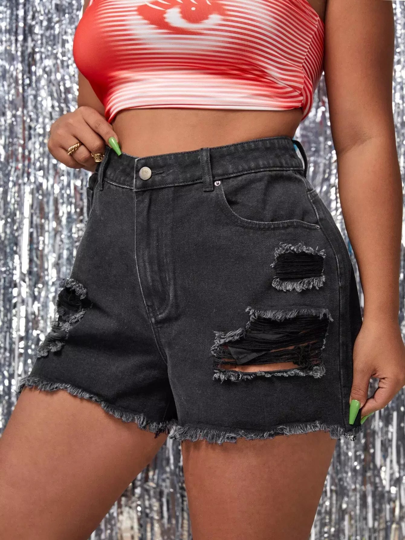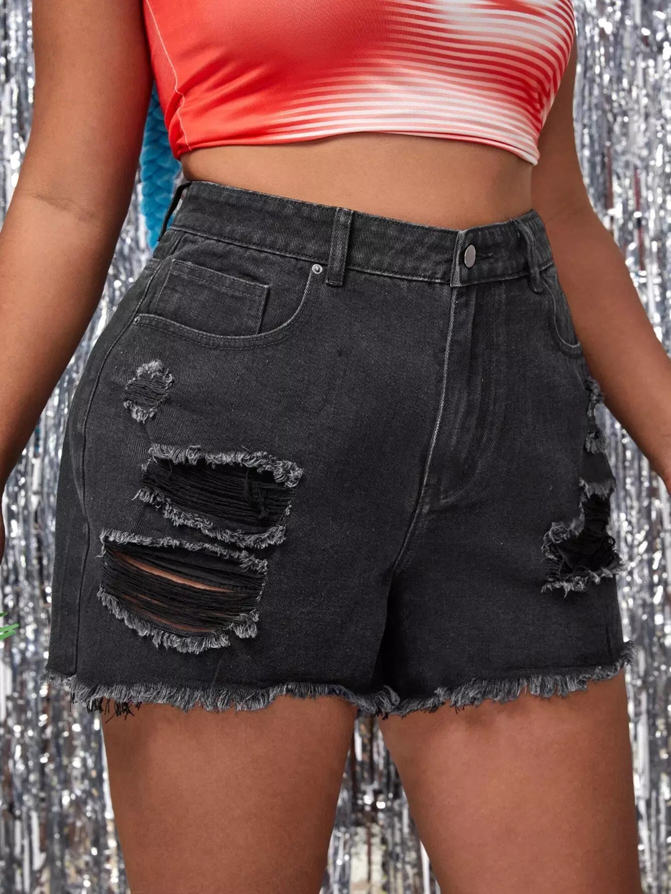 Plus Ripped Raw Hem Denim Shorts