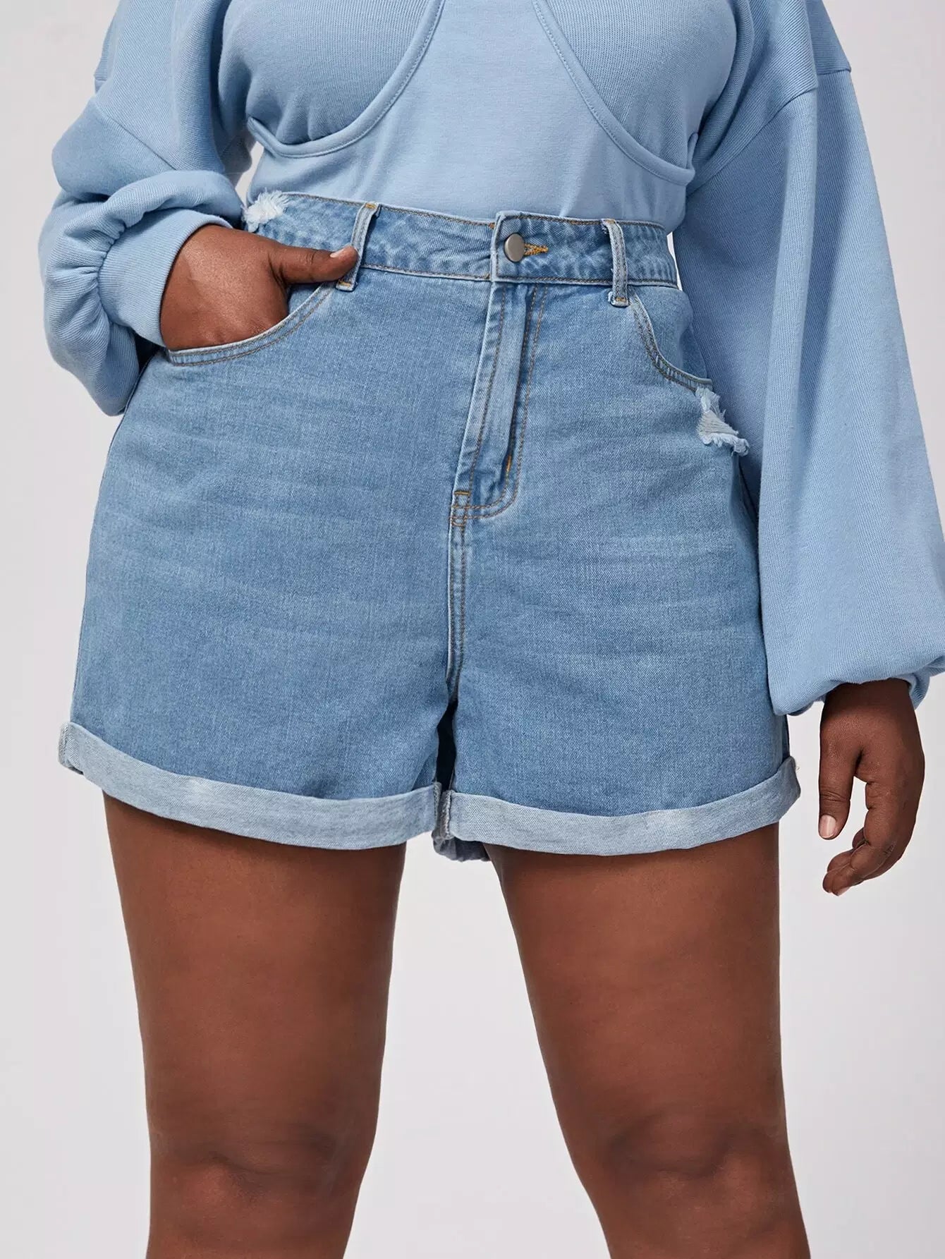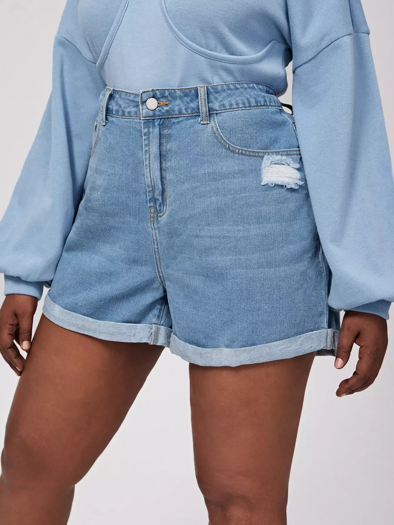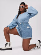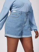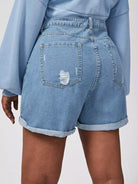 Women - Plus Ripped Roll Up Hem Denim Shorts