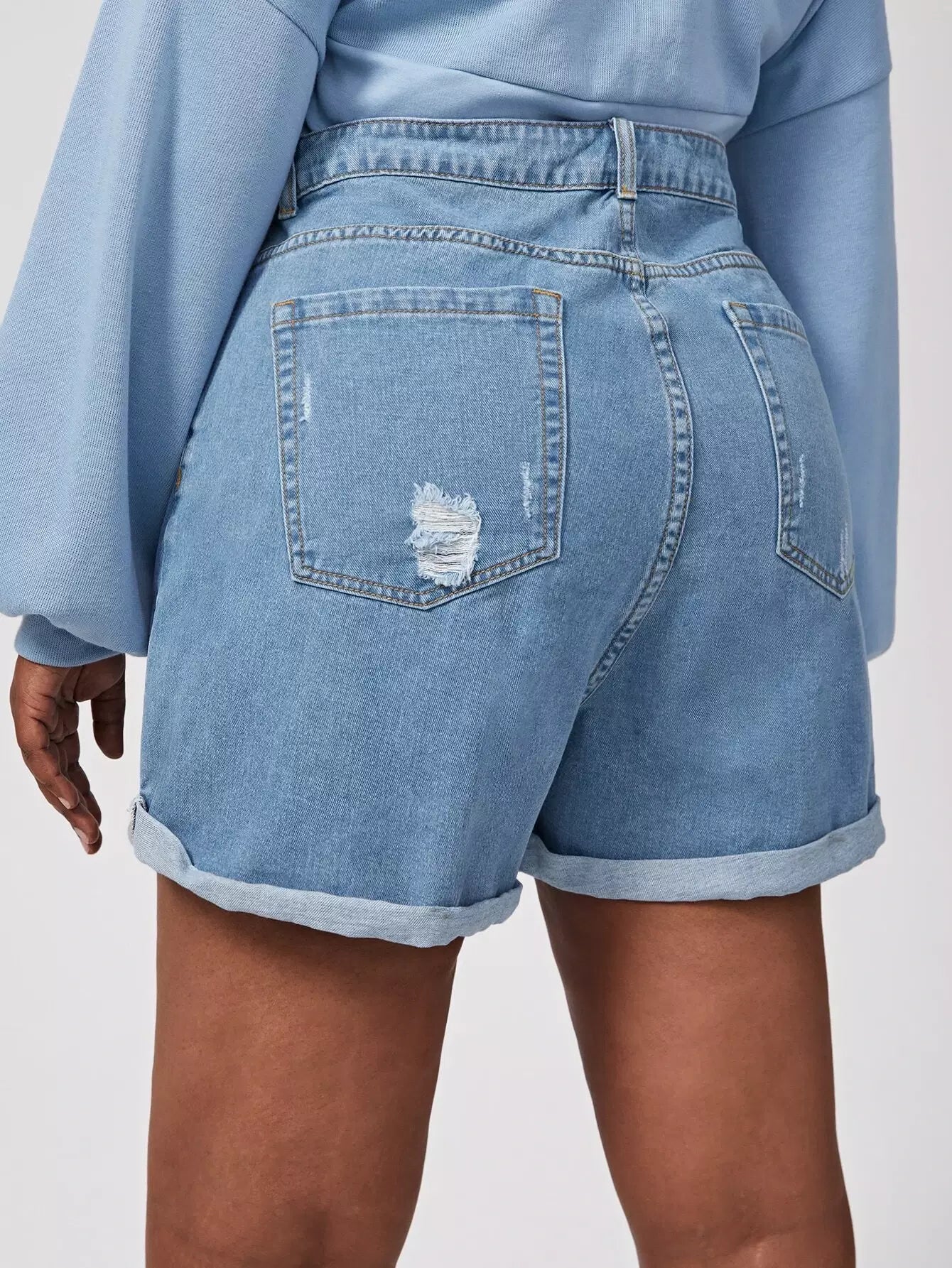 Plus Ripped Roll Up Hem Denim Shorts