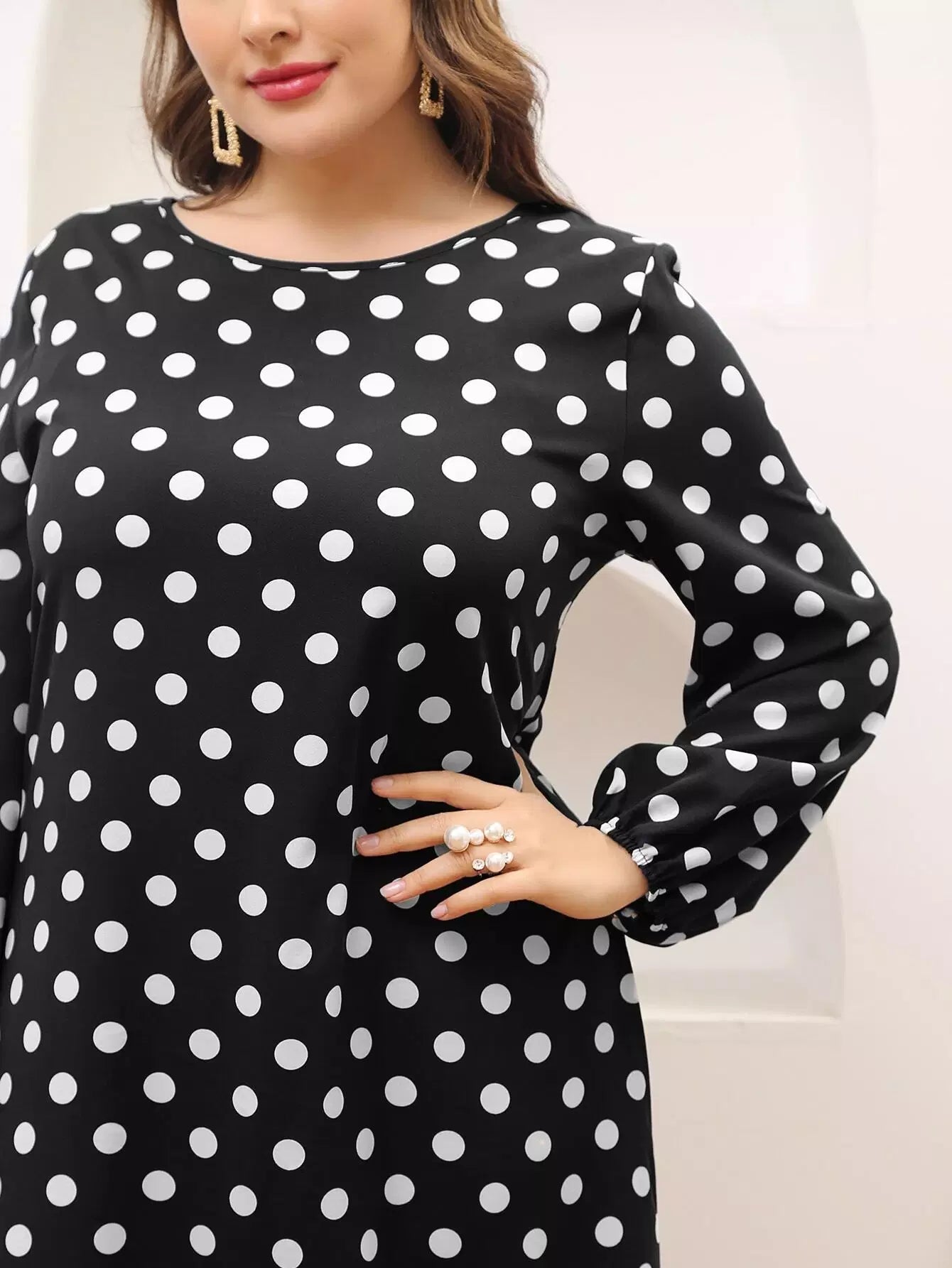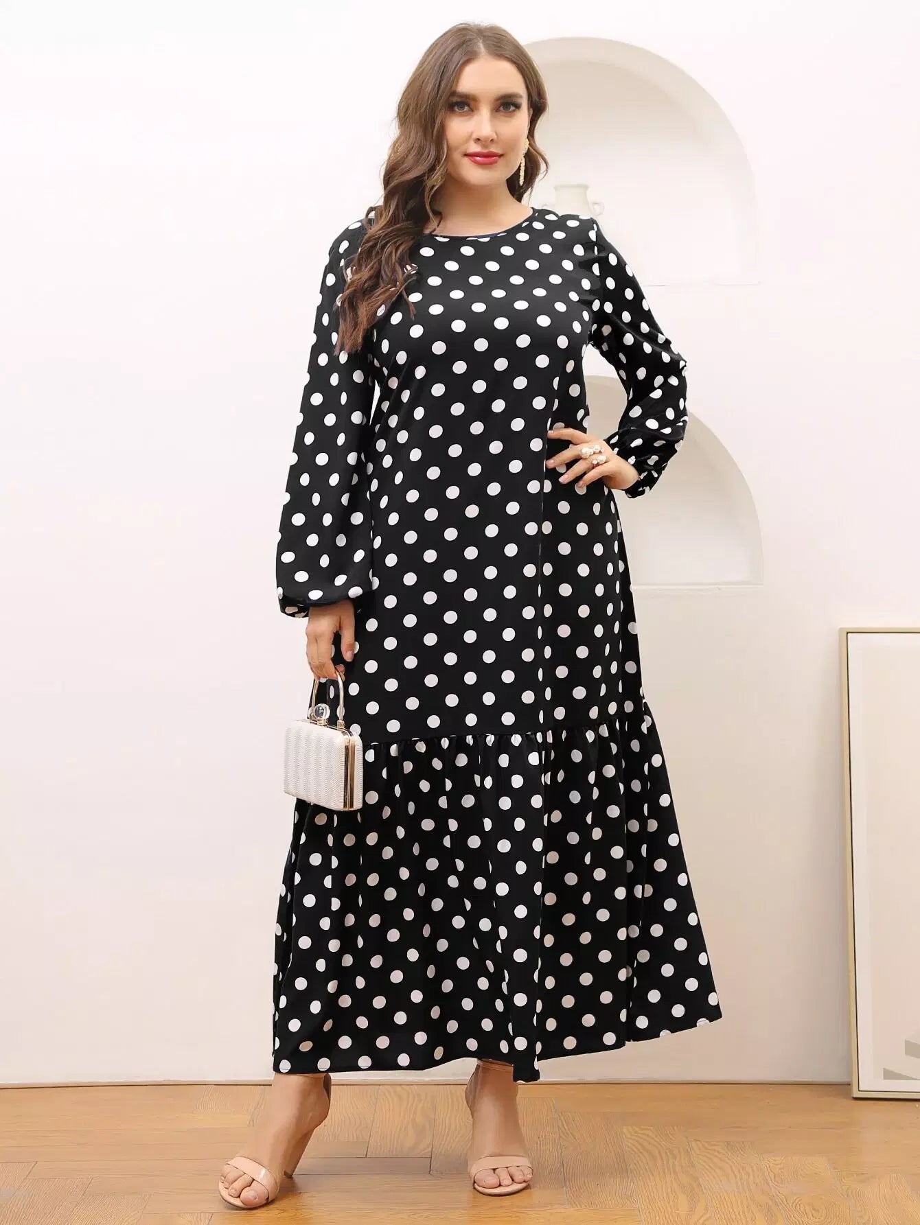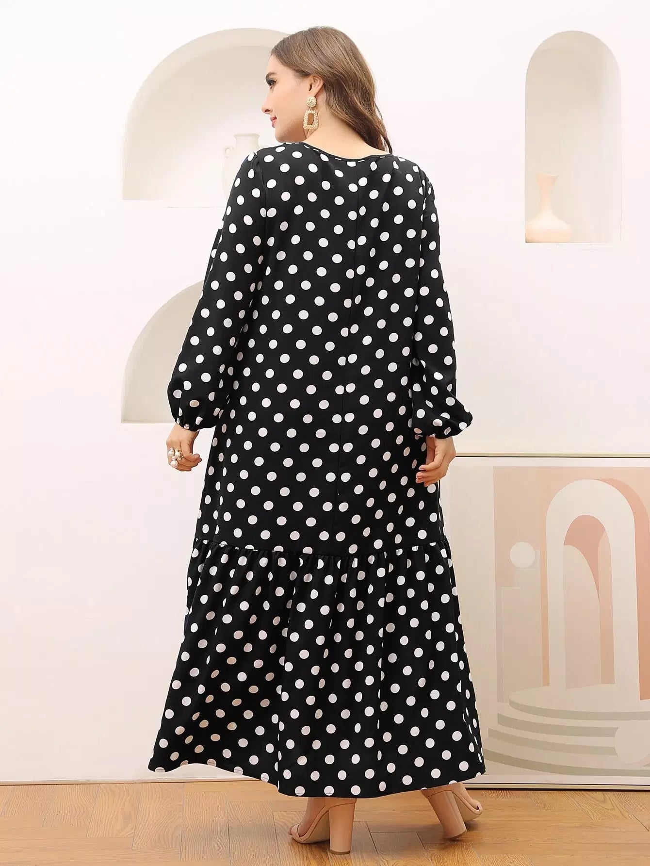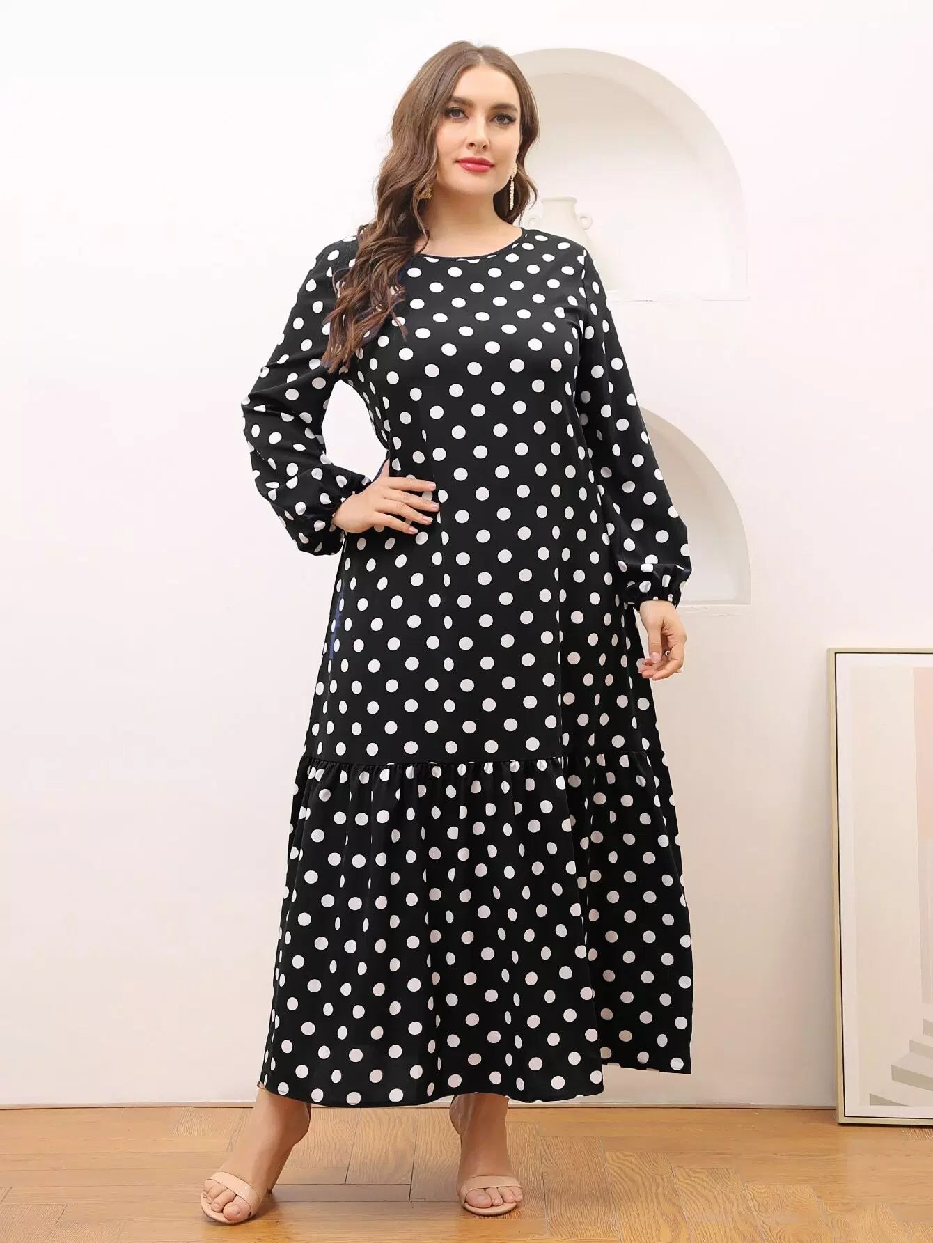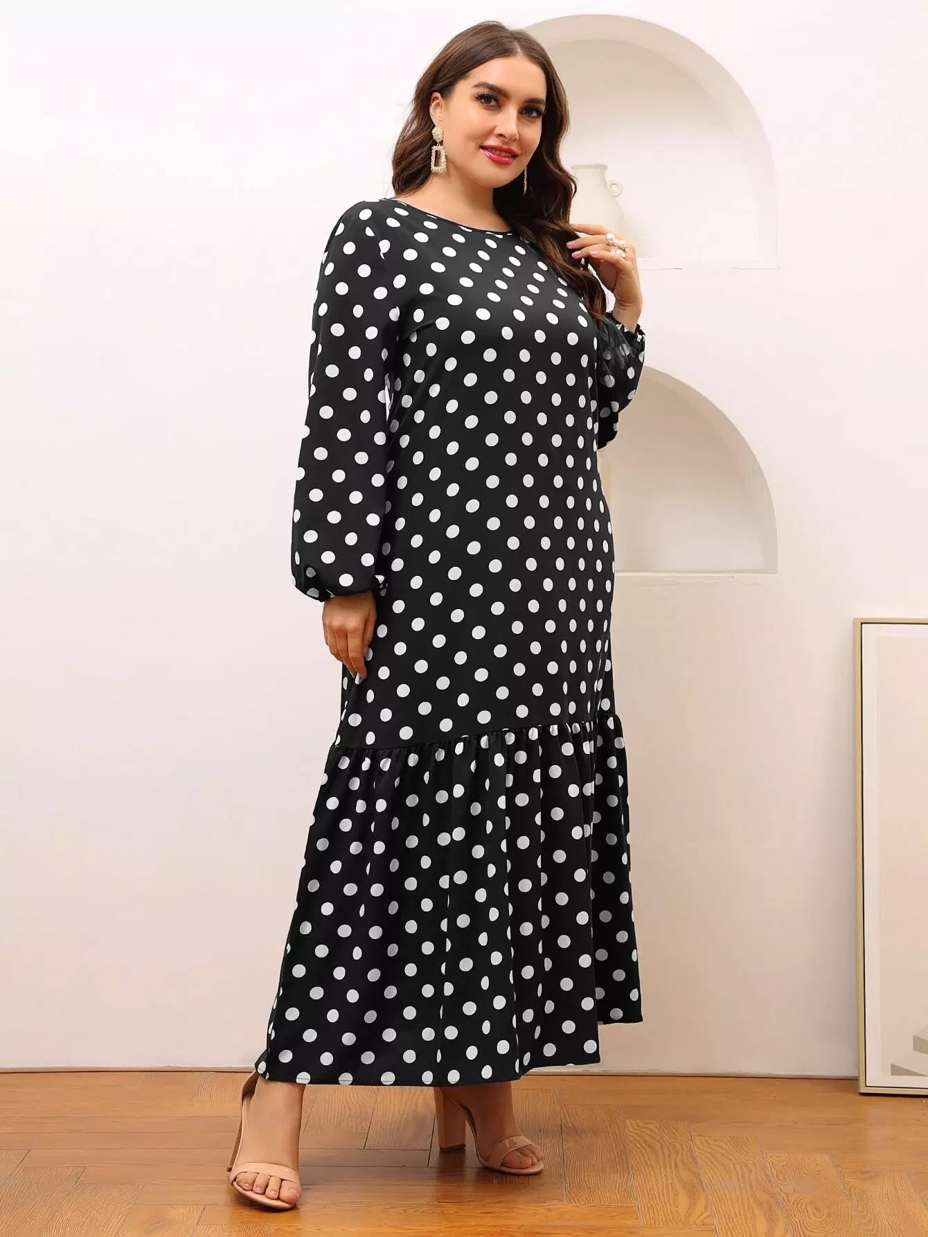 Plus Ruffle Hem Polka Dot Smock Dress