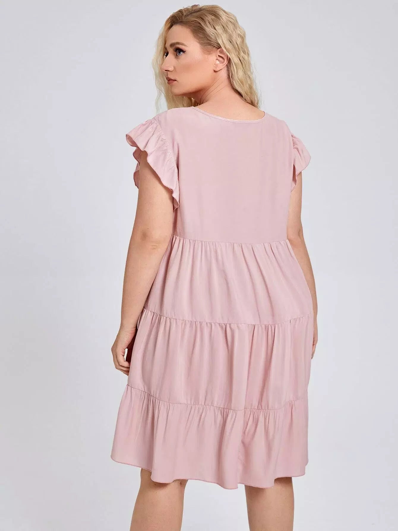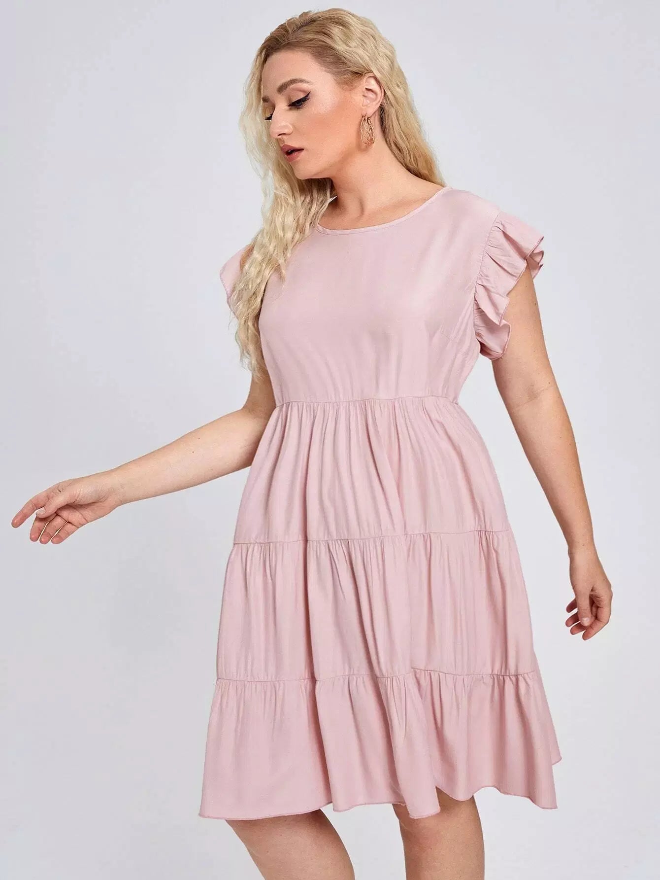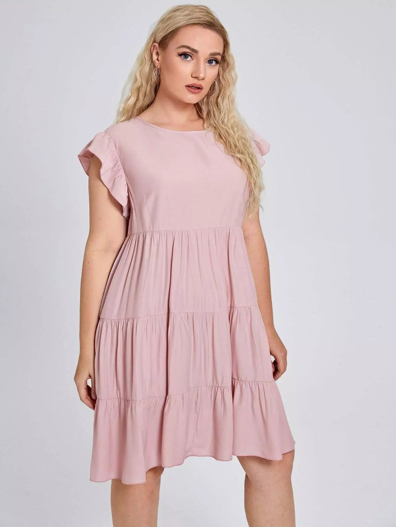 Plus Ruffle Hem Solid Smock Dress
