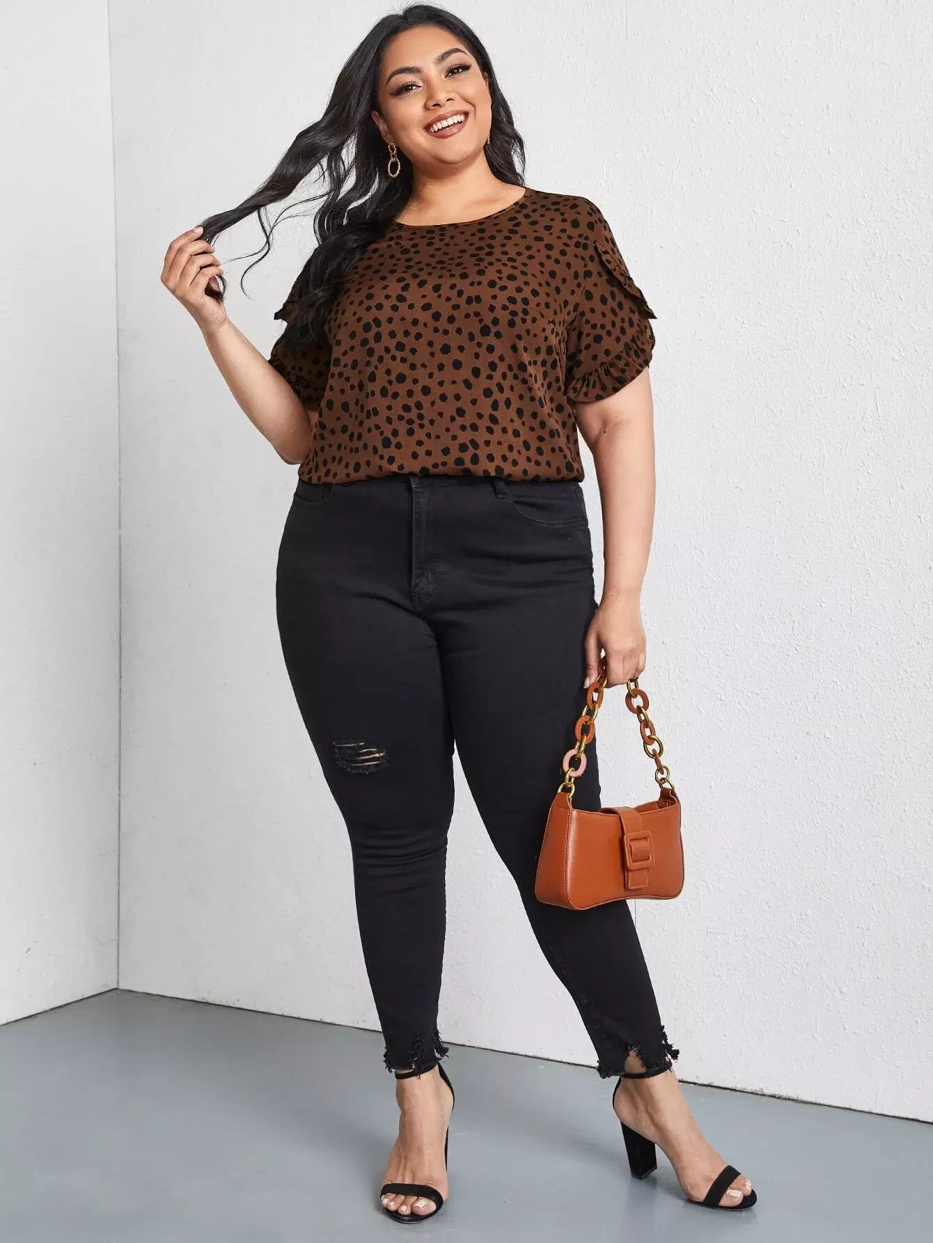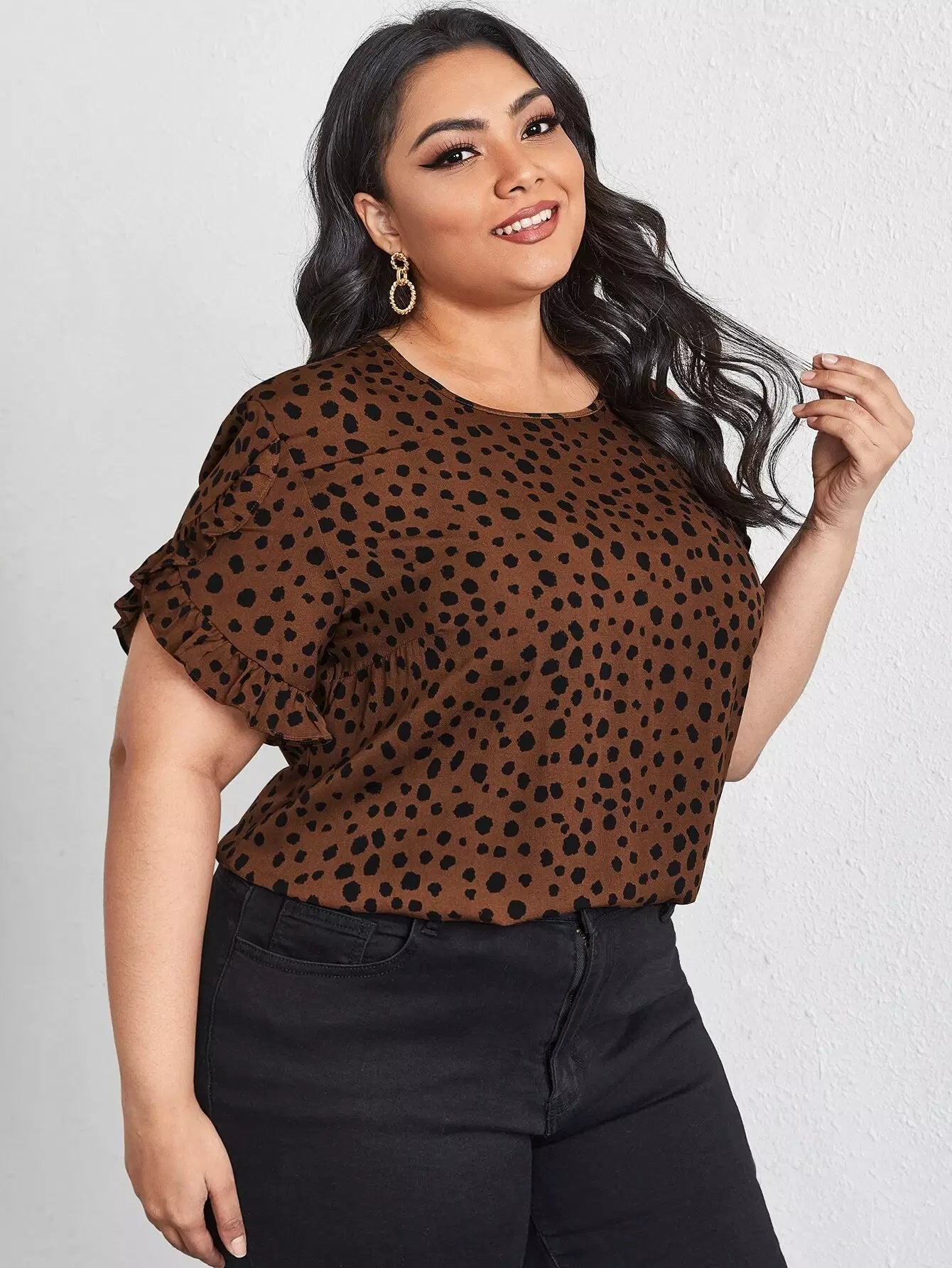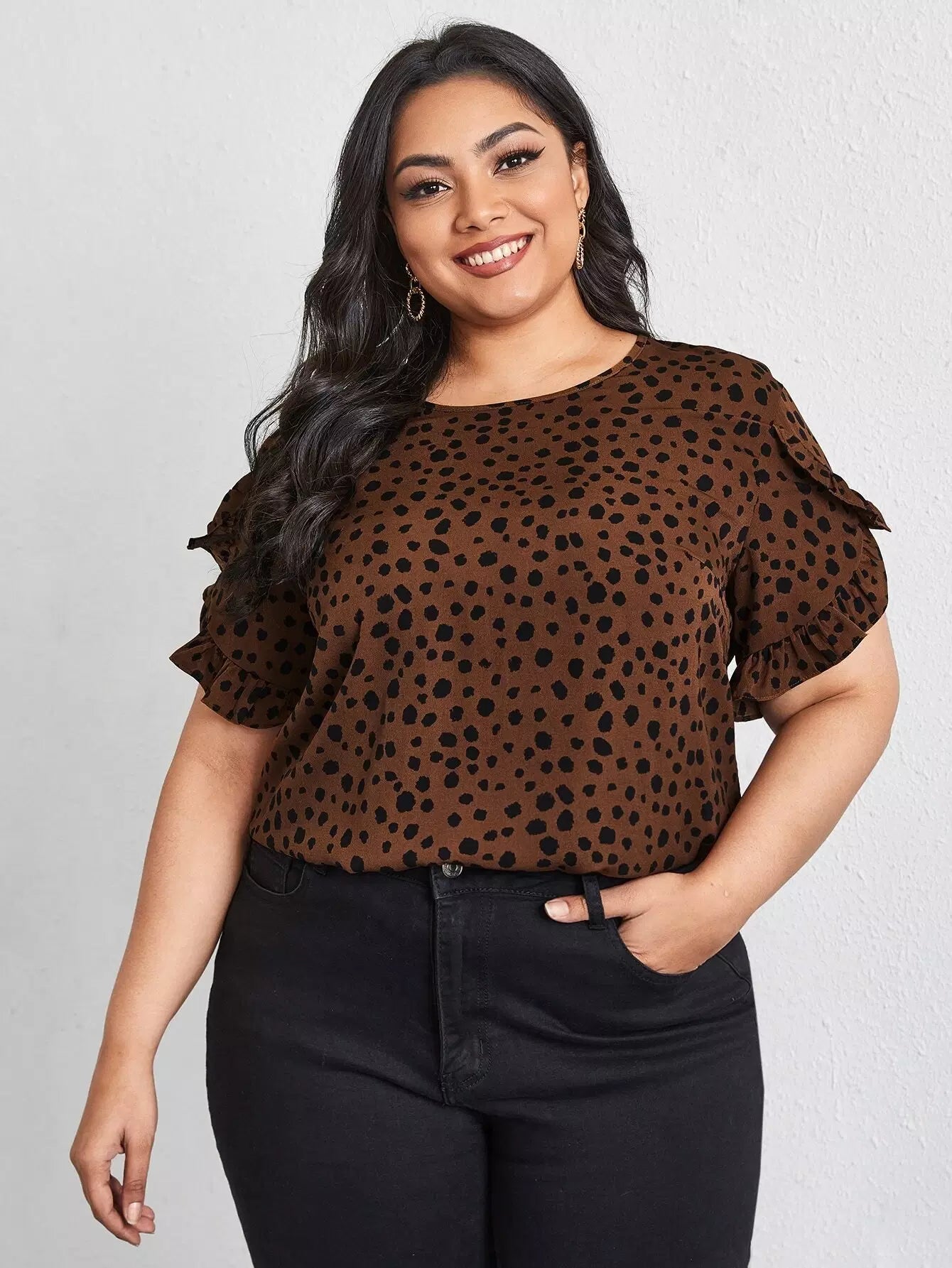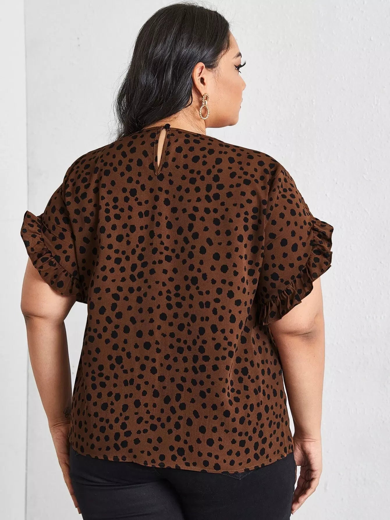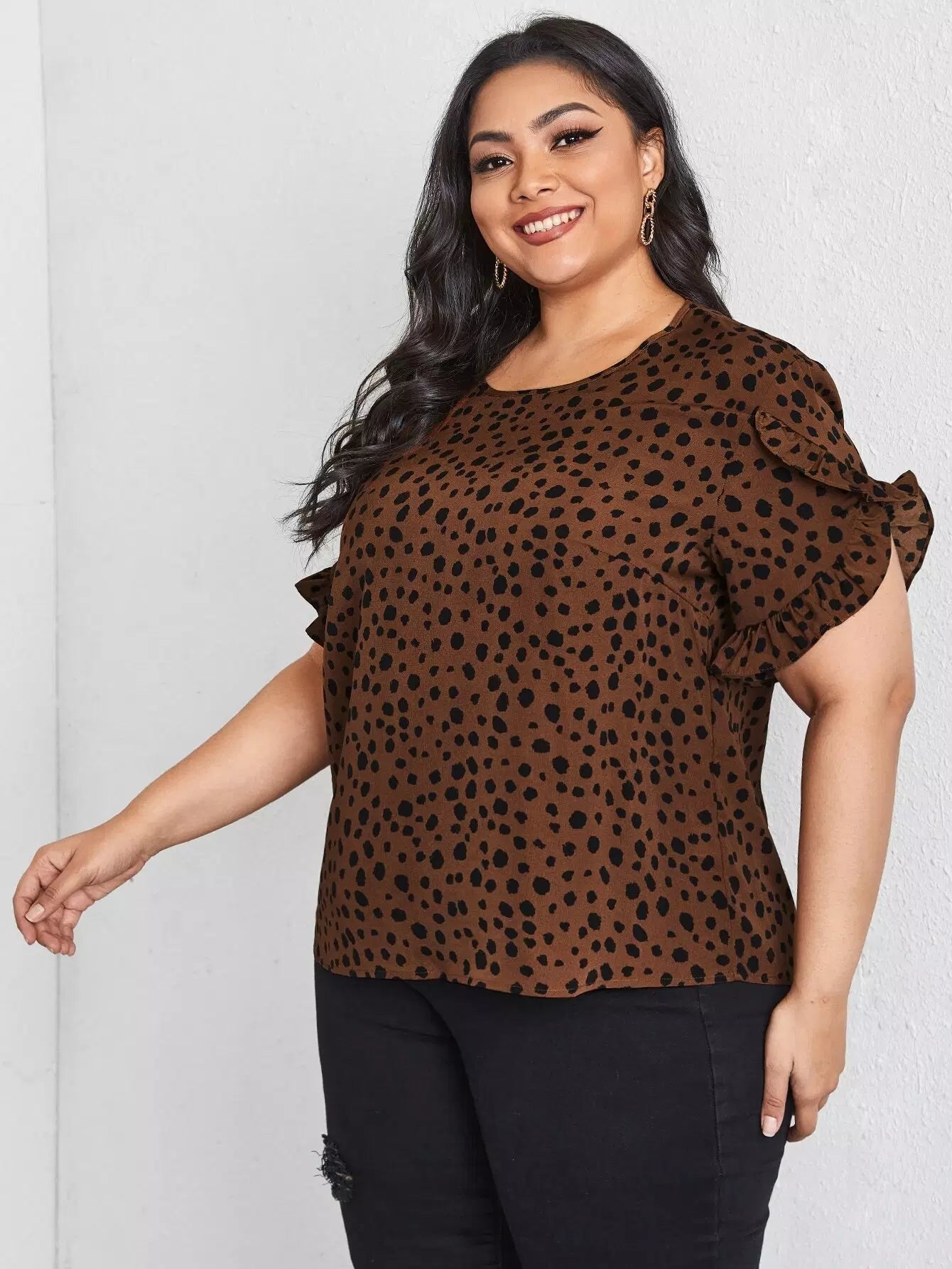 Women - Plus Ruffle Trim Petal Sleeve Allover Print Blouse