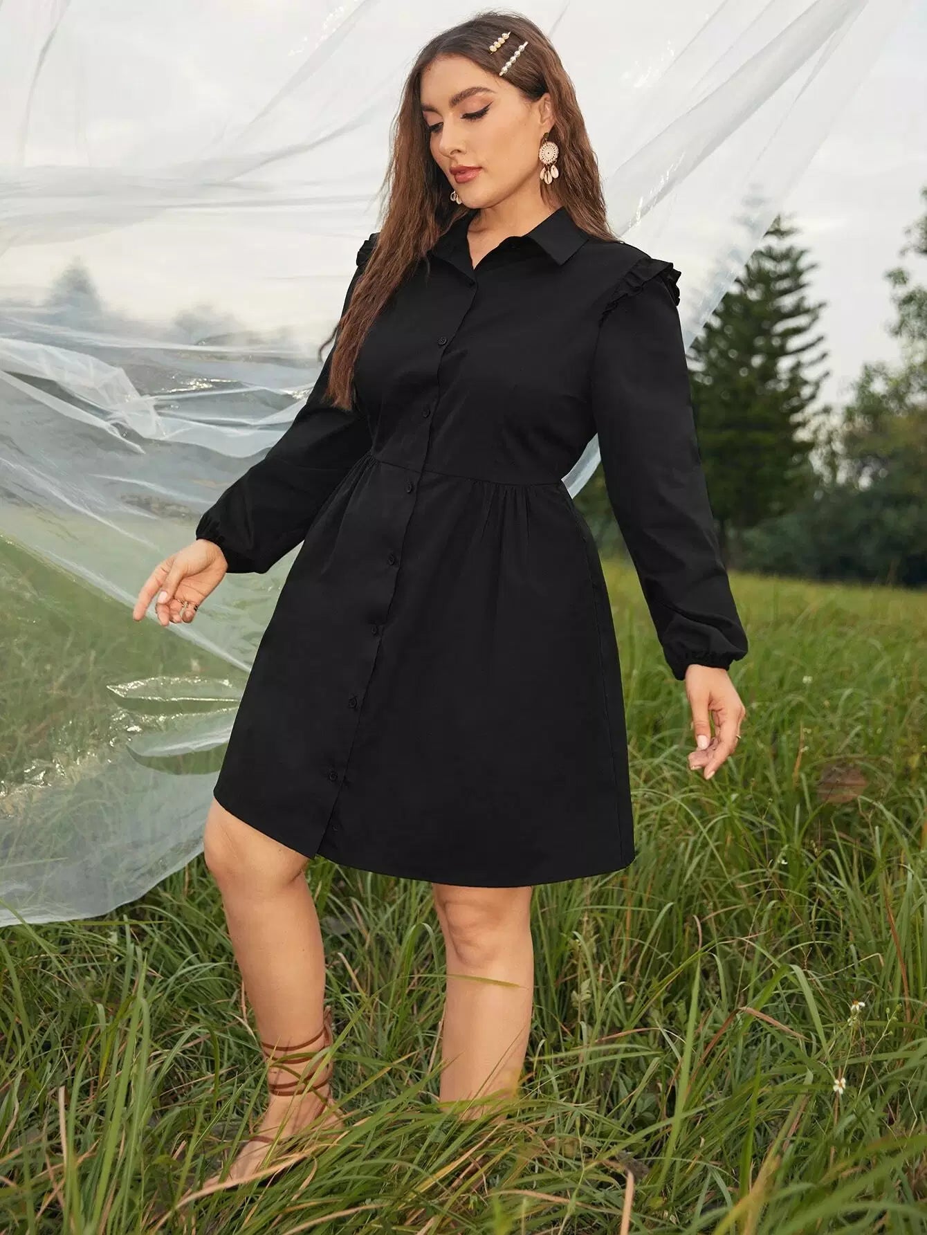 Plus Ruffle Trim Shirt Dress