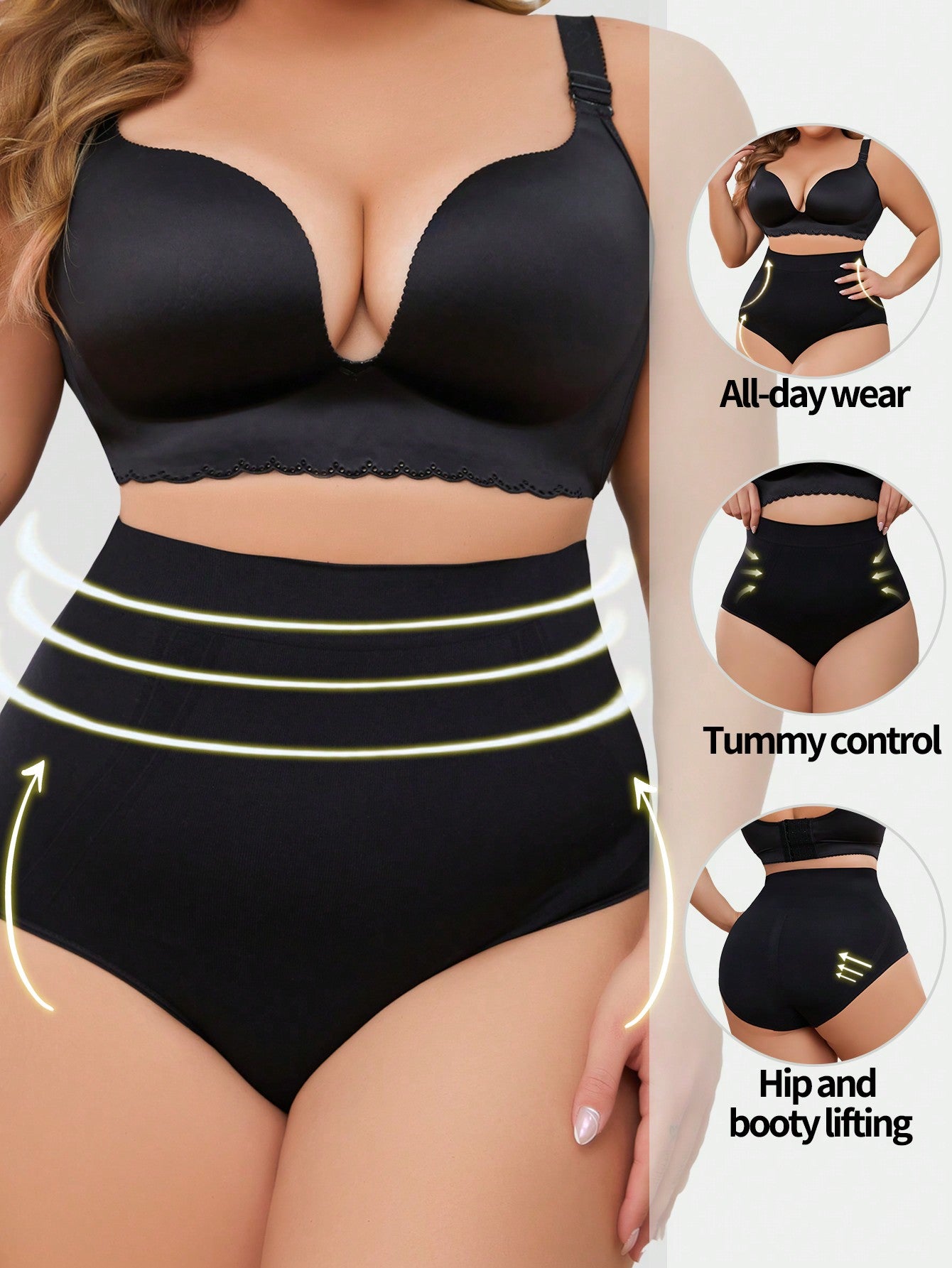 Plus Size 1pc Solid Color High-Waisted Shaping Panties