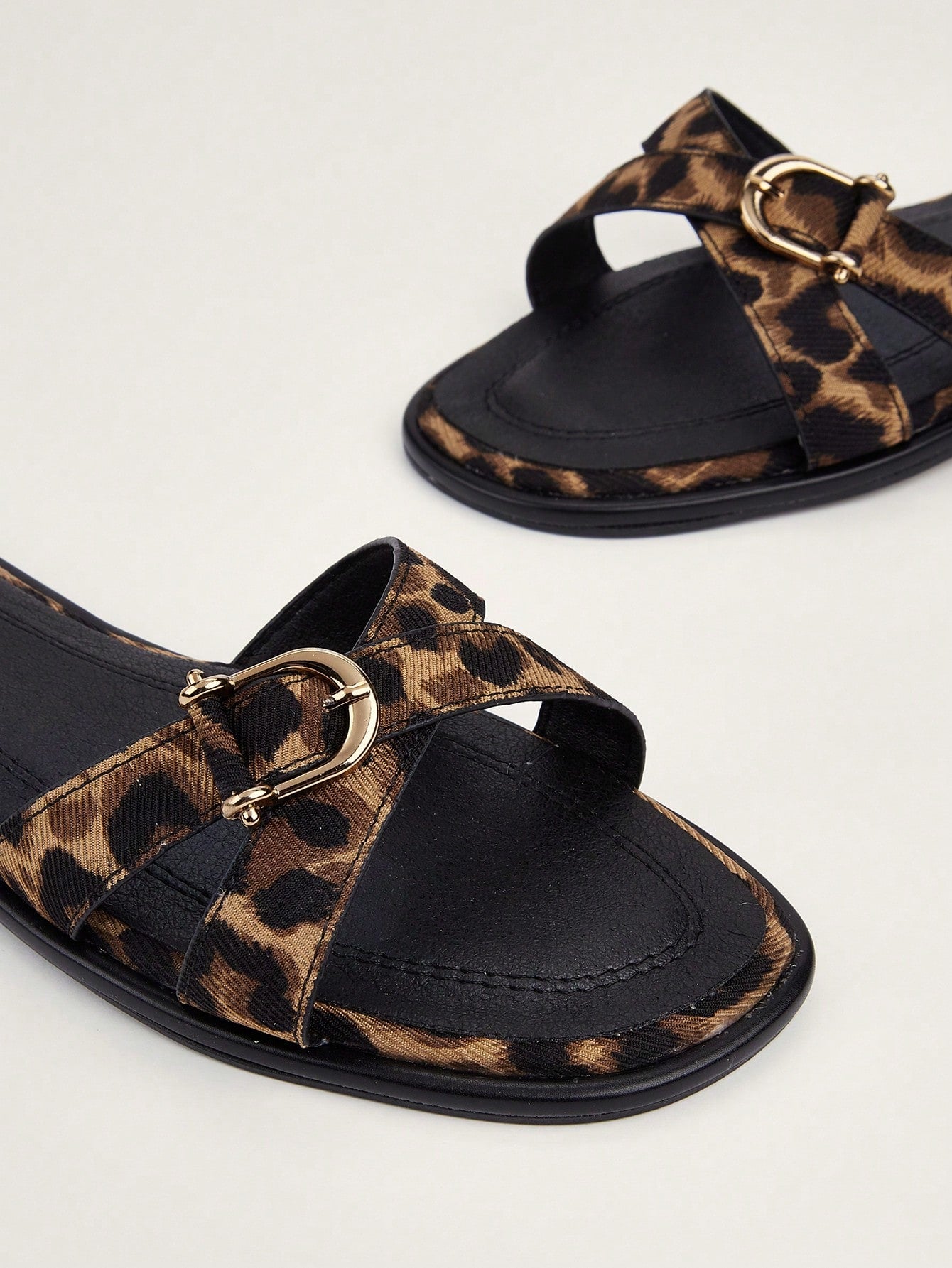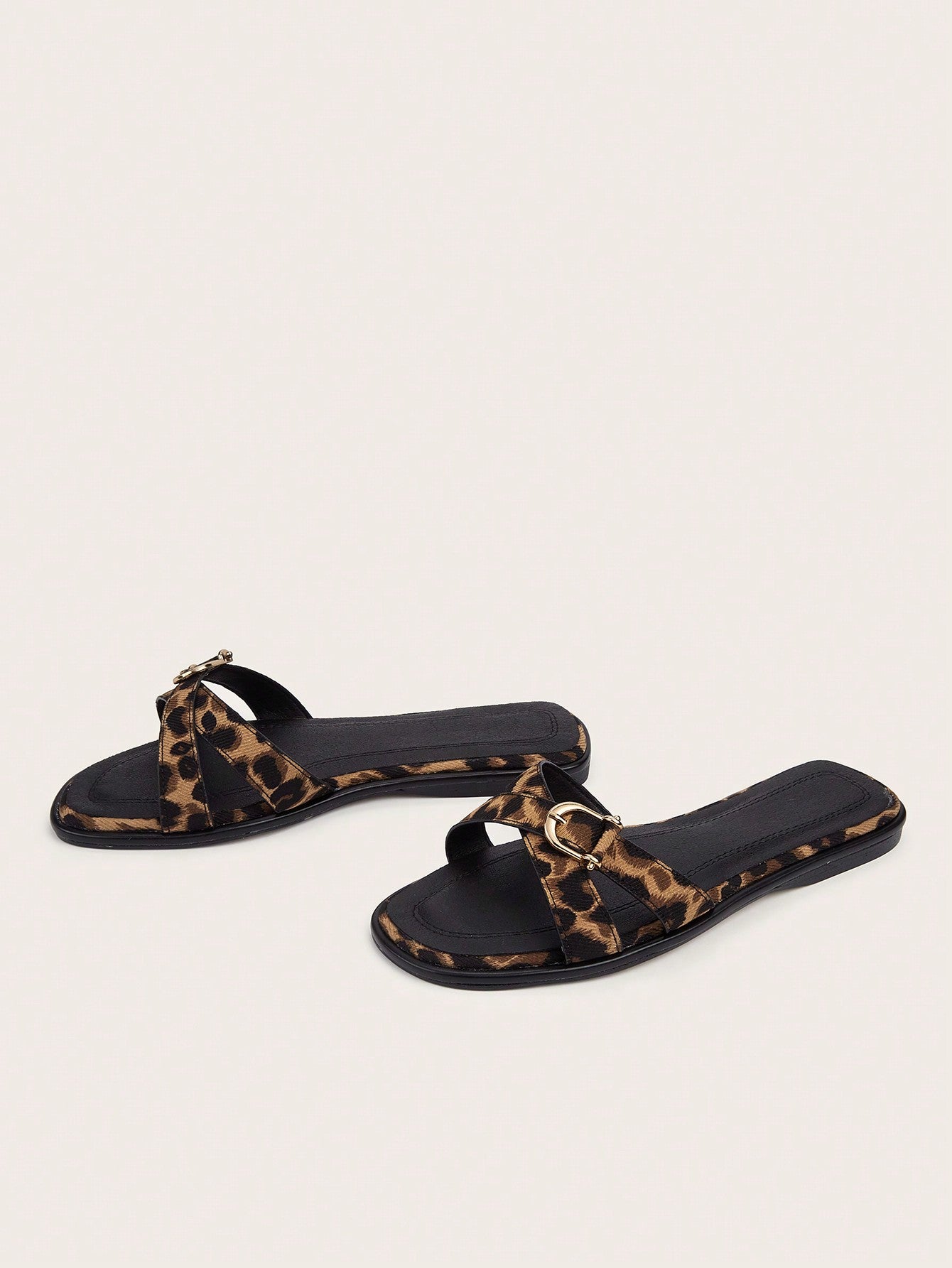 Plus Size Brown Square Toe Cross Strap Slip-On Flat Sandals