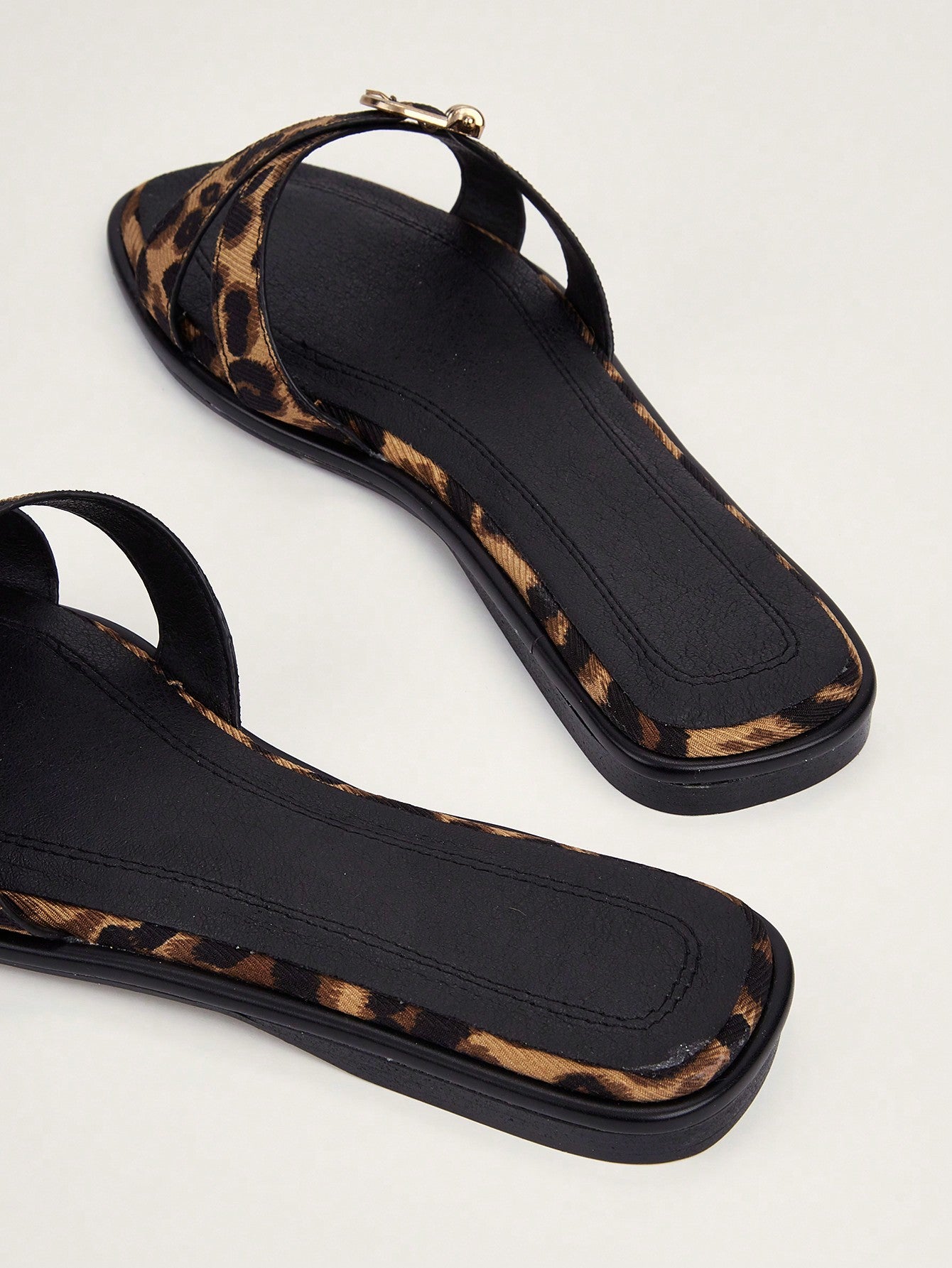 women Plus Size Brown Square Toe Cross Strap Slip-On Flat Sandals
