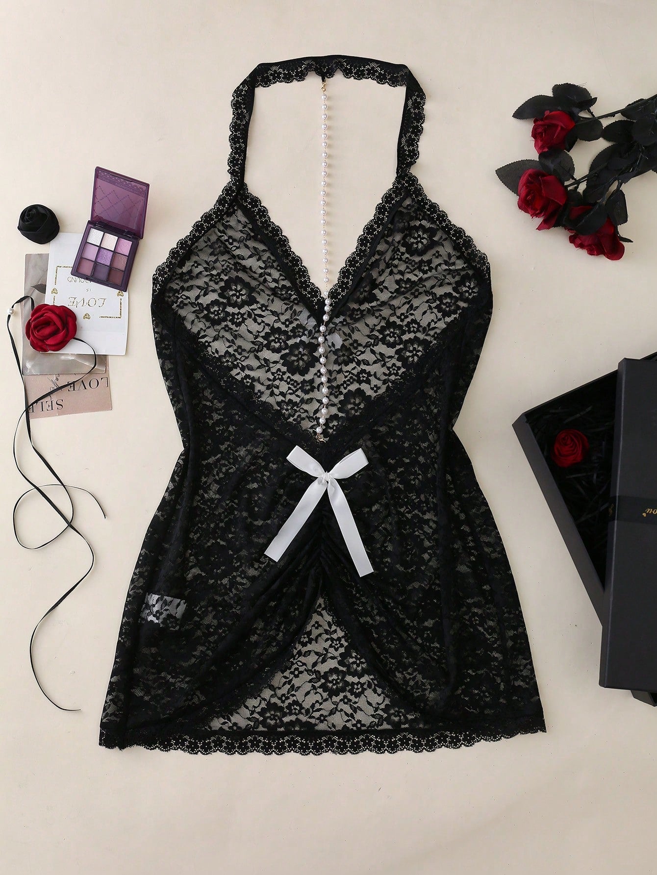 Plus Size Sexy Pearl Backless Lingerie Nightgown
