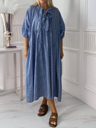Plus Size Women's Summer Striped Knot Lantern Sleeve Loose Casual Babydoll Dress