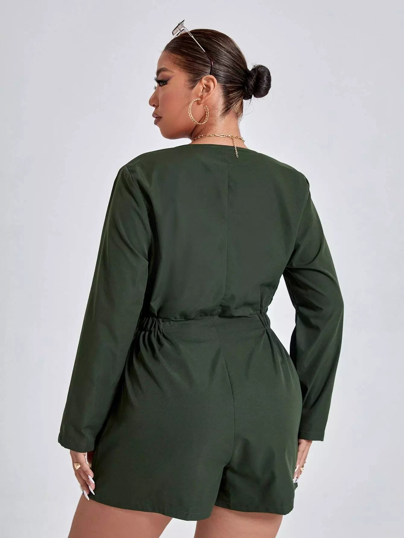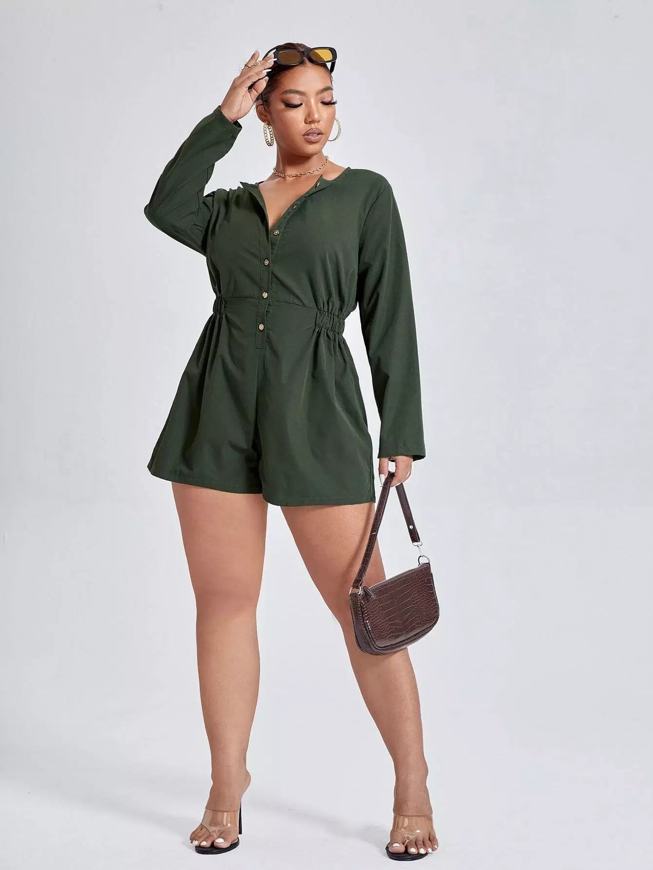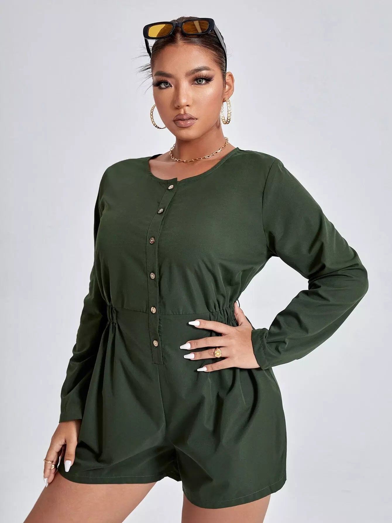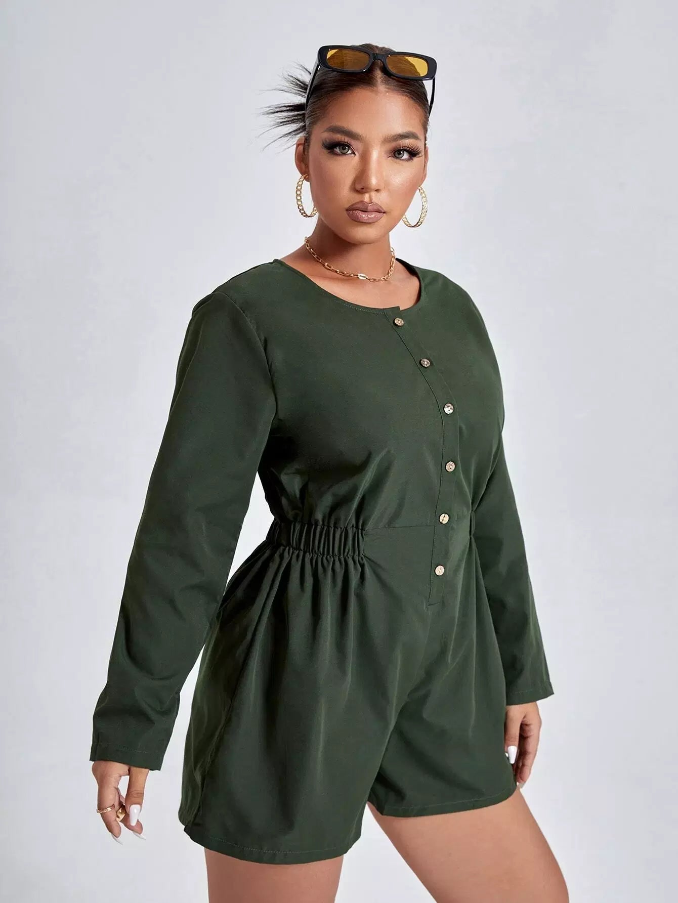 Plus Solid Button Front Romper