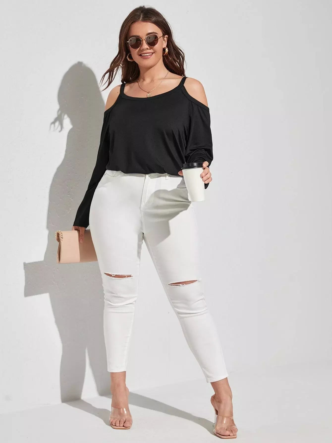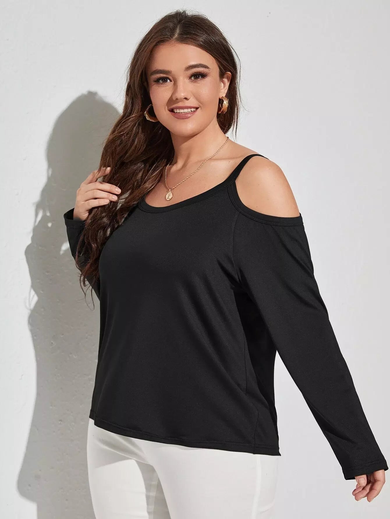 Plus Solid Cold Shoulder Tee