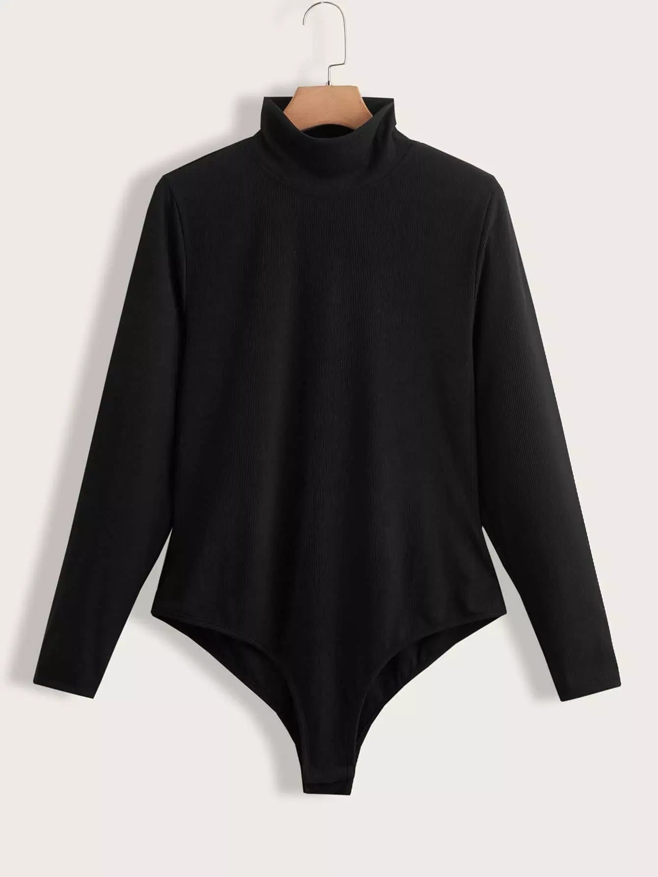 Plus Solid Rib Knit High Neck Bodysuit