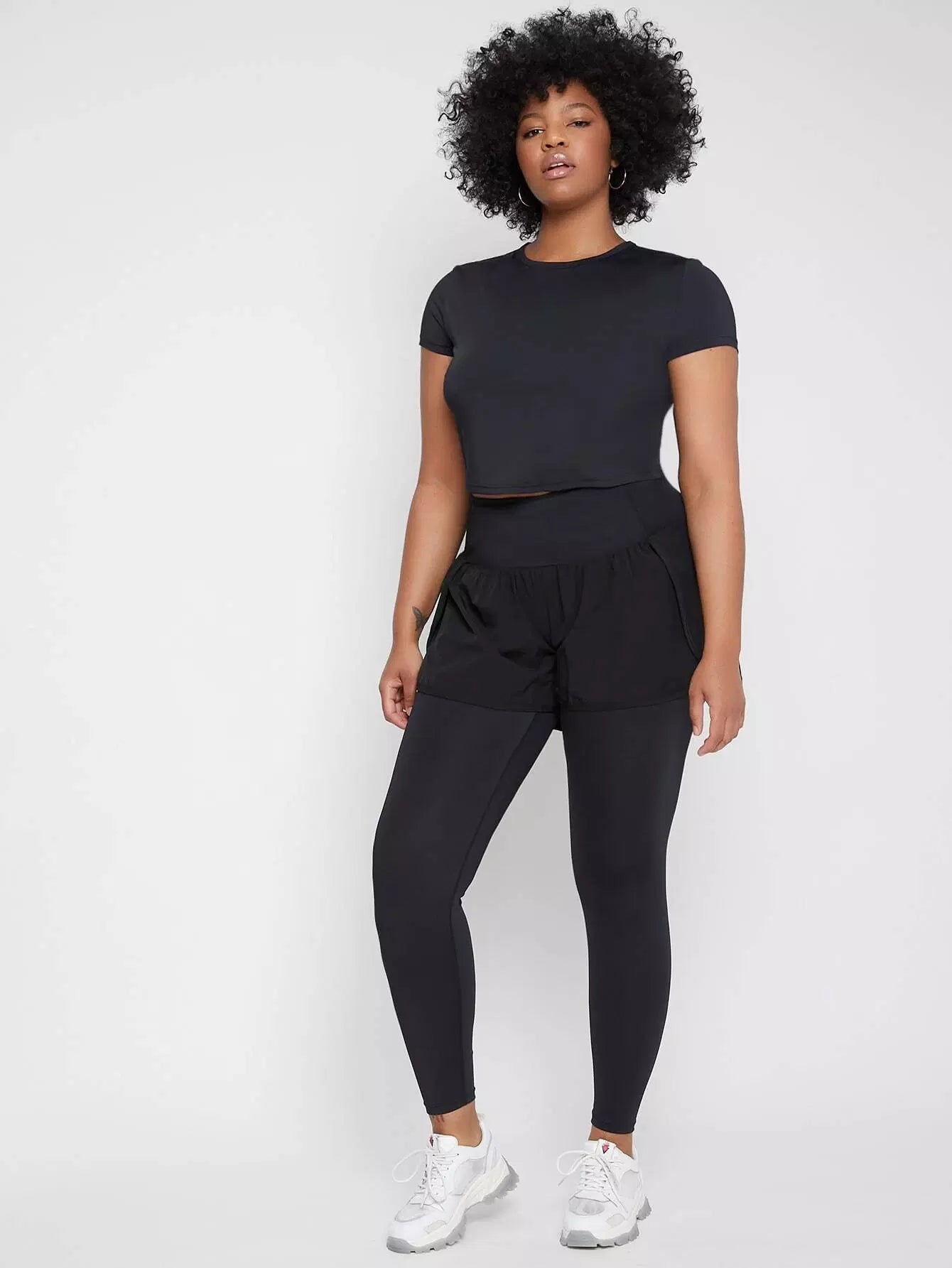 Plus Solid Sports Tee & 2 In 1 Leggings