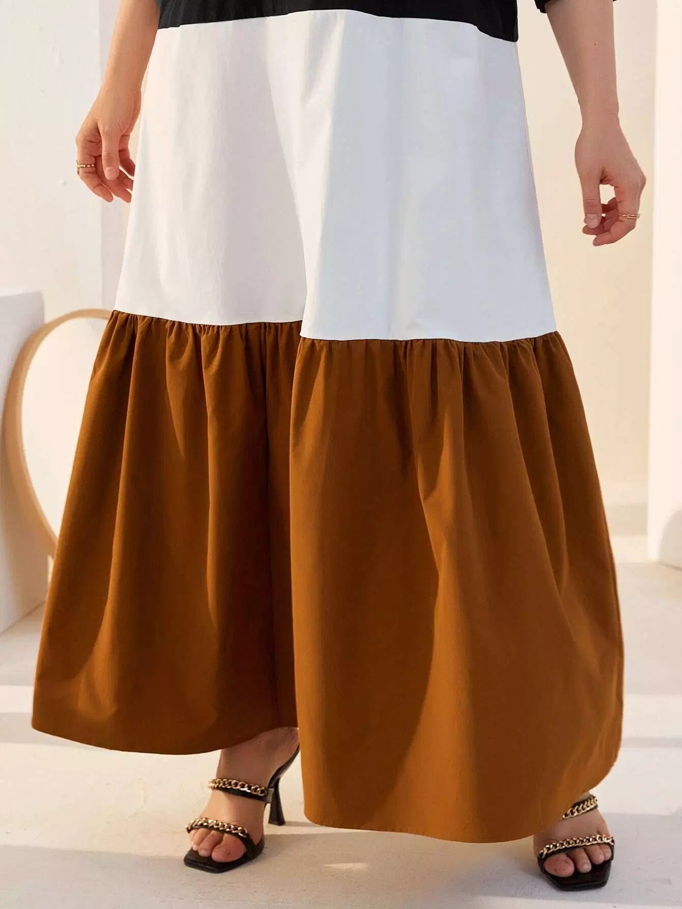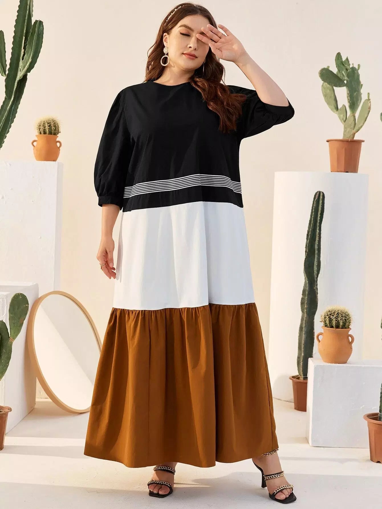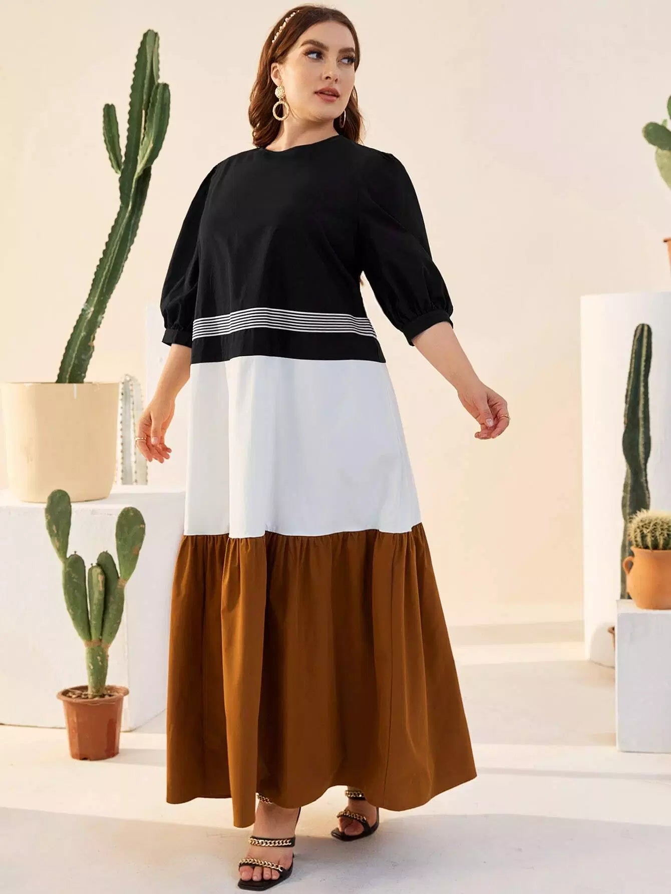 Plus Striped Detail Colorblock Dress