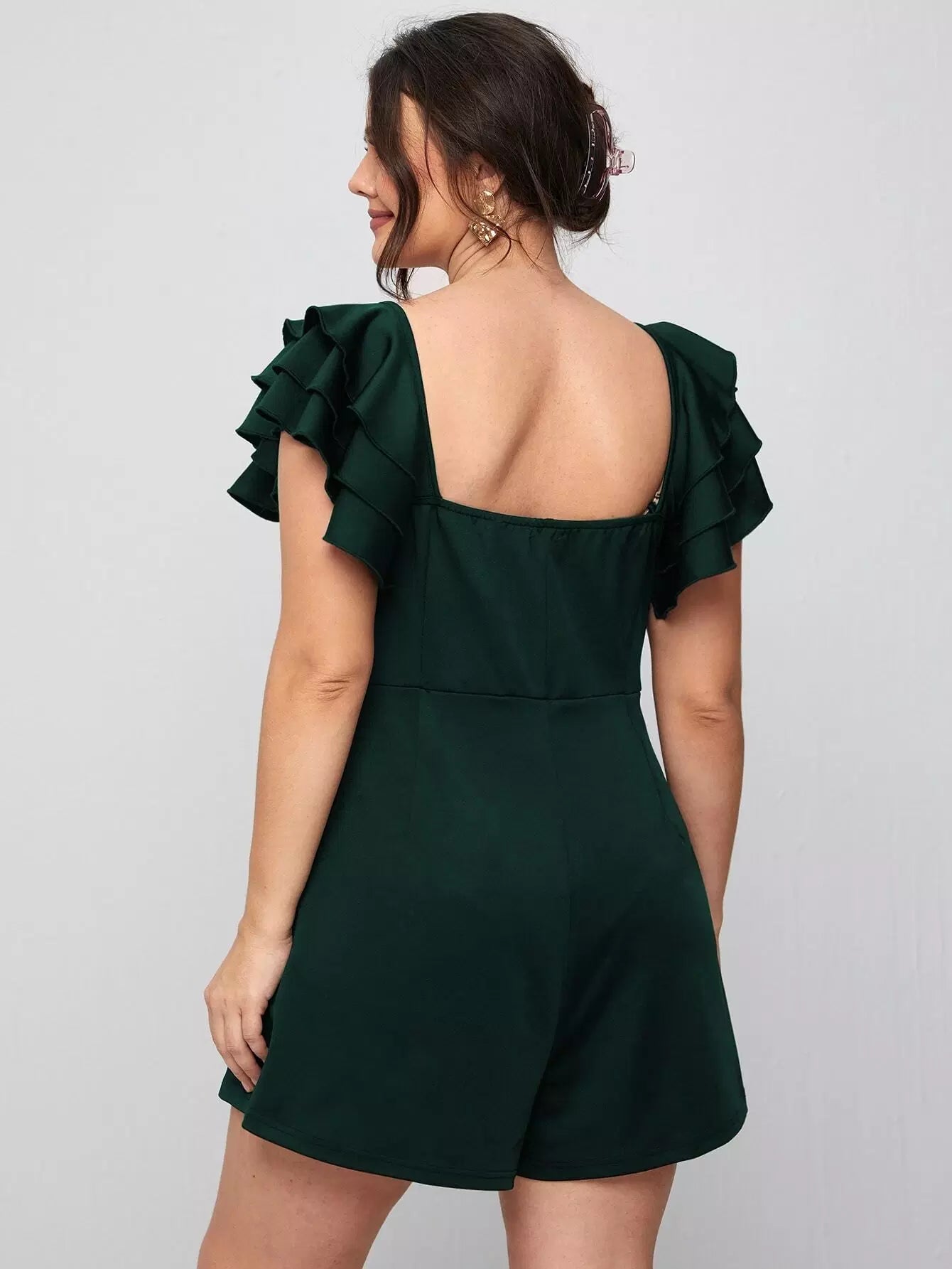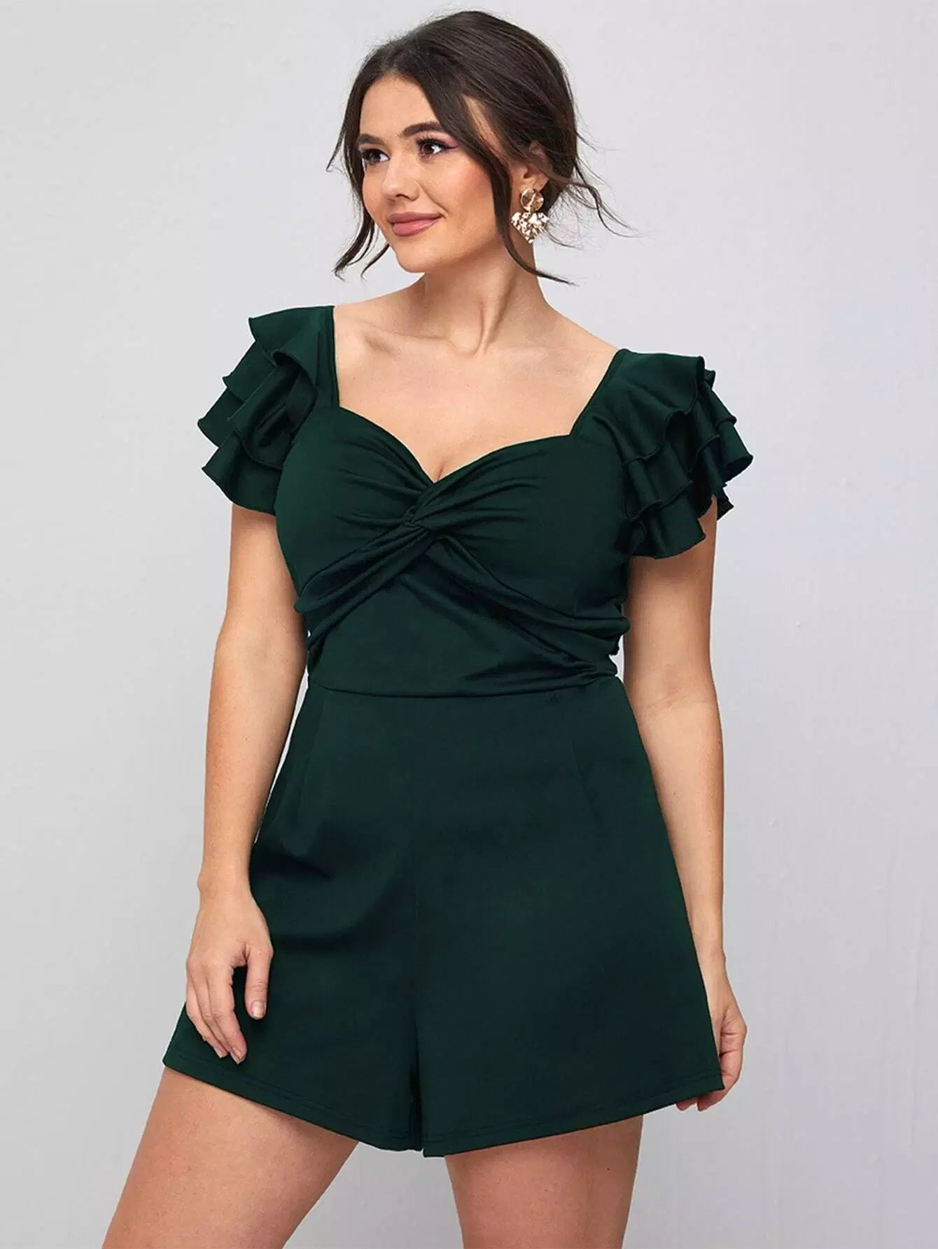 Women - Plus Sweetheart Neck Ruffle Trim Twist Romper