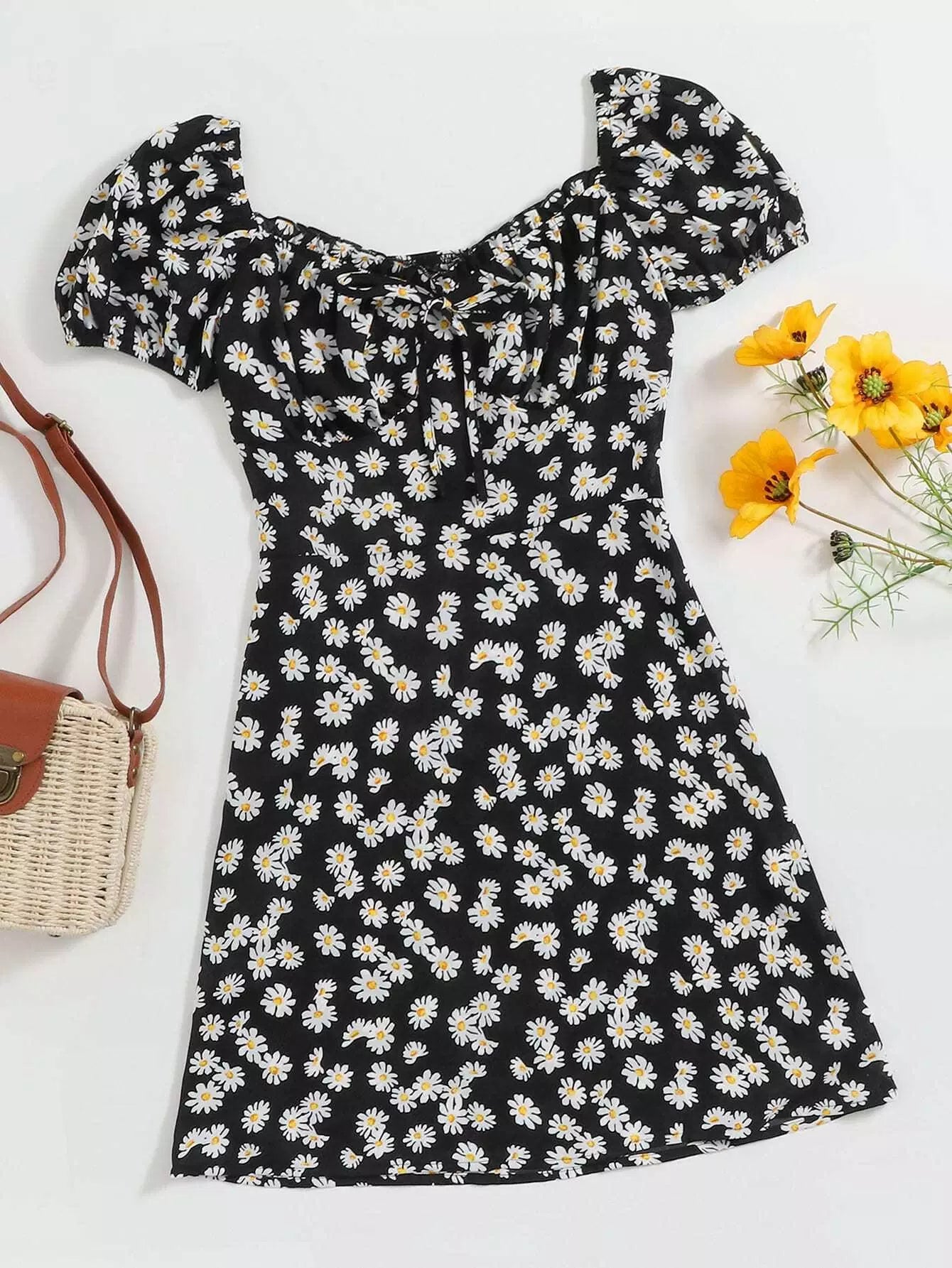Plus Tie Front Daisy Floral Milkmaid Dress