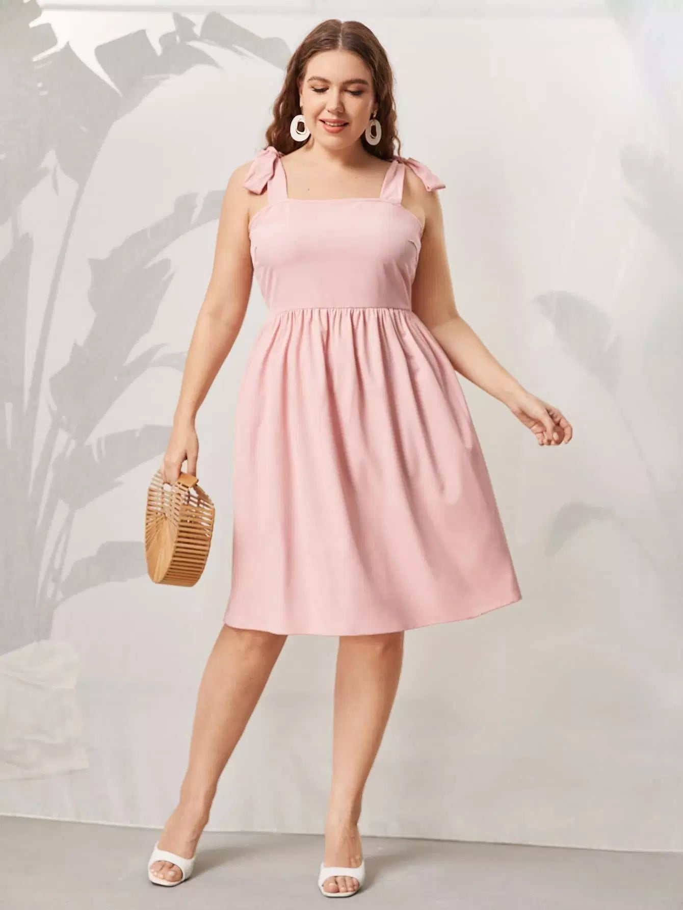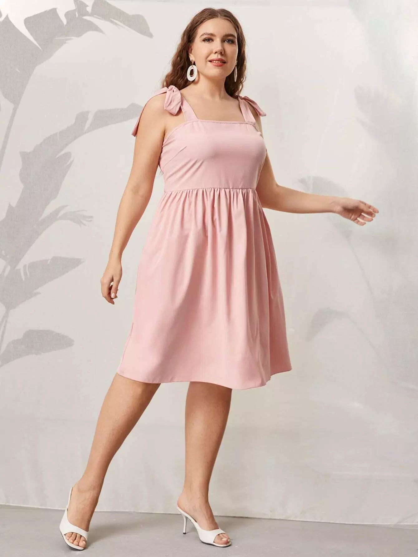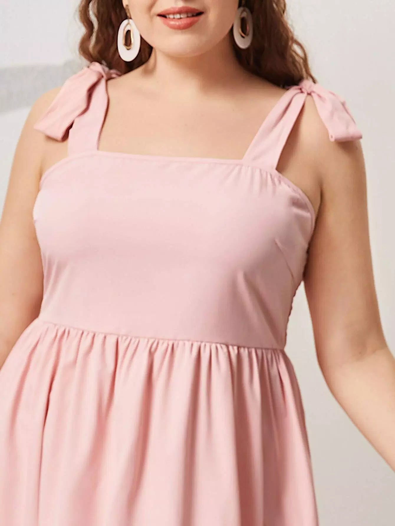 Plus Tie Shoulder Shirred Back Cami Dress