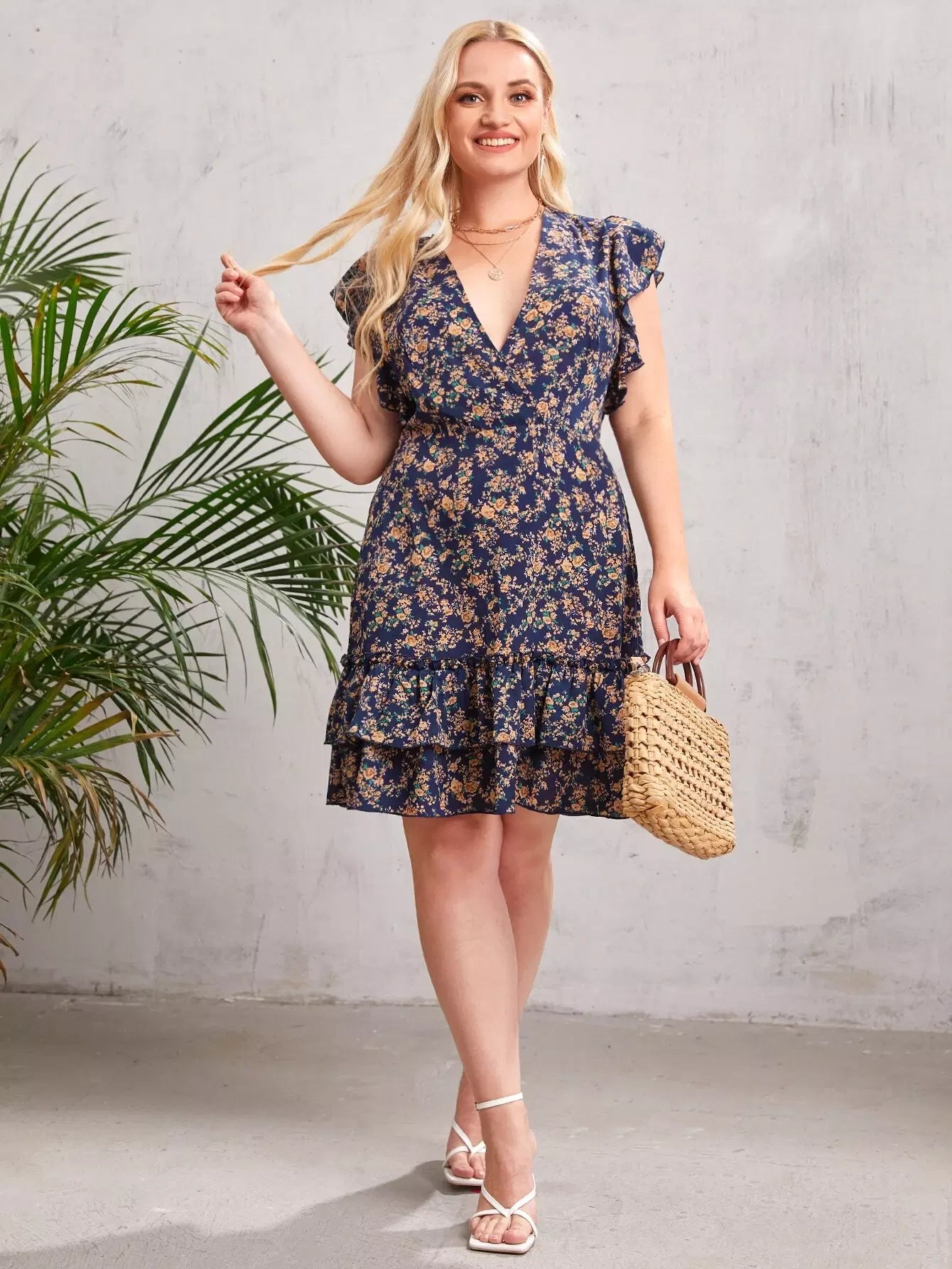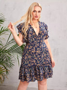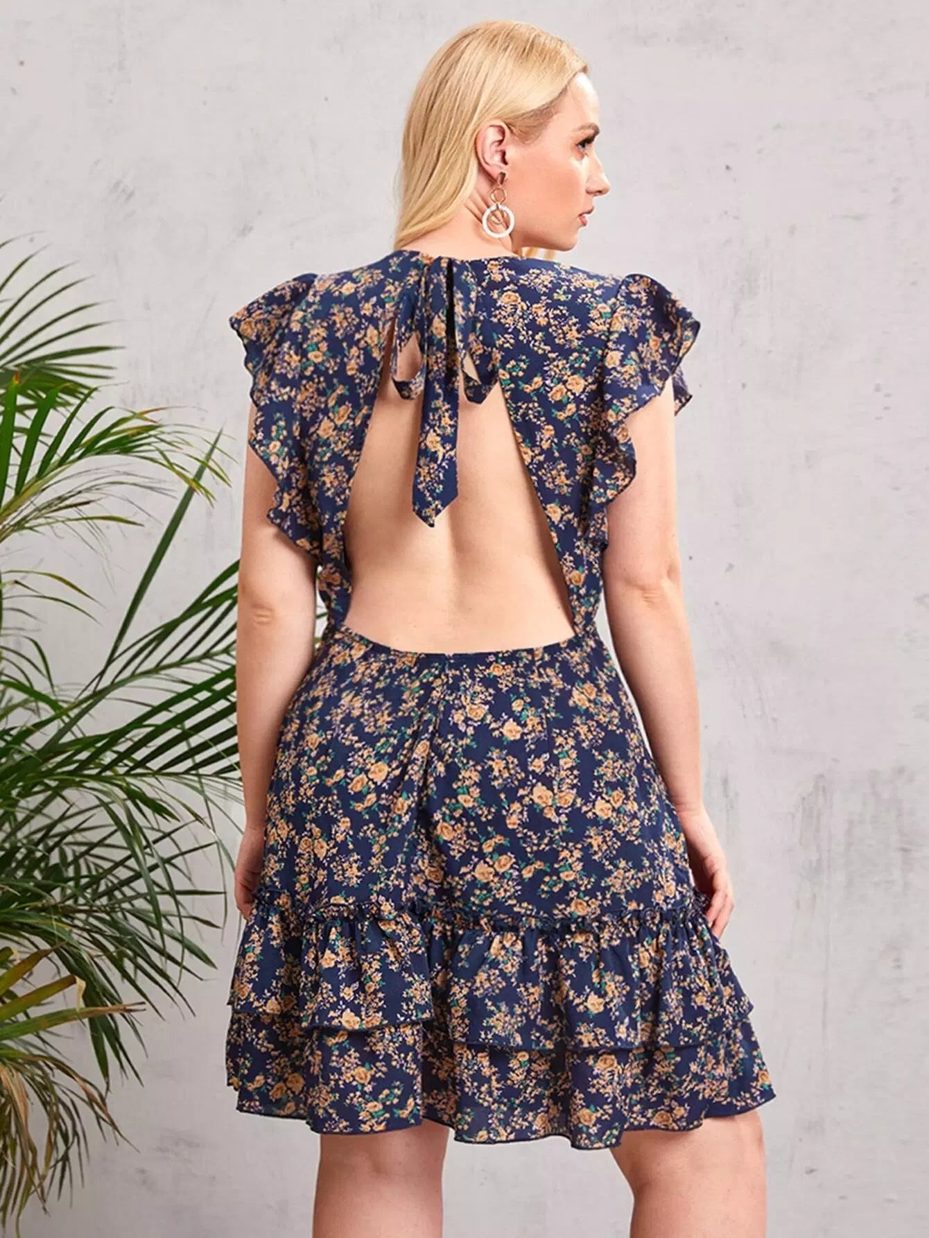 Plus Tied Open Back Ruffle Armhole Dress