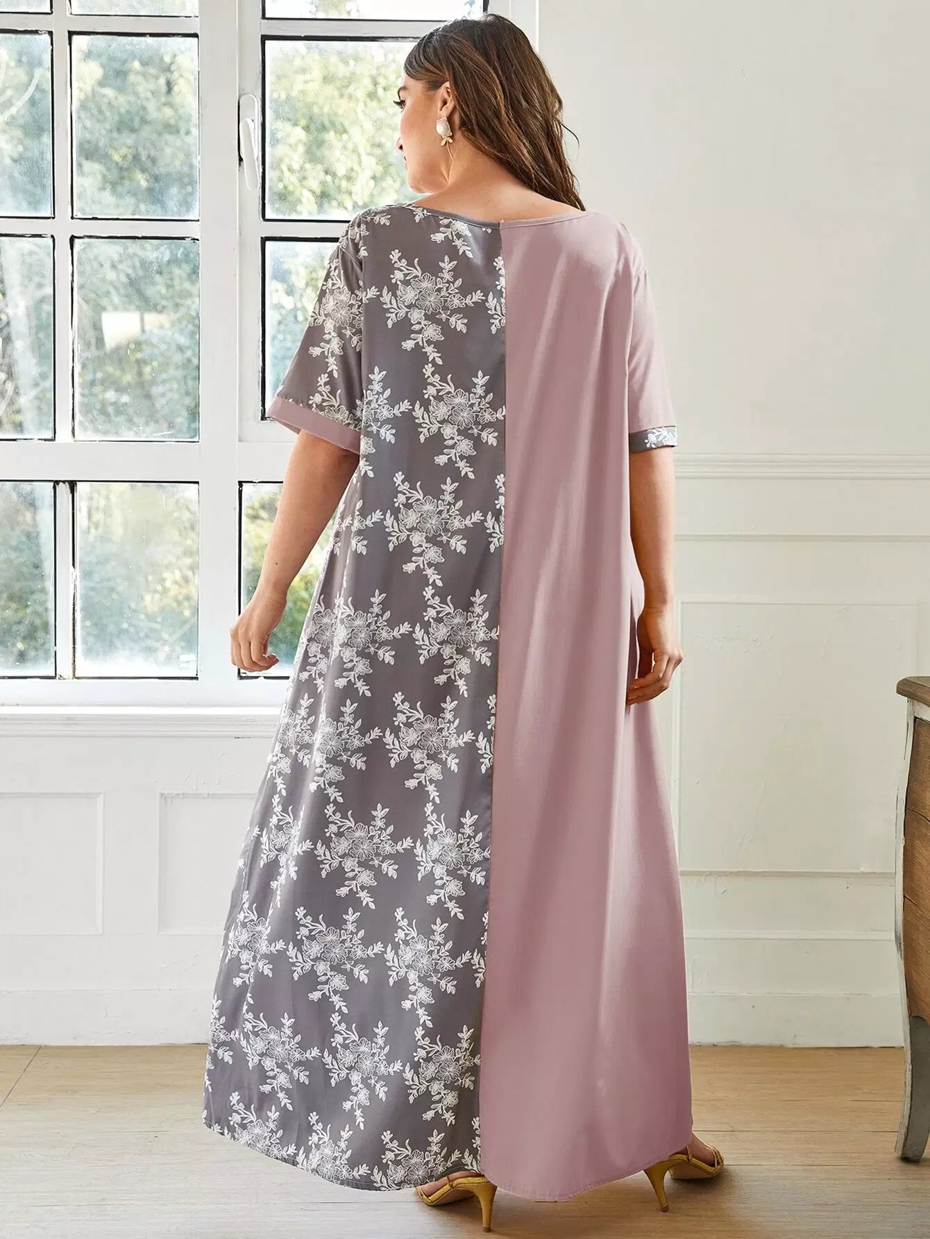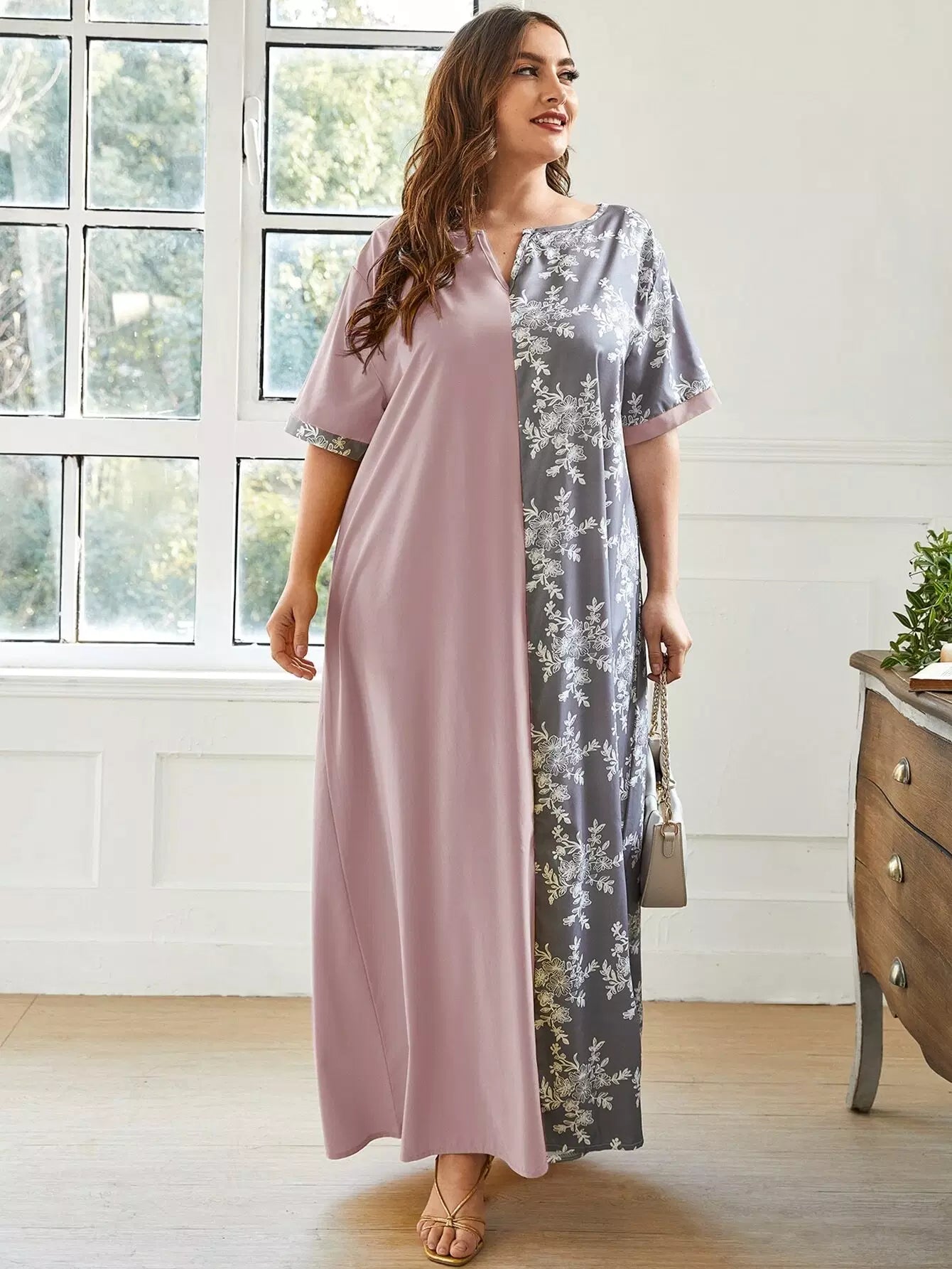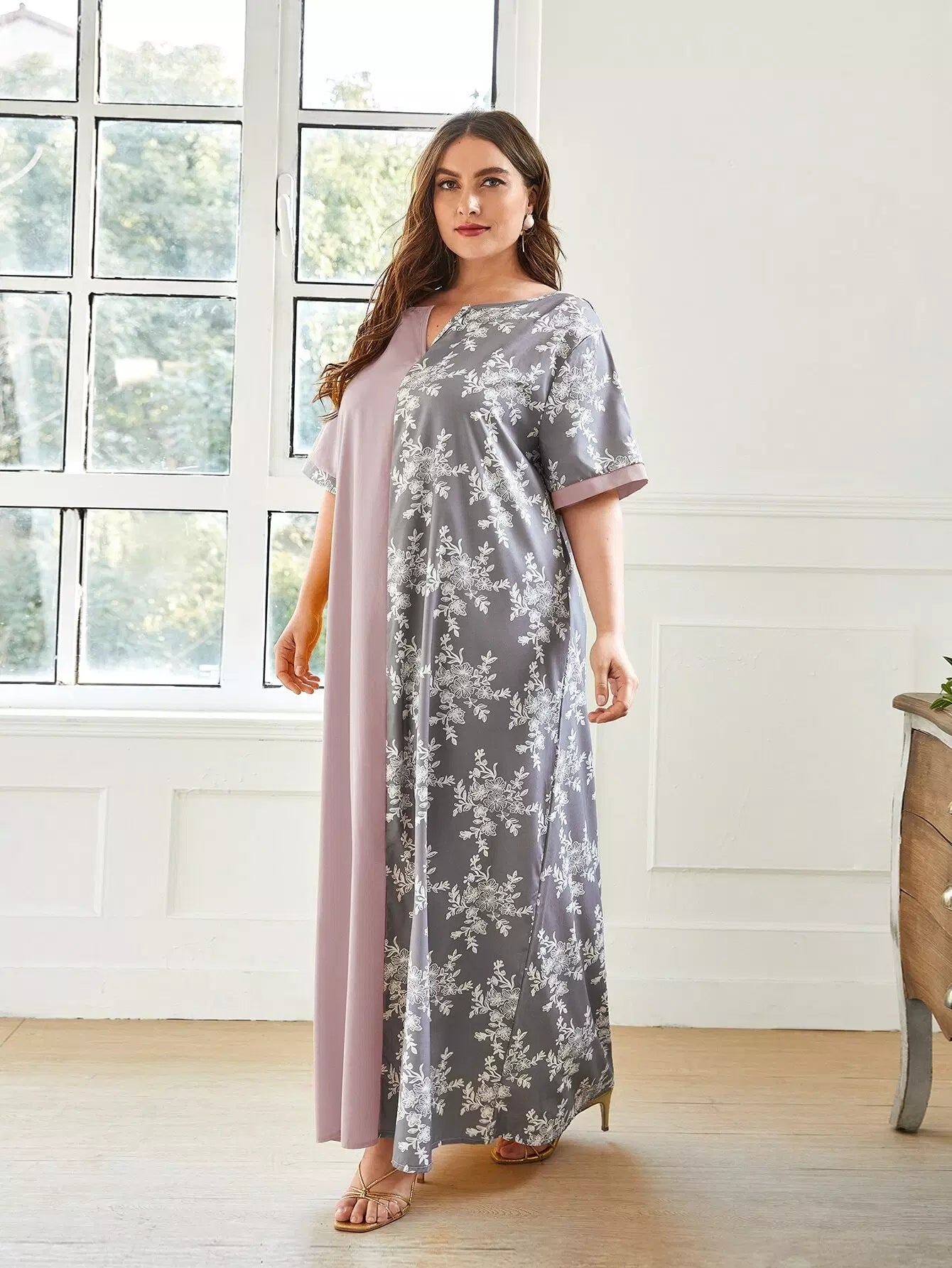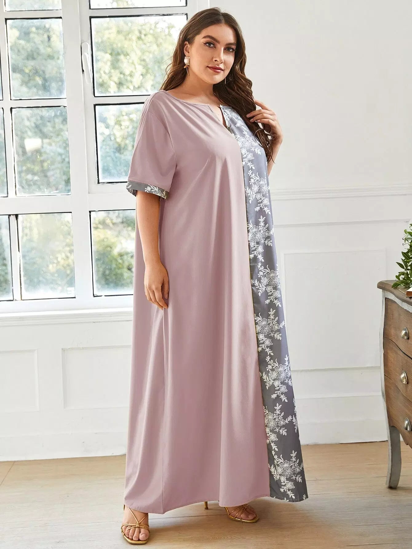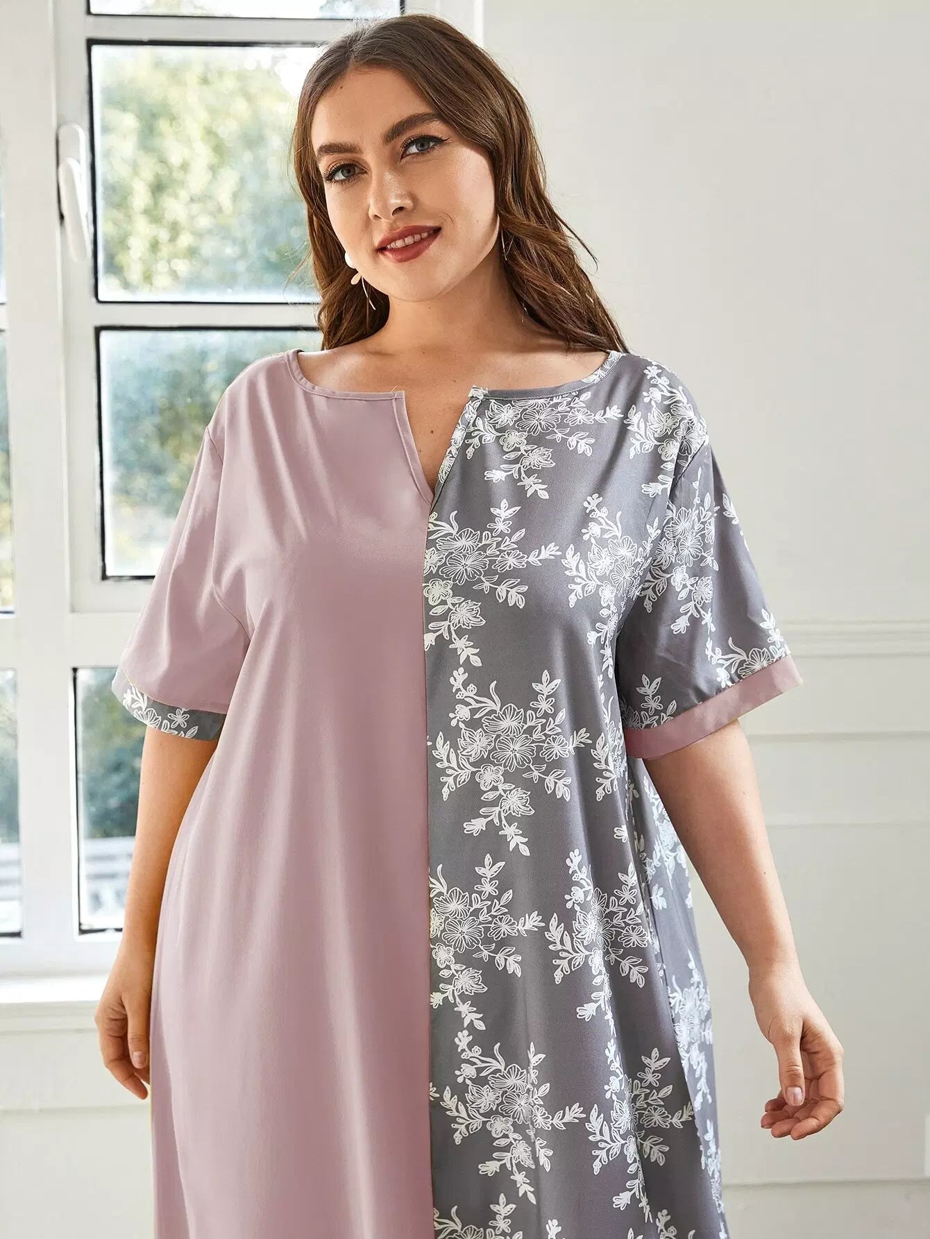 Plus Two Tone Floral Print Tunic Dress