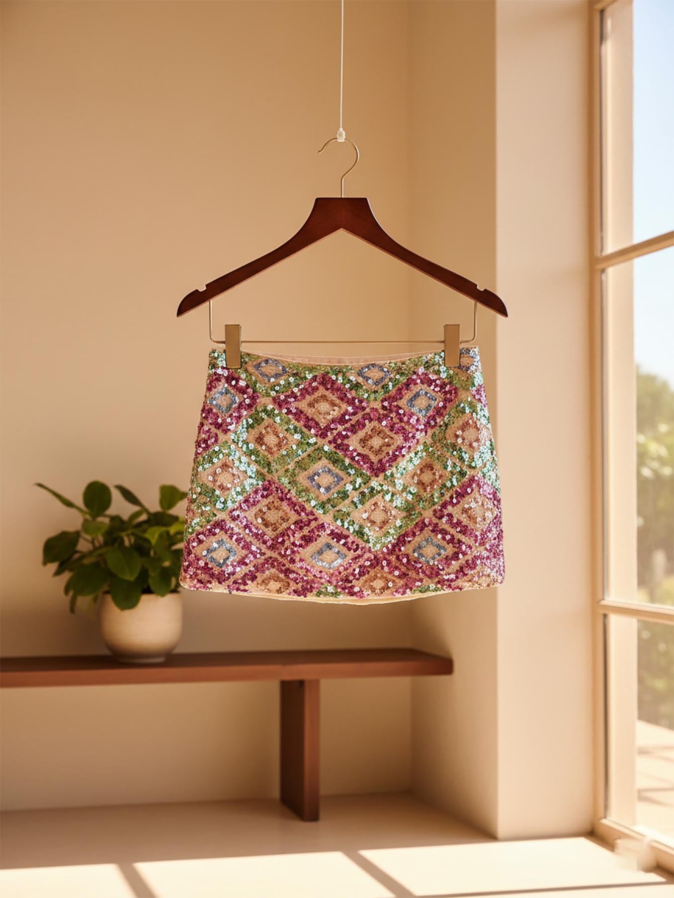 Poأ©selle Women's Fashion Colorblock Sequin Embellished Mini Skirt For Vacation Summer