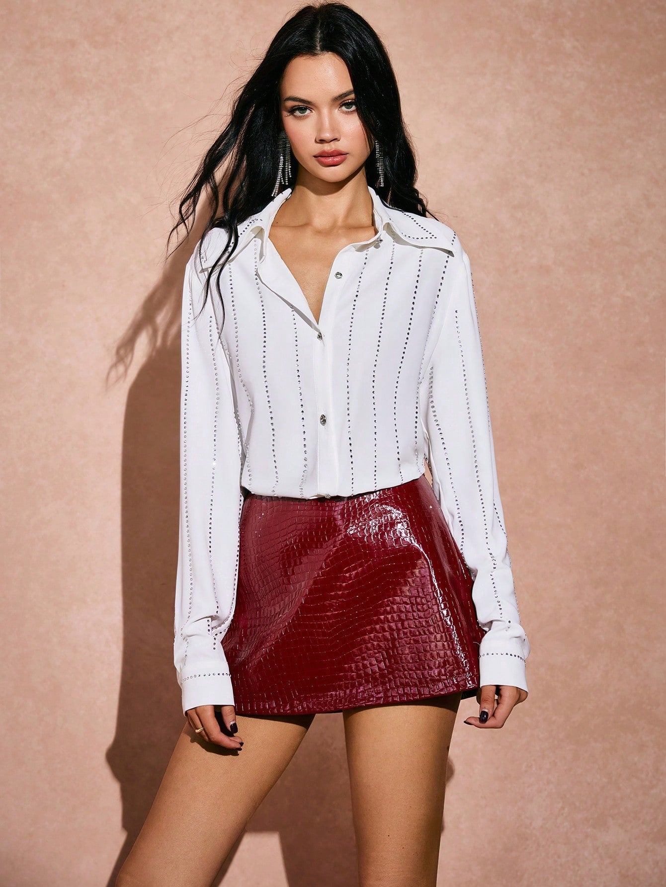 Poelle Women's Rhinestone Embellished Shirt,Valentine's Day,White Shirt,Blouses For Women,Party Tops