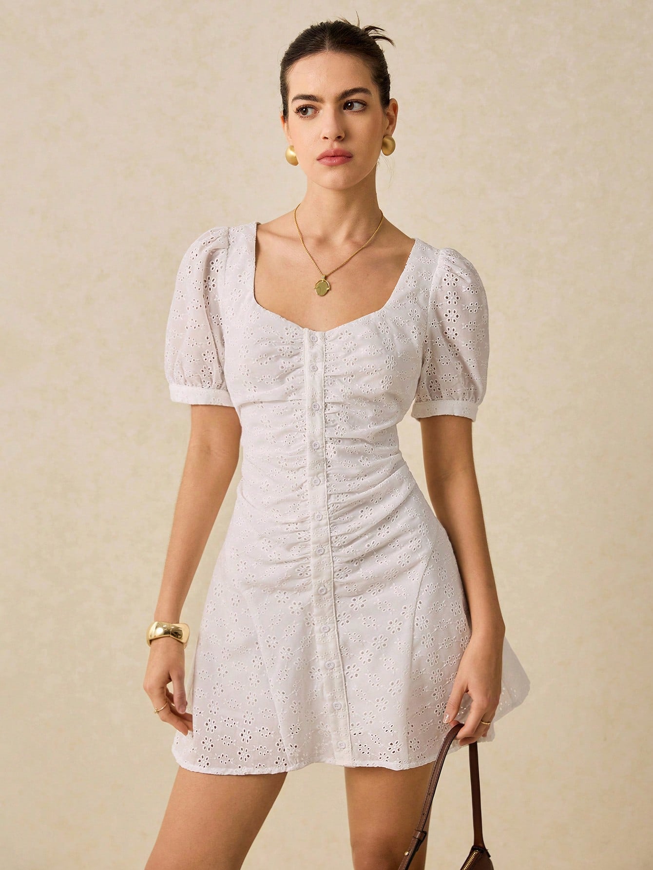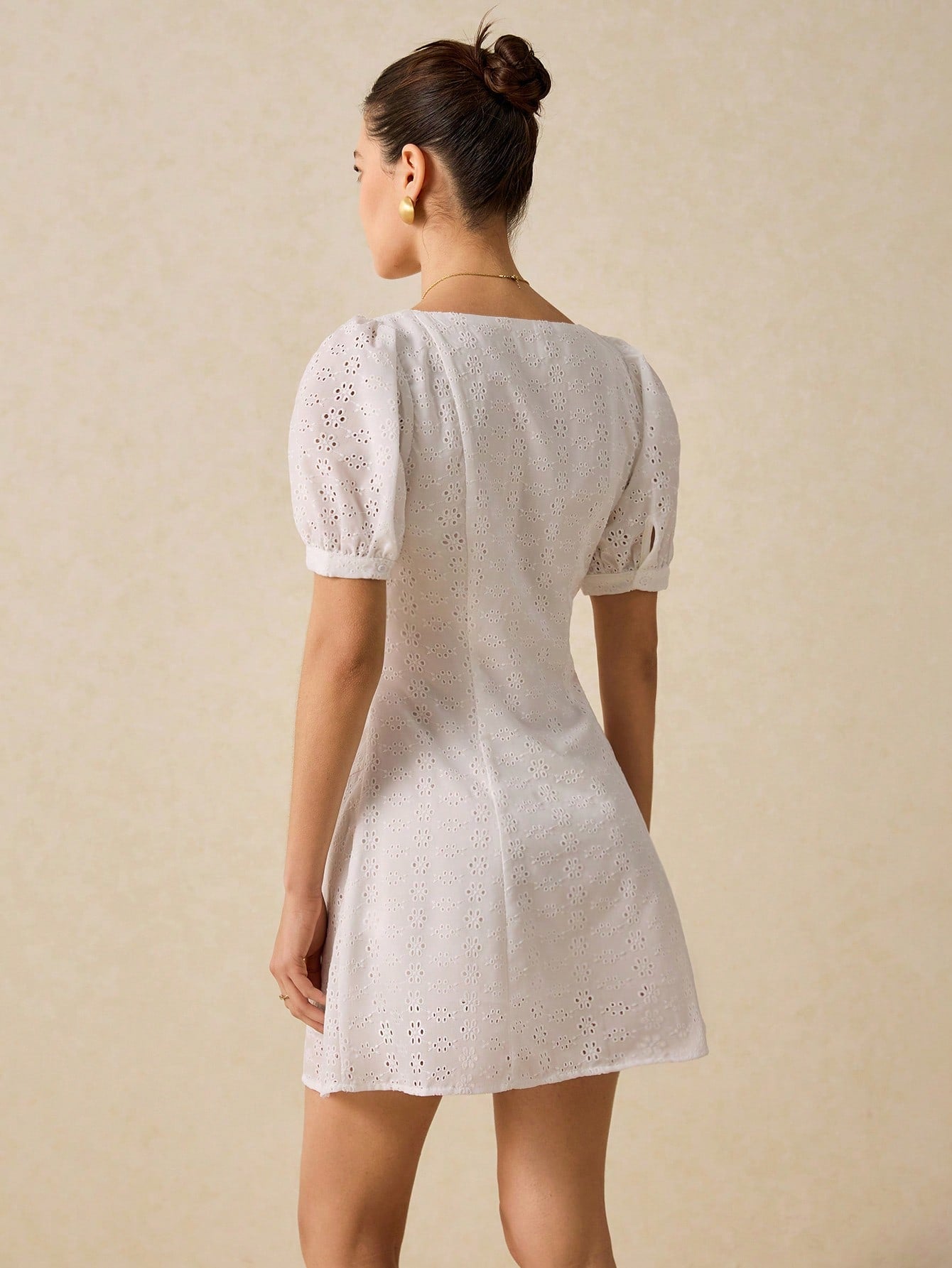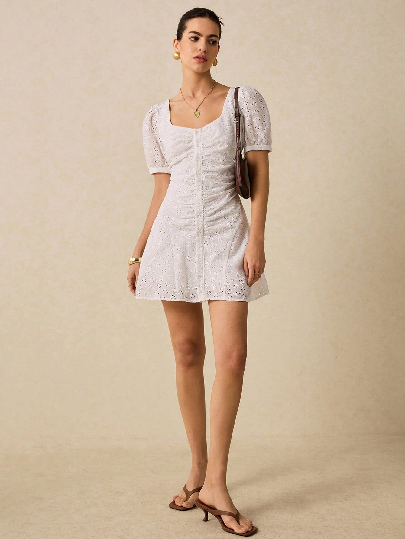 Poï؟½selle French White Puff Sleeve Mini Dress