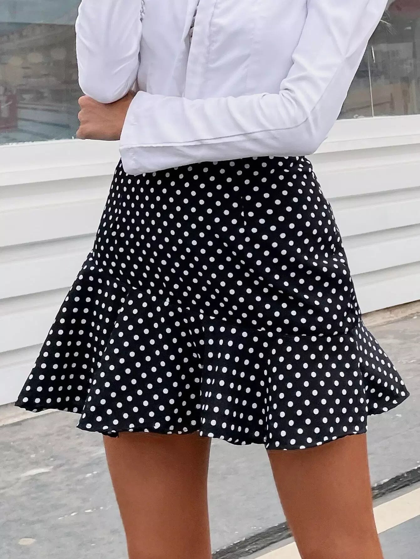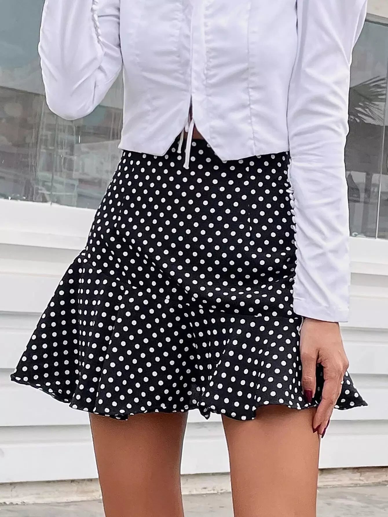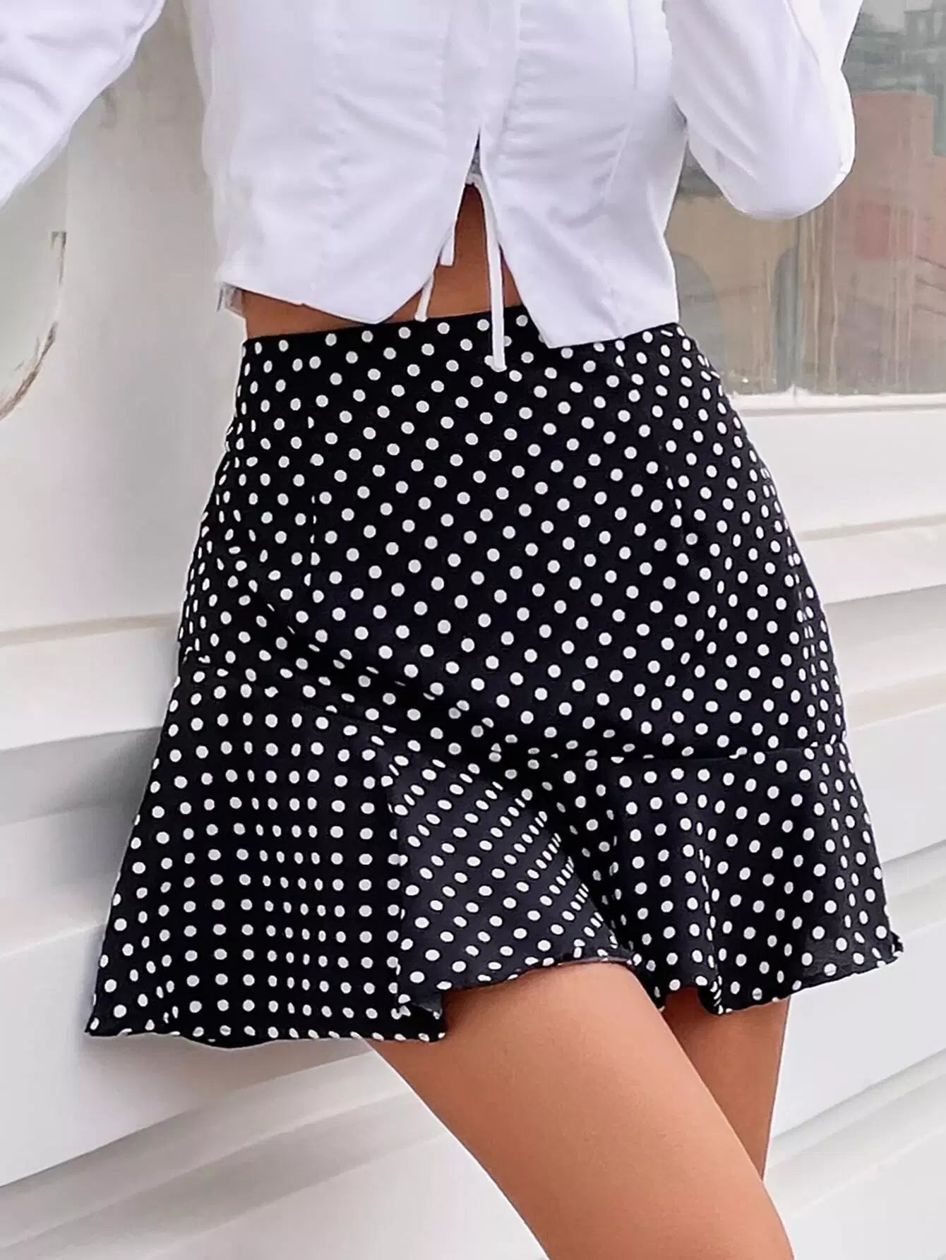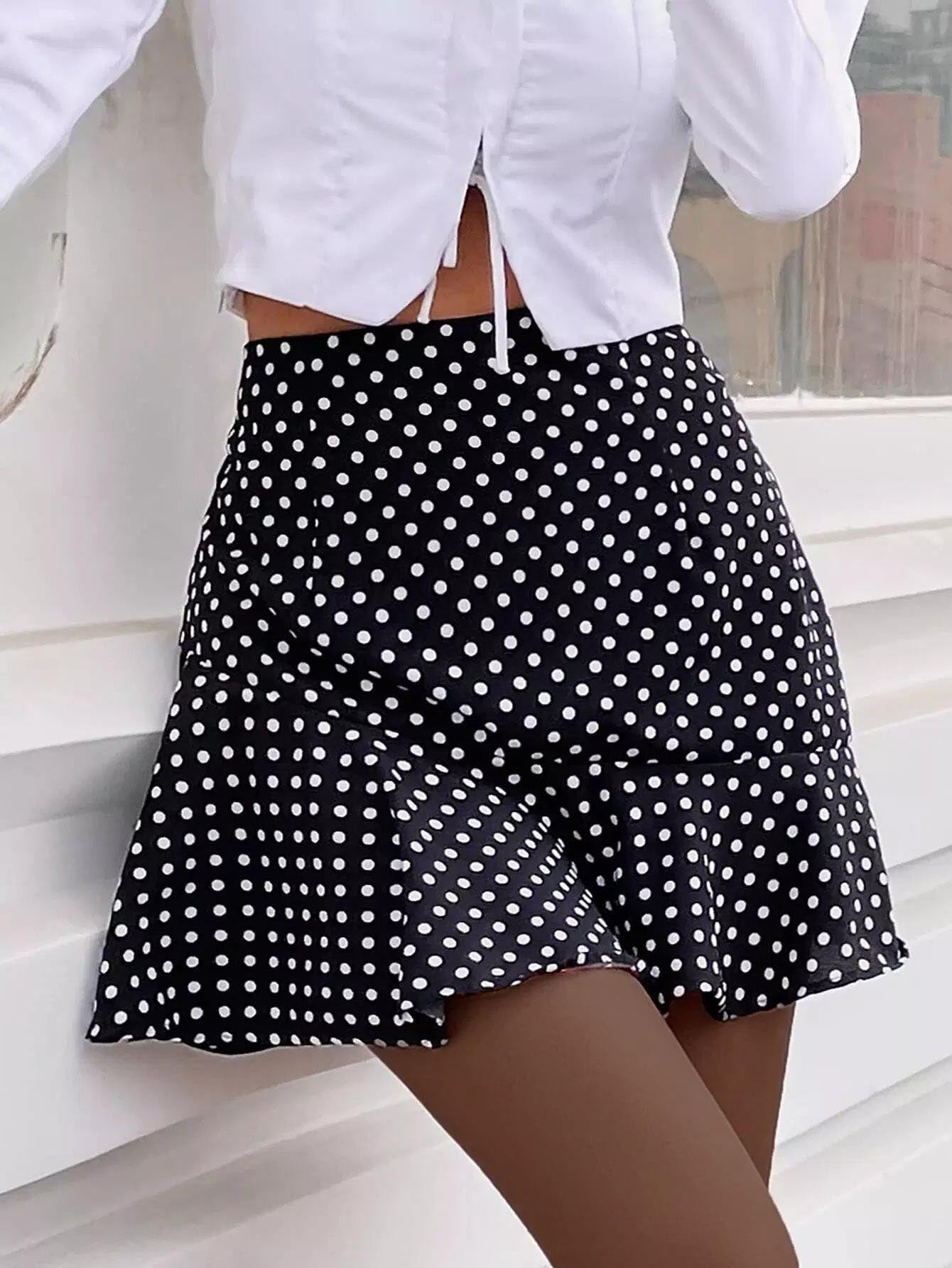 Polka Dot Ruffle Hem Skirt