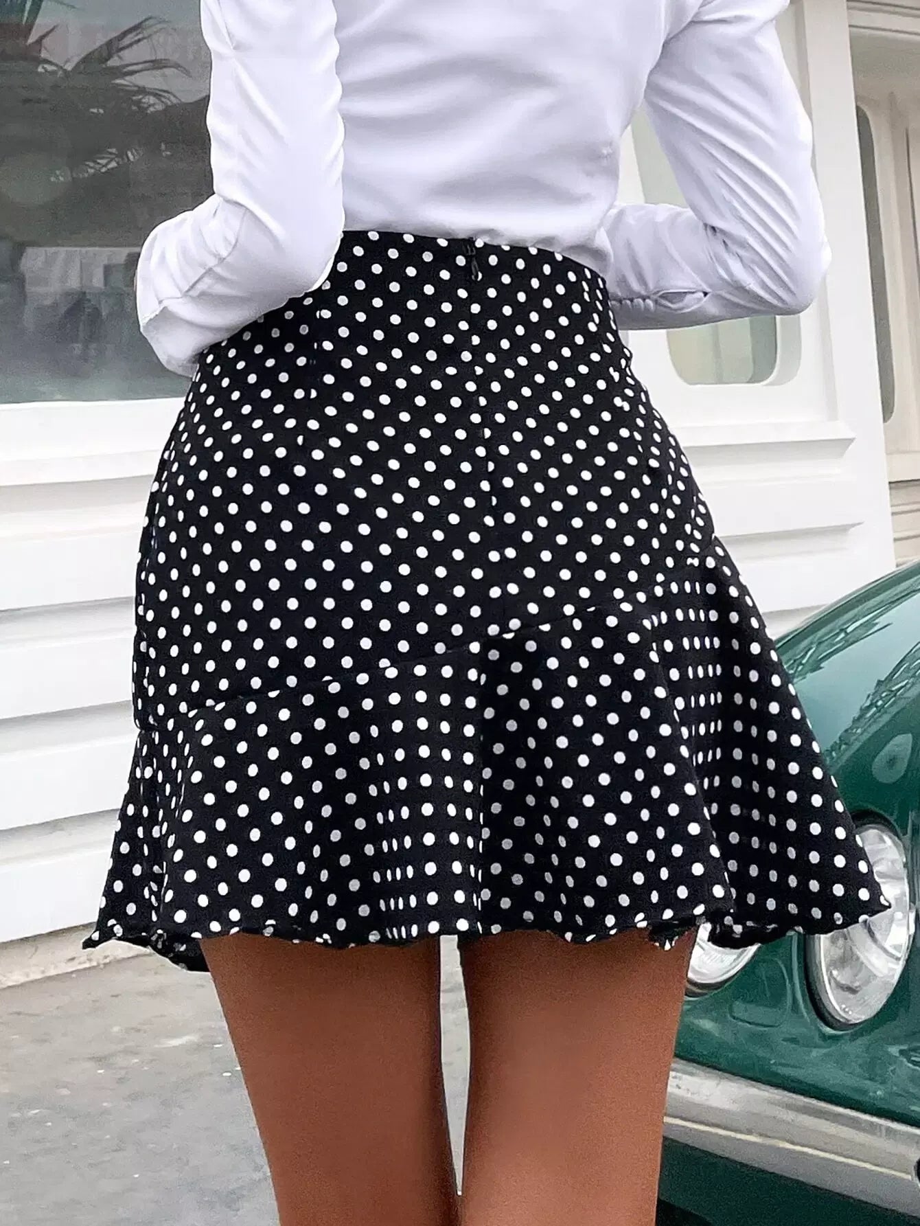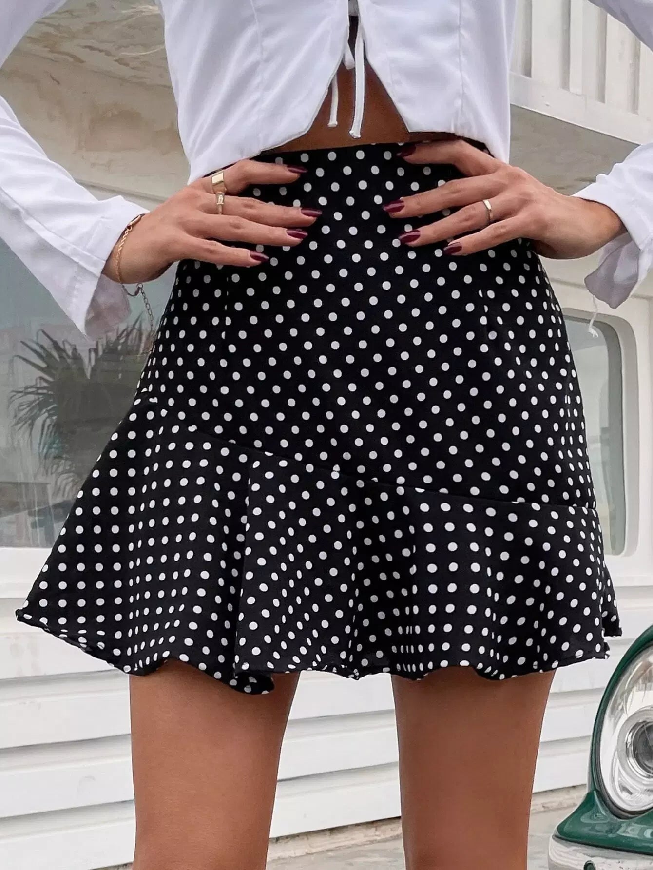 Women - Polka Dot Ruffle Hem Skirt