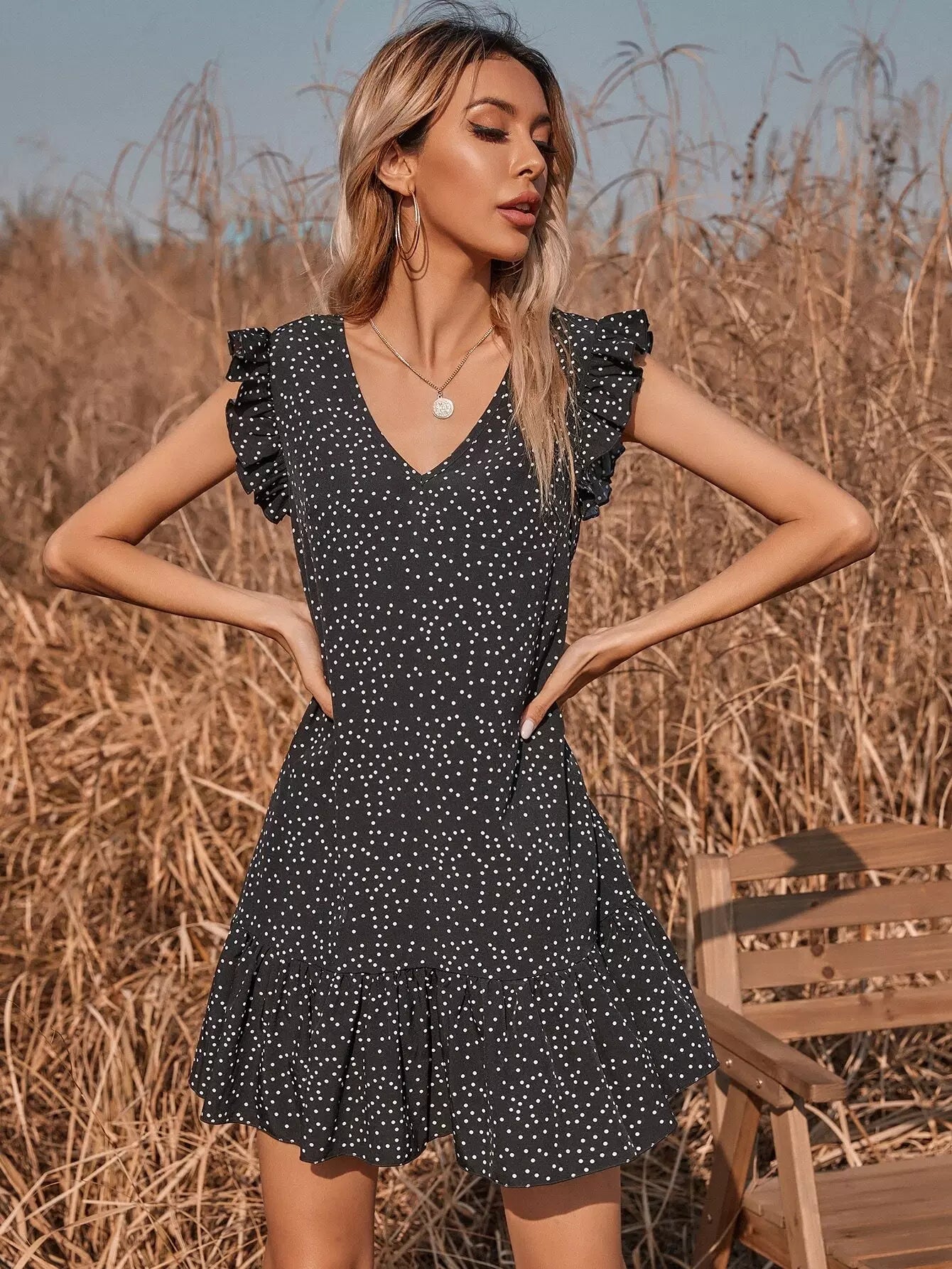 Women - Polka Dot Tie Back Ruffle Hem Dress
