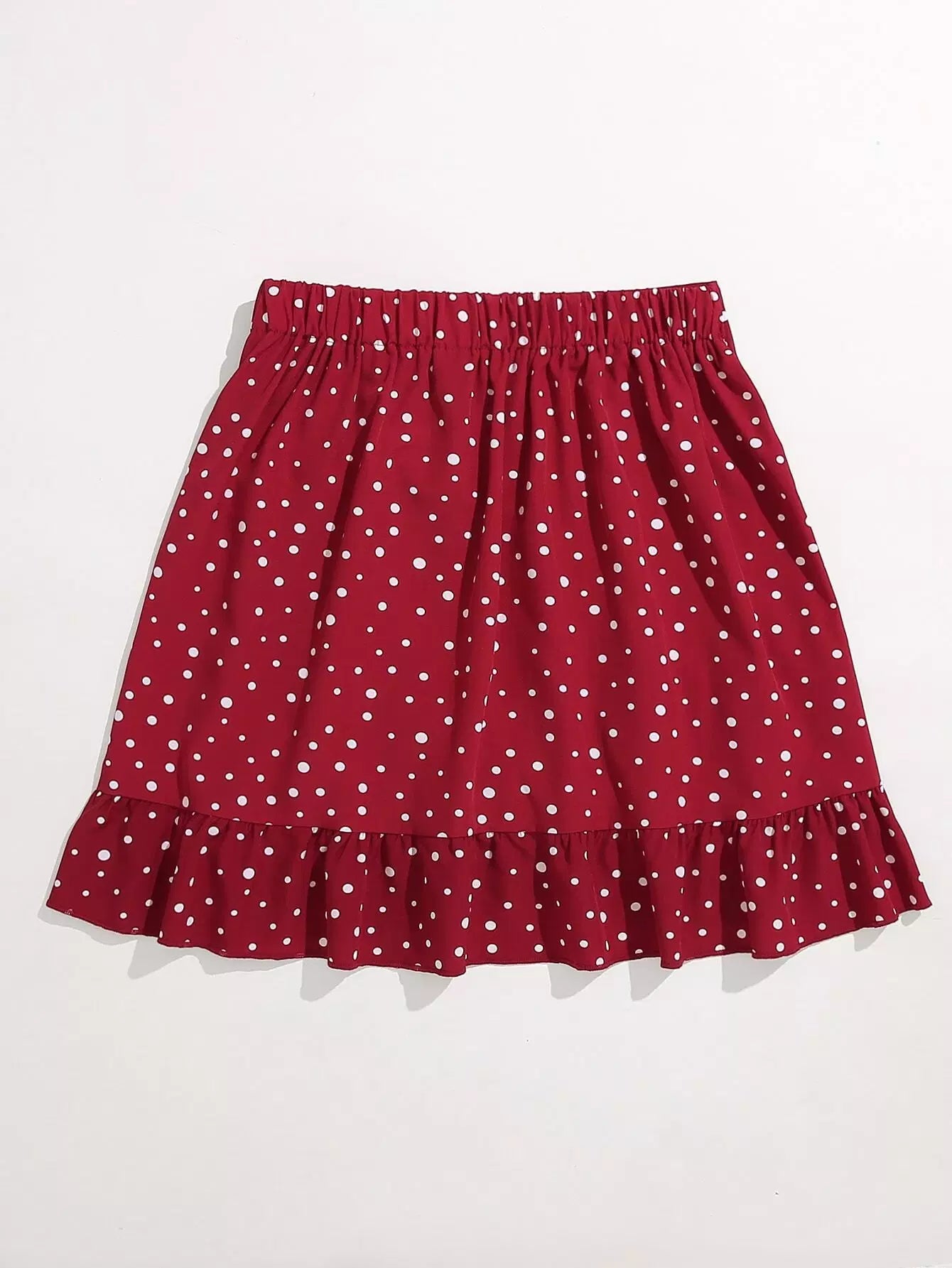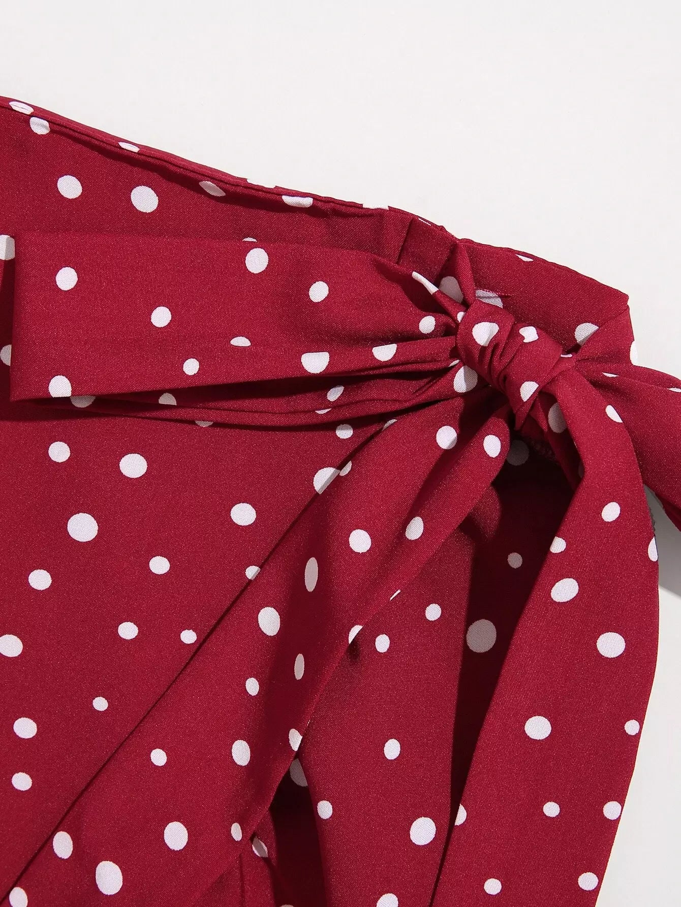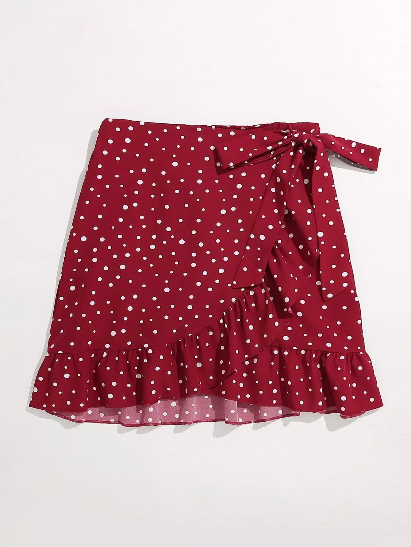 Polka Dot Tie Side Ruffle Hem Wrap Skirt