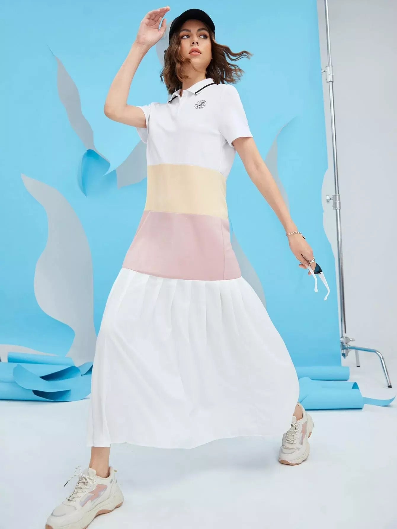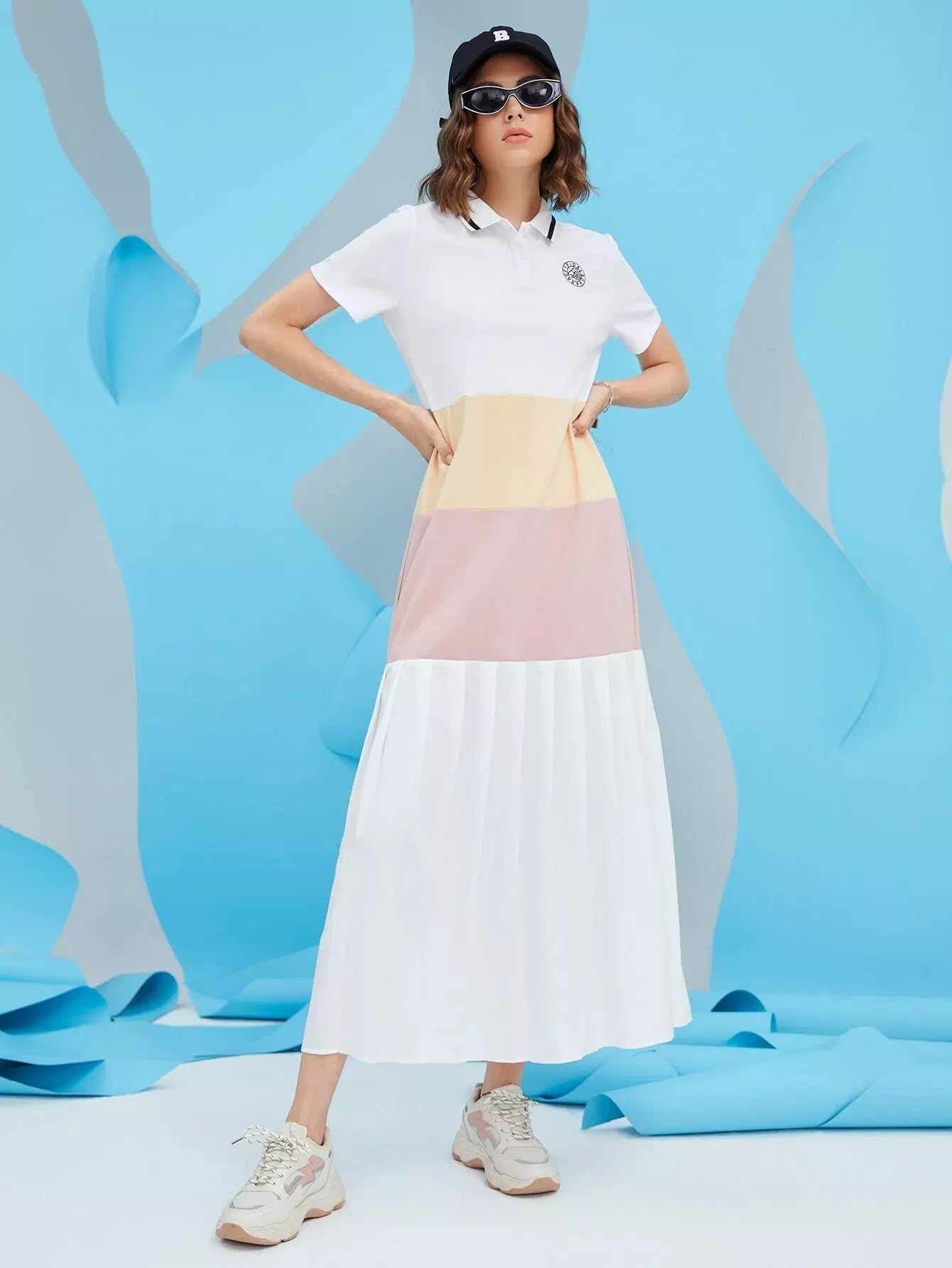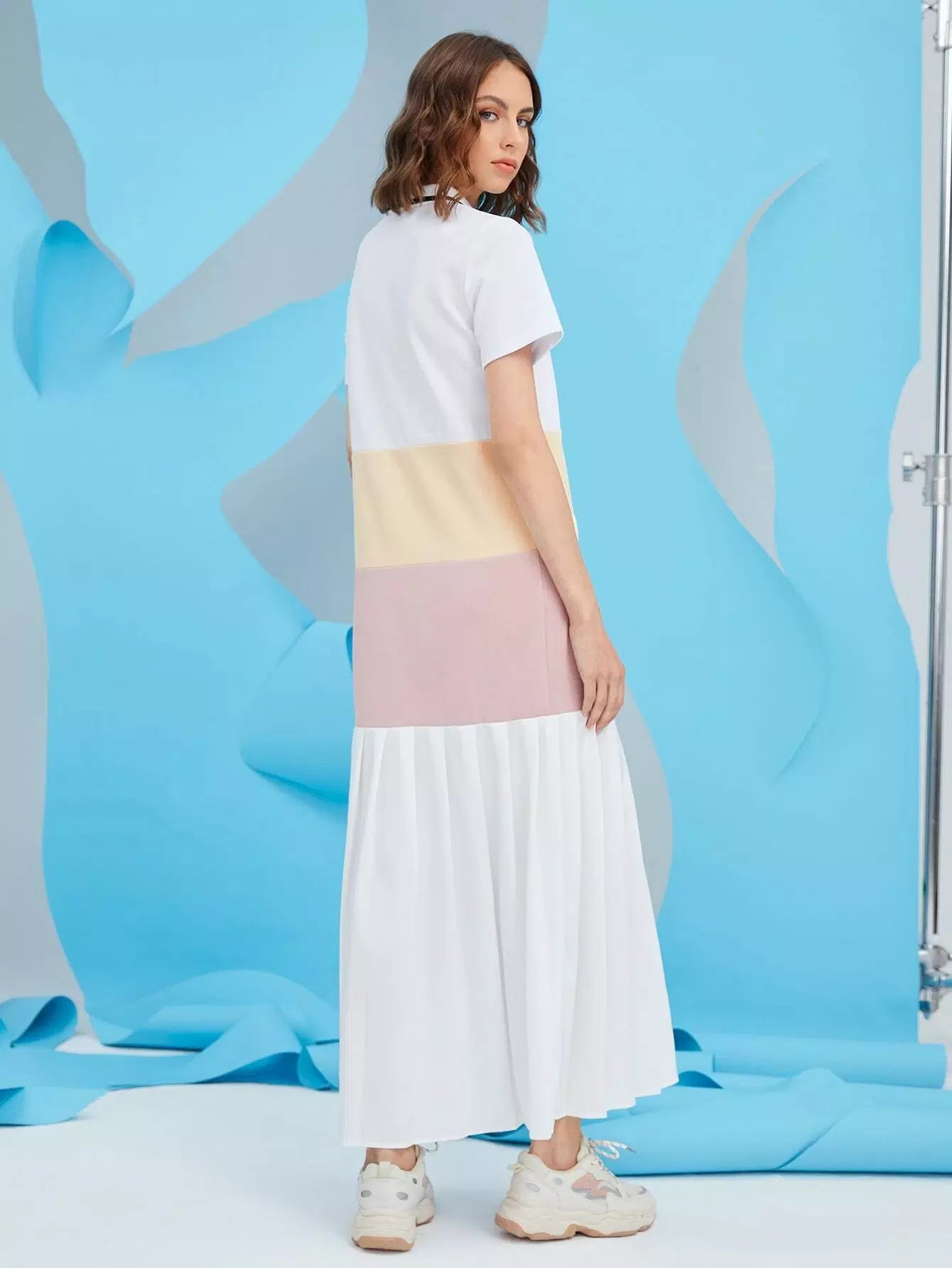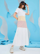 Polo Neck Color-block Pleated Hem Arabian Dress