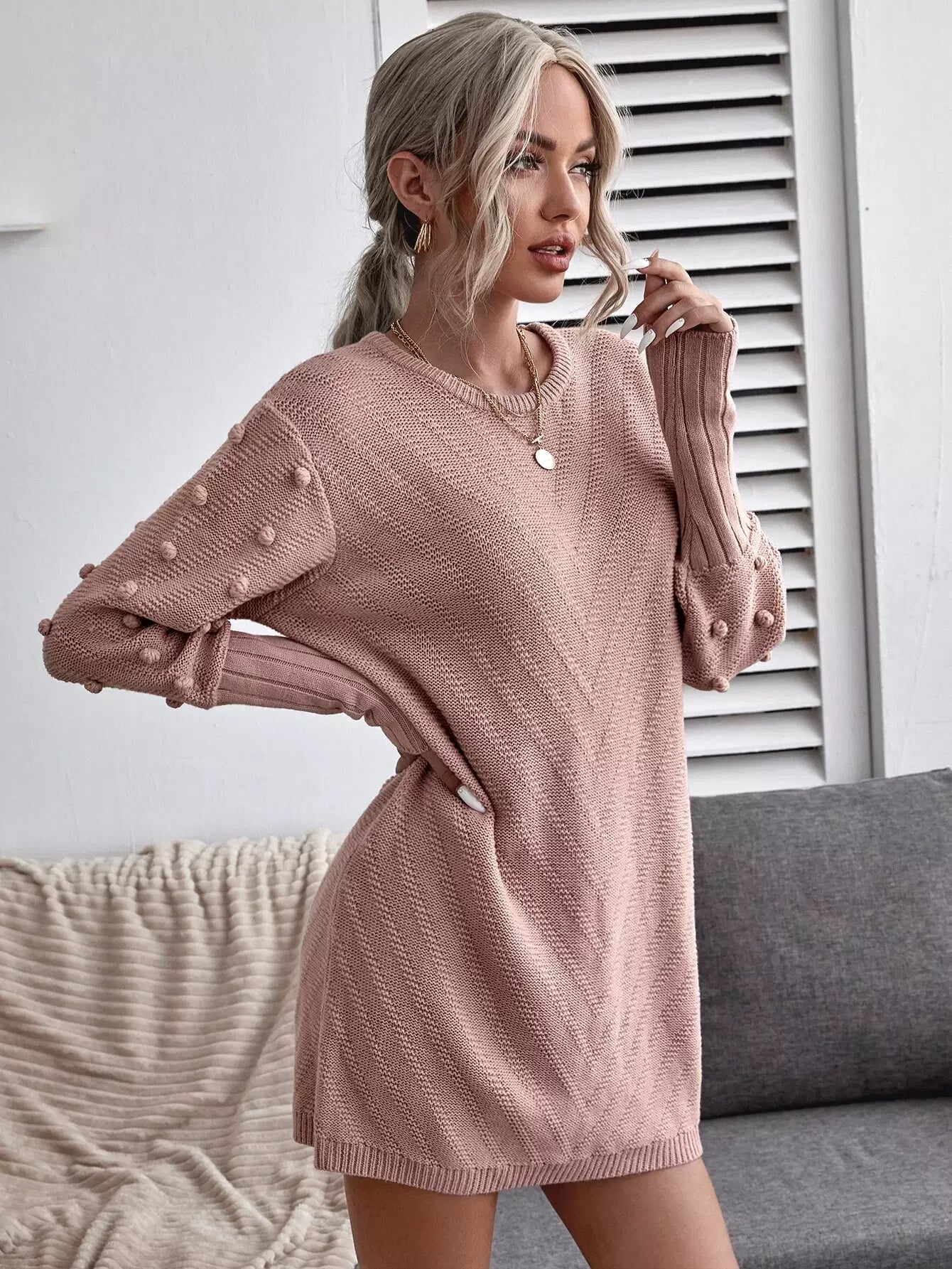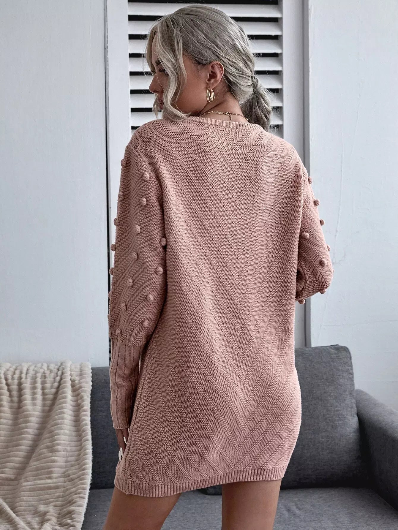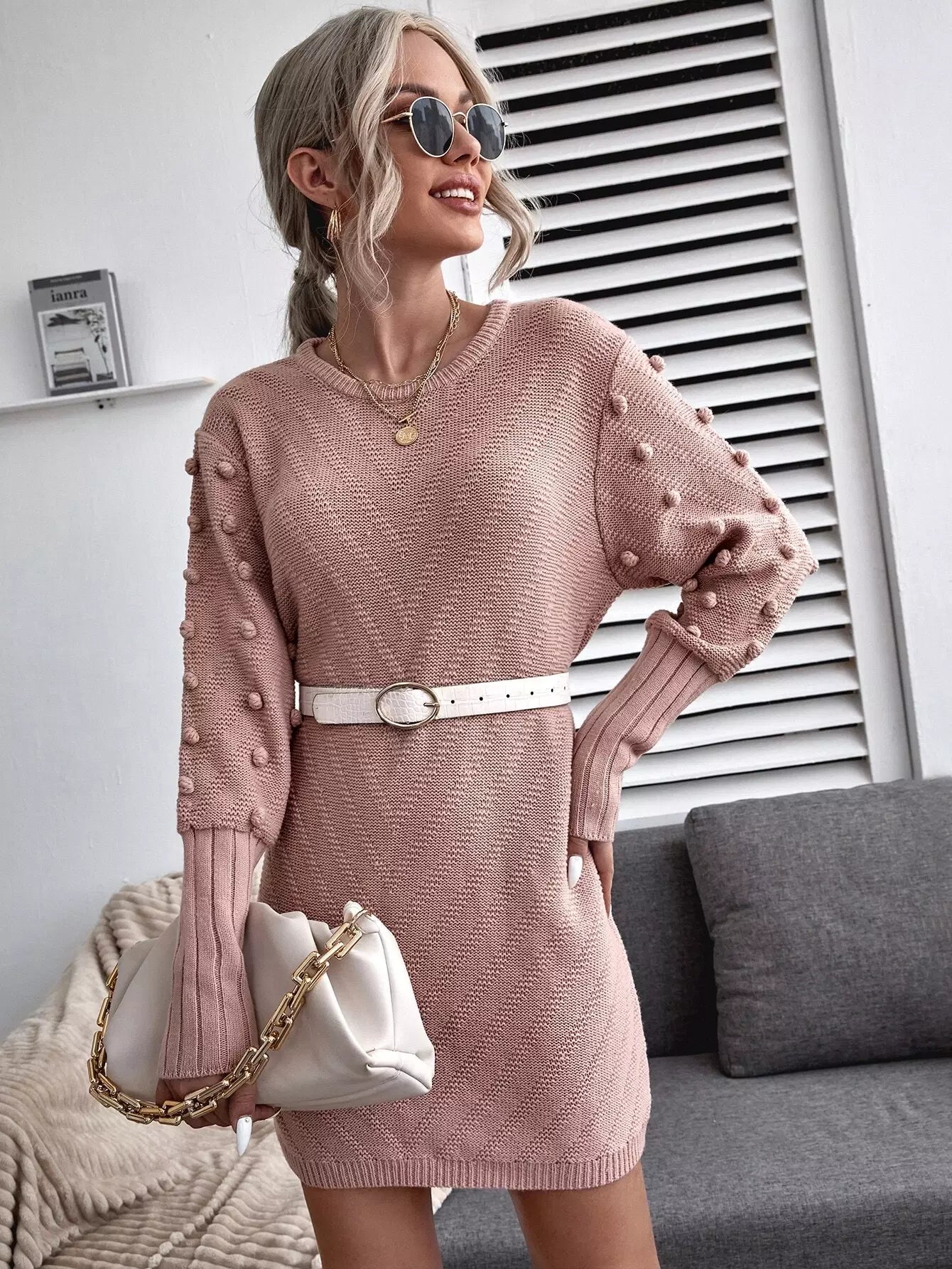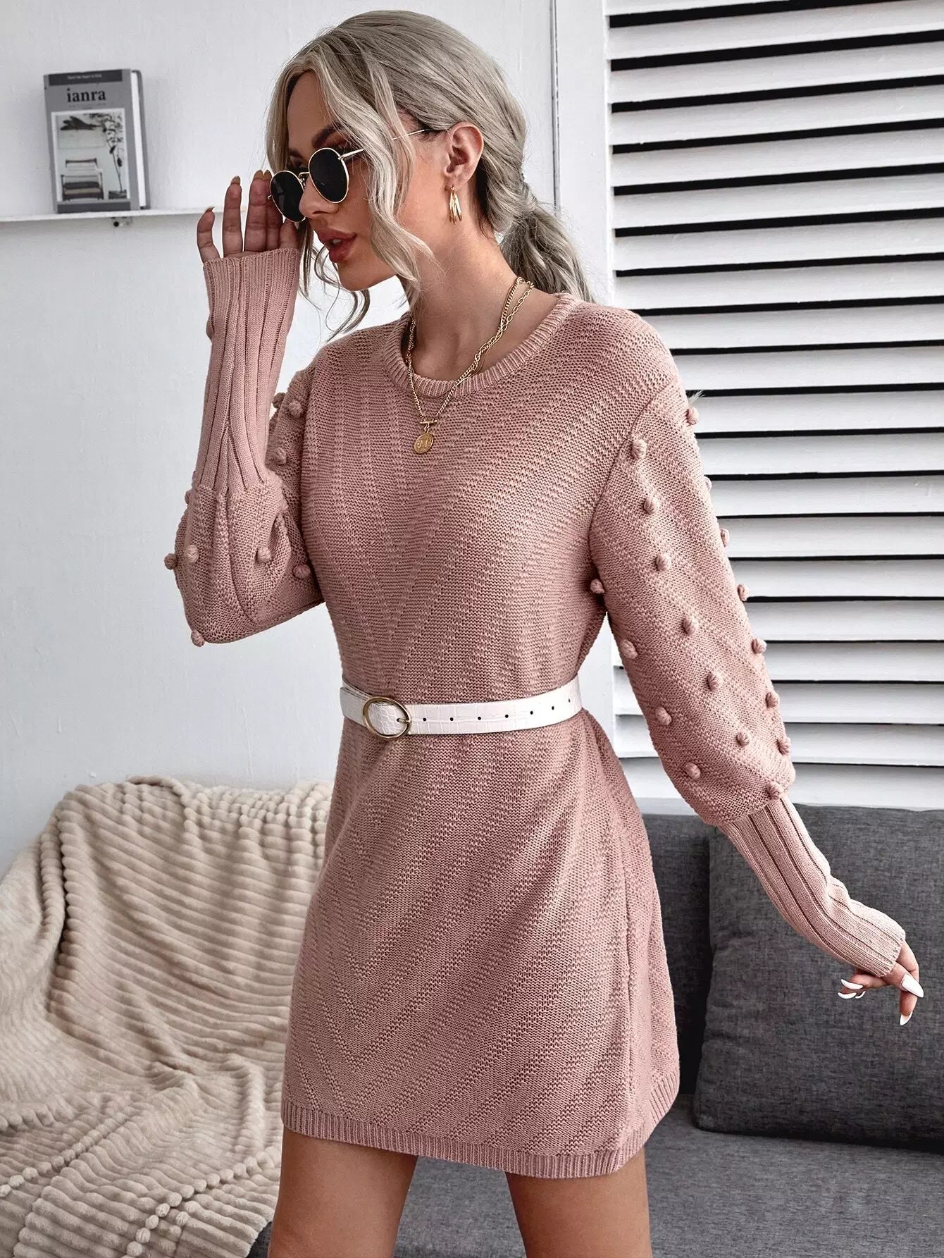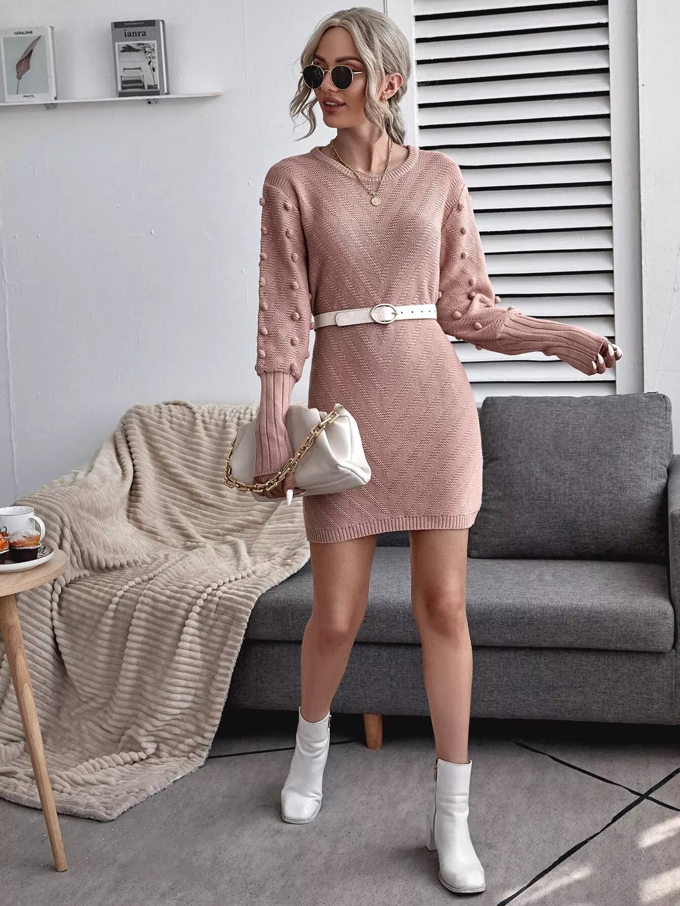 Popcorn Knit Sleeve Sweater Dress Without Belt