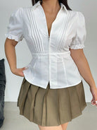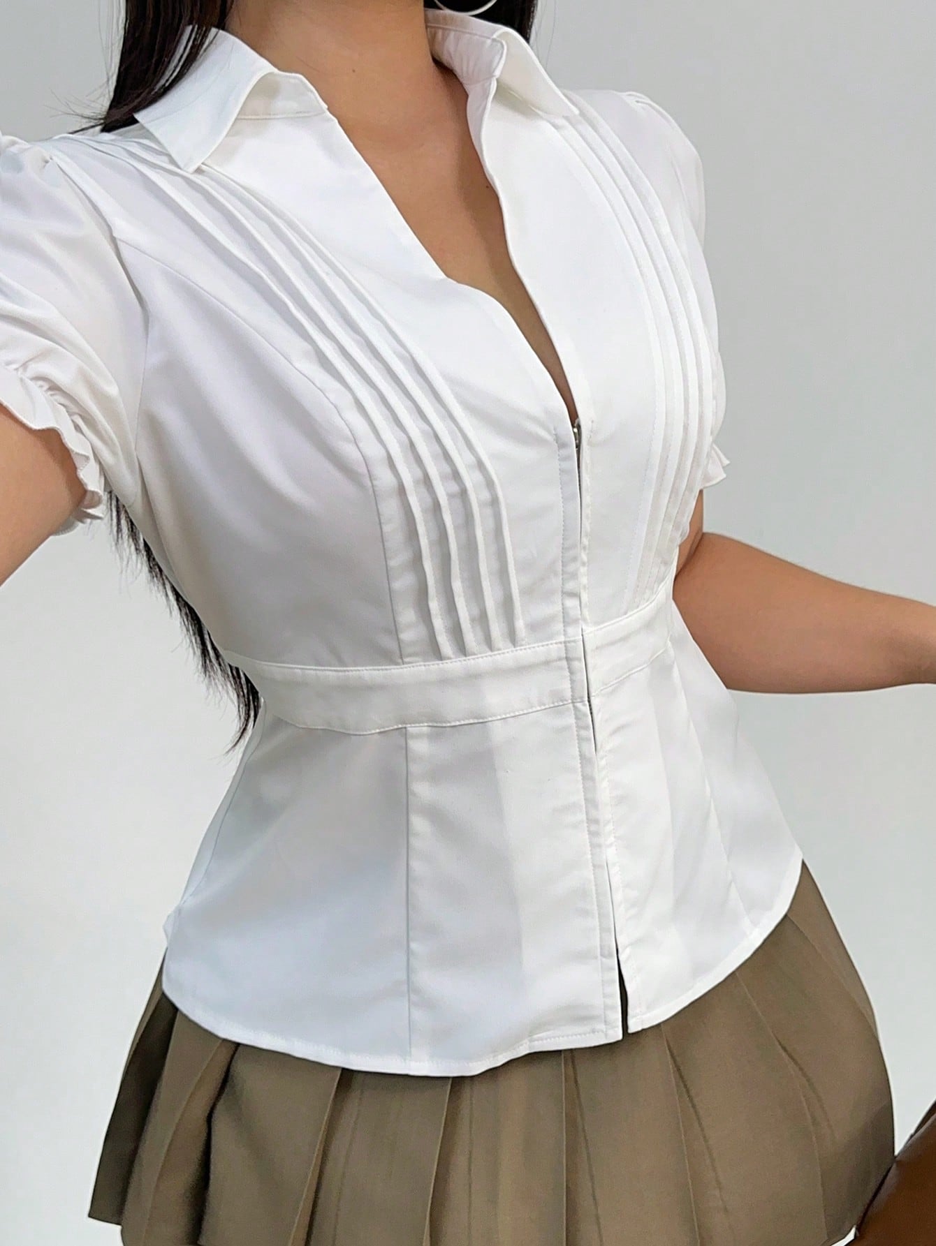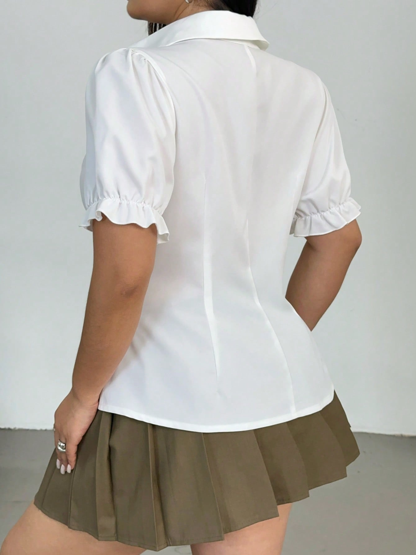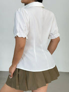 POPSWAY Plus Size Women V-Neck Vintage Style Casual Shirt, White