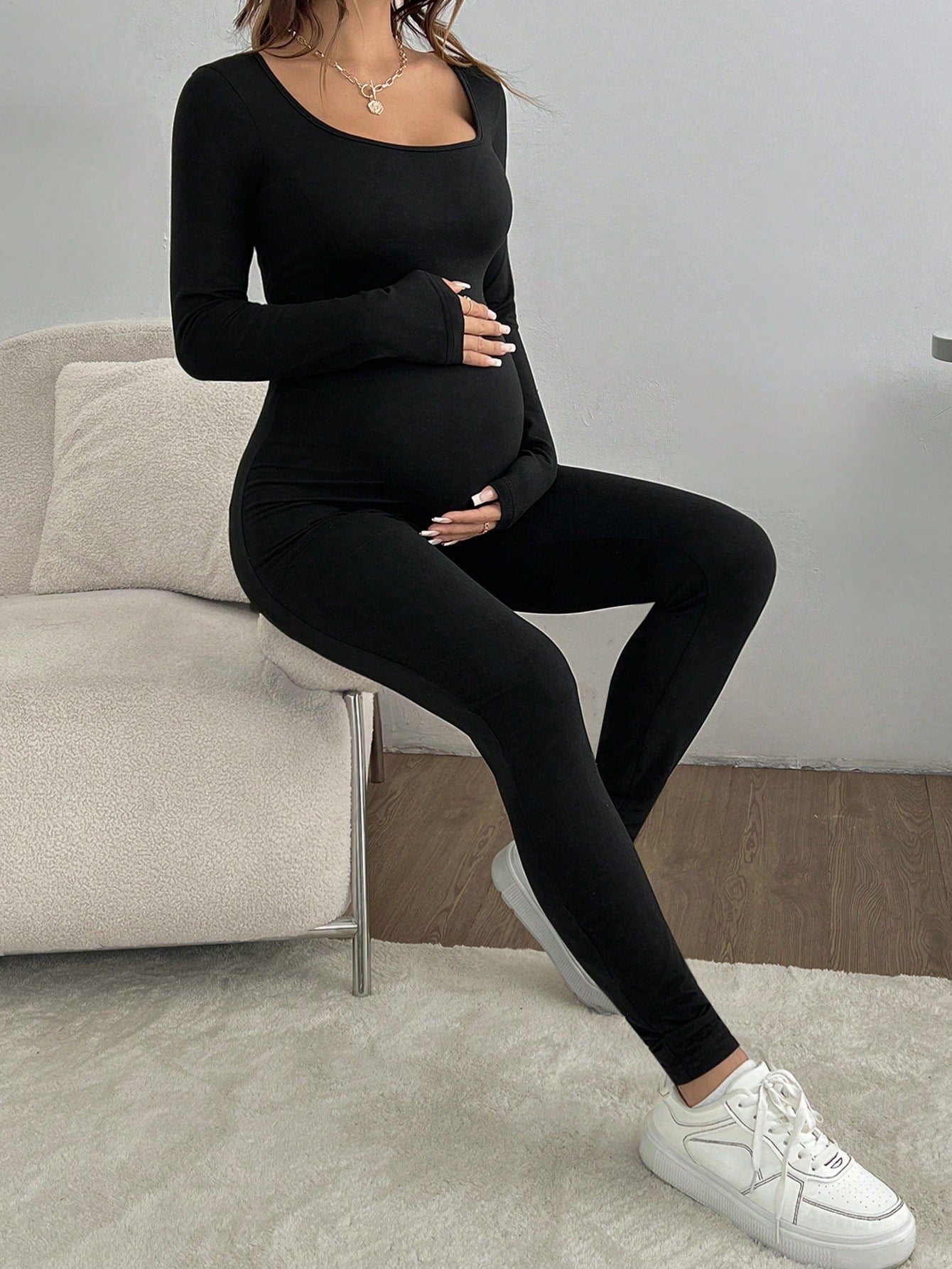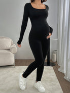 Pregnant Women Solid Color Long Sleeve Slim Jumpsuit