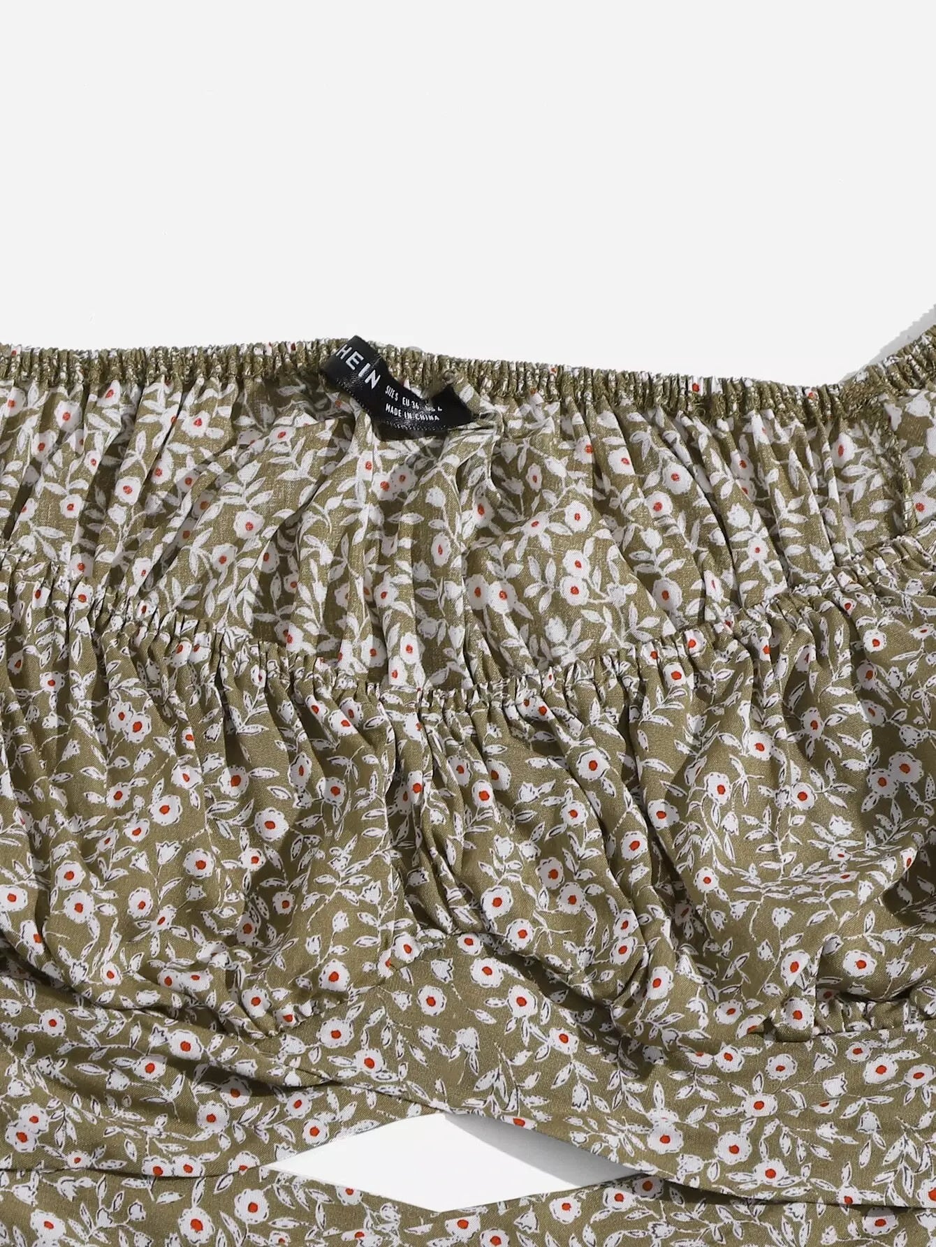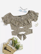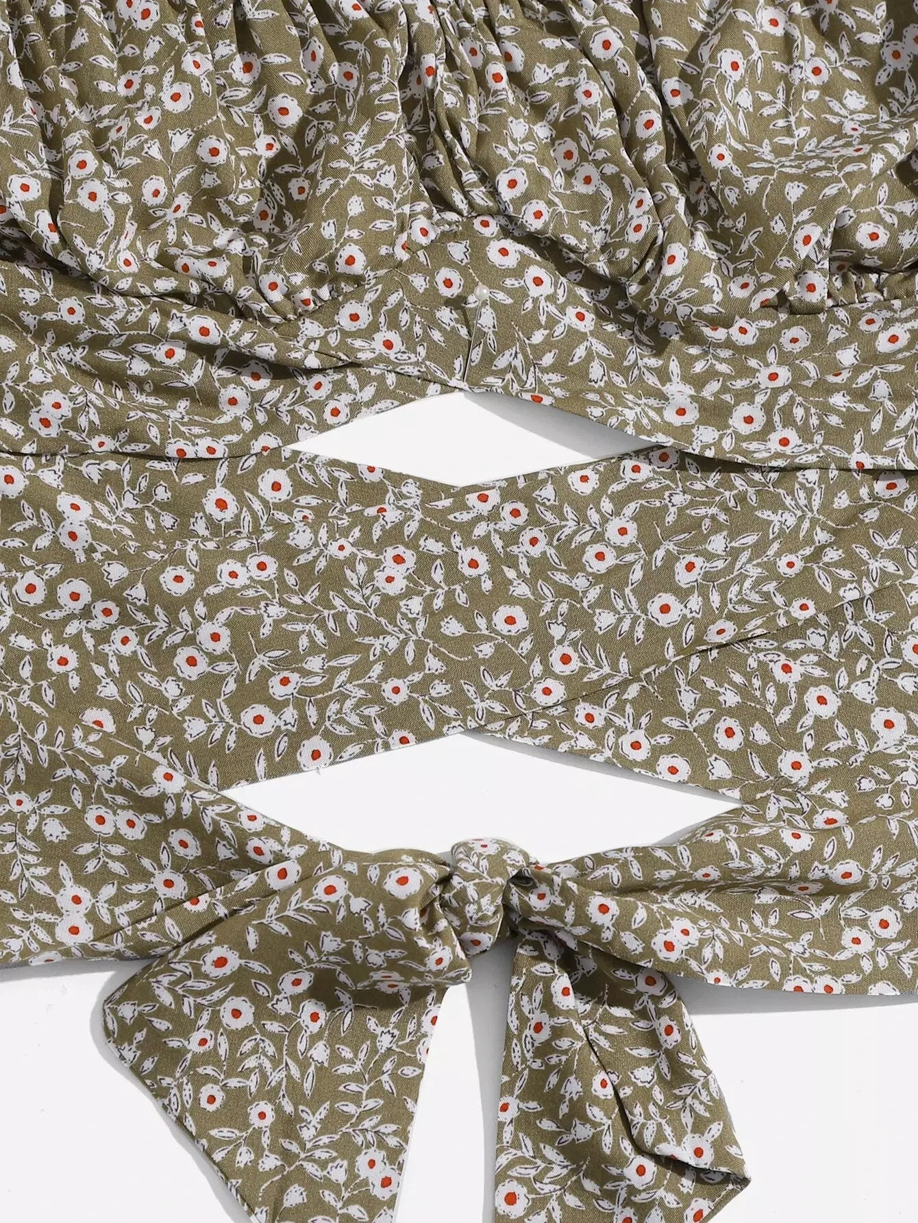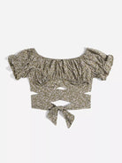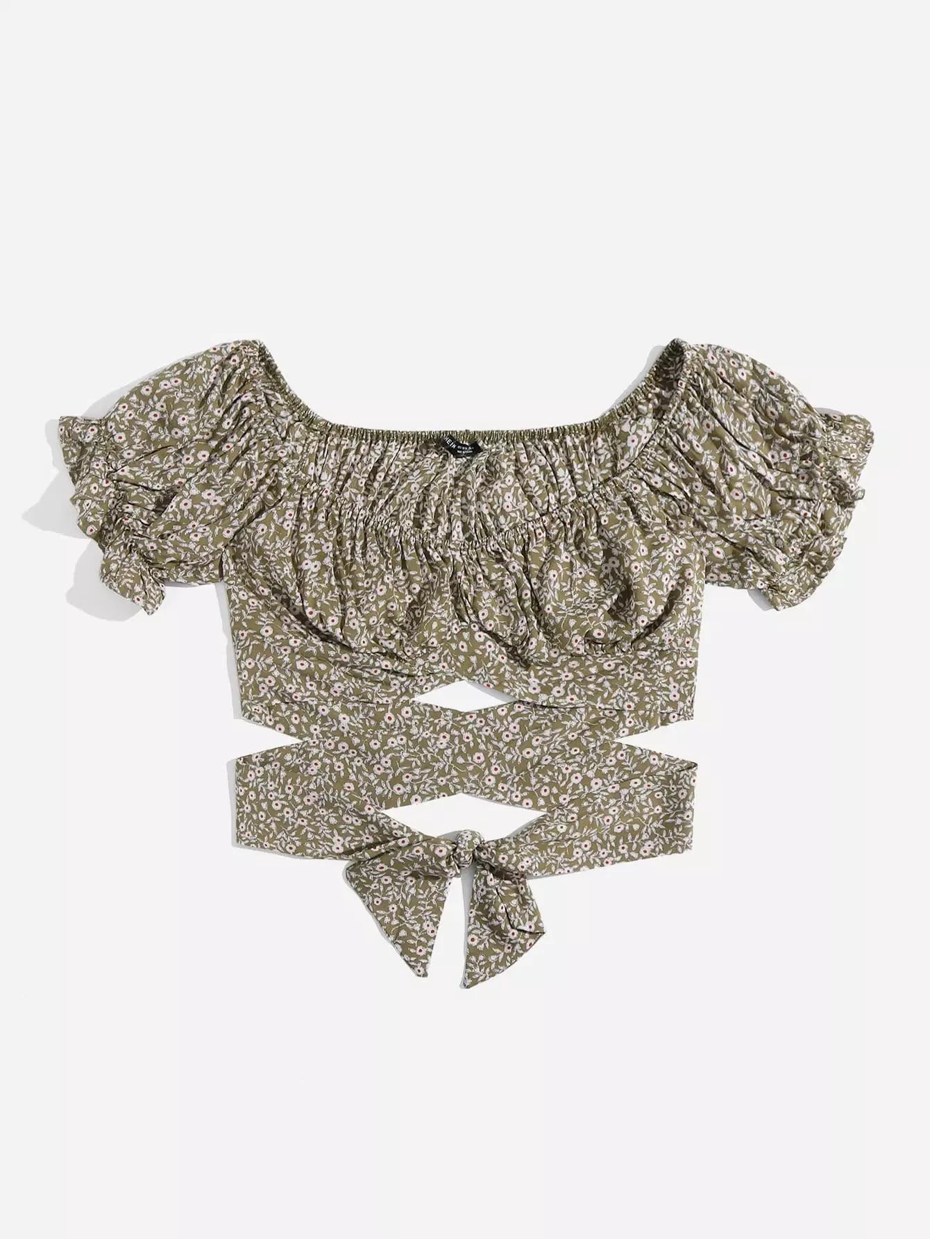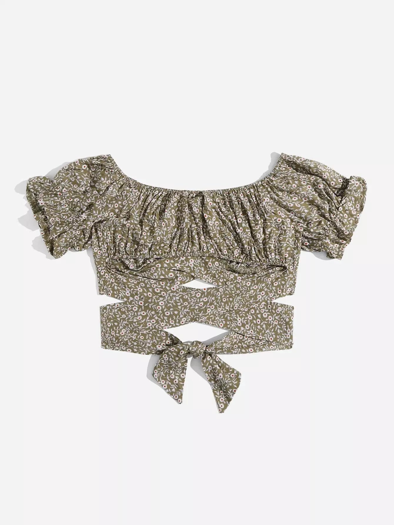 Puff Sleeve Ruched Bust Knot Ditsy Floral Crop Top