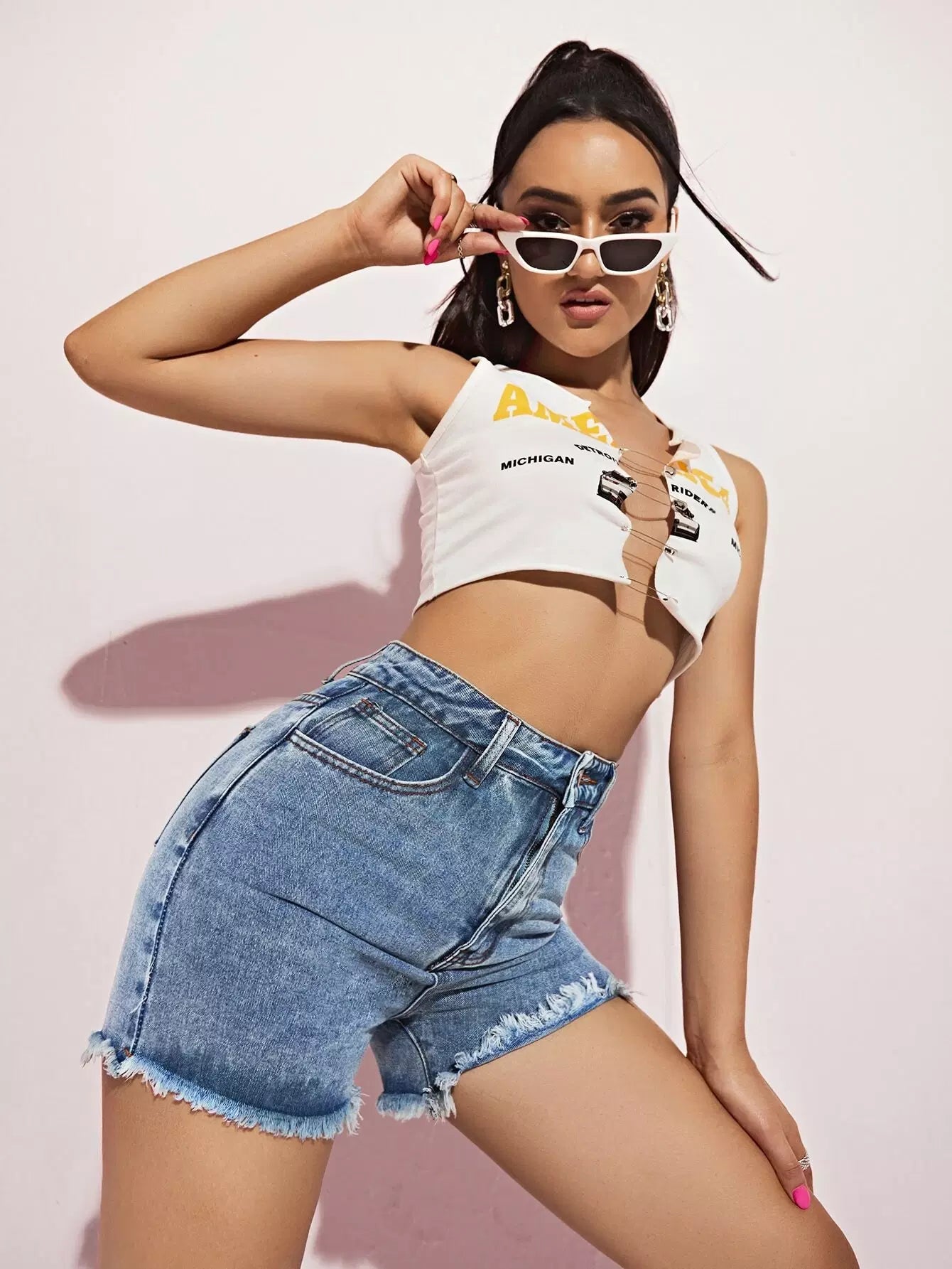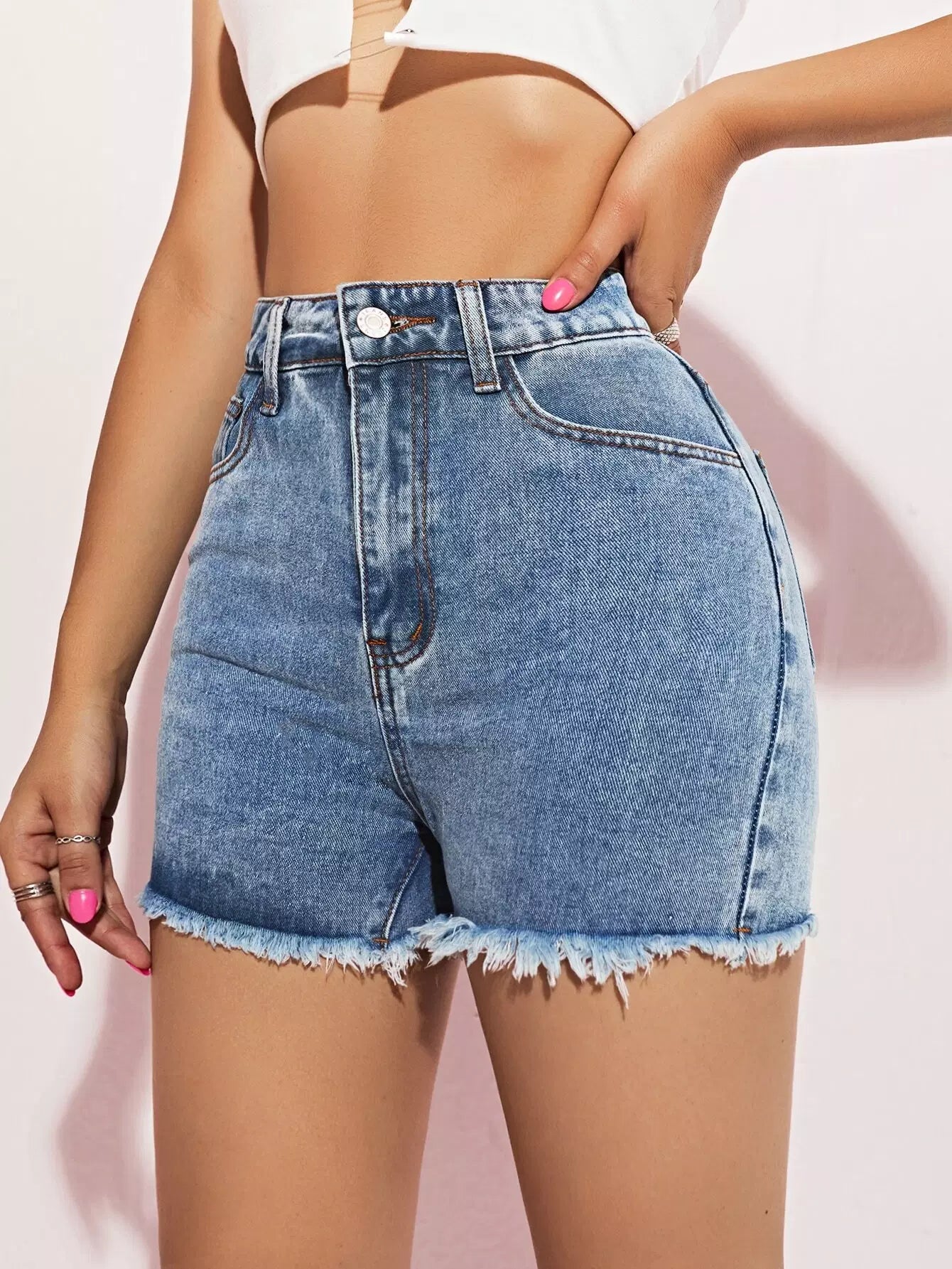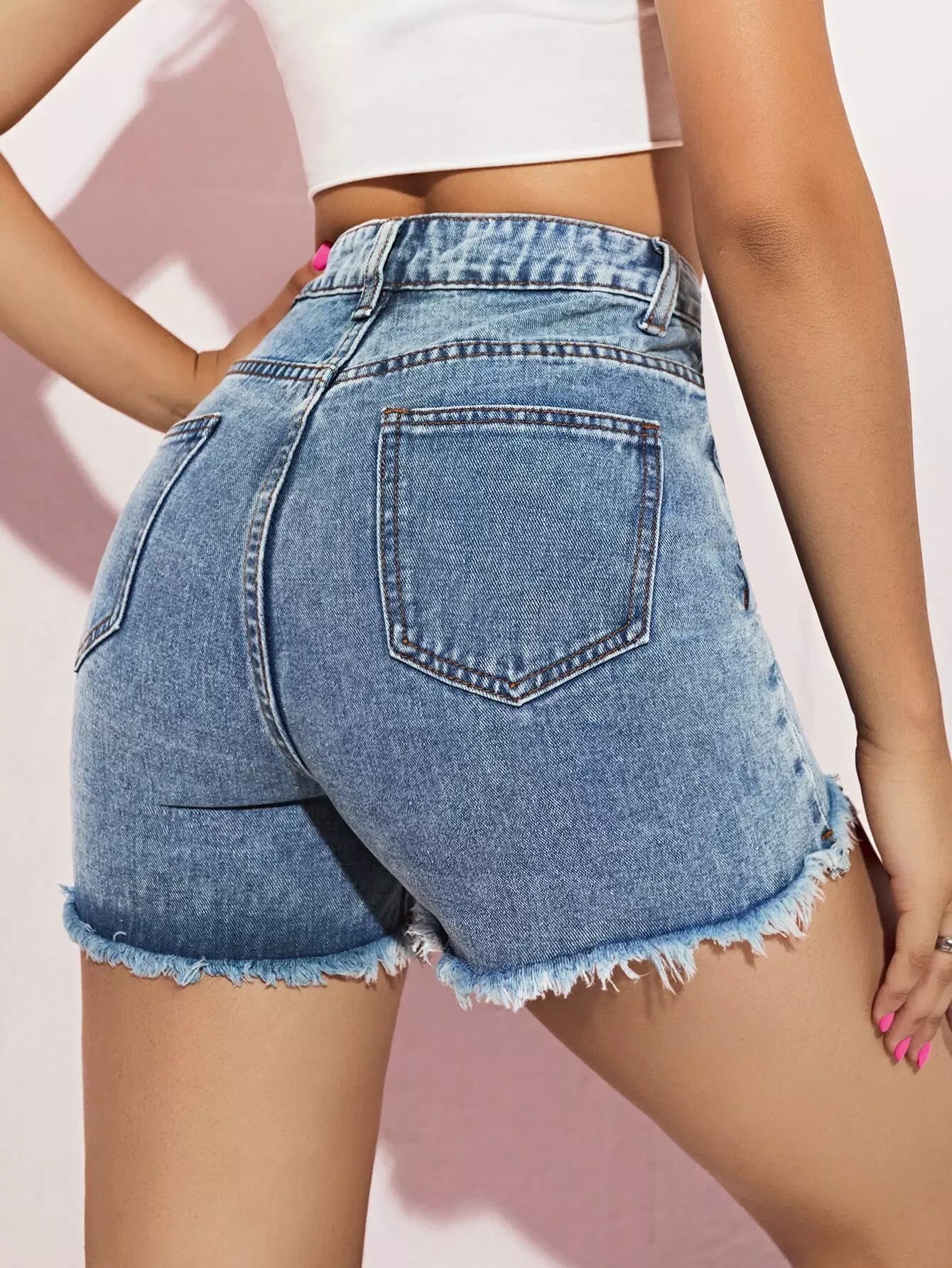 Raw Hem Slant Pocket Denim Shorts