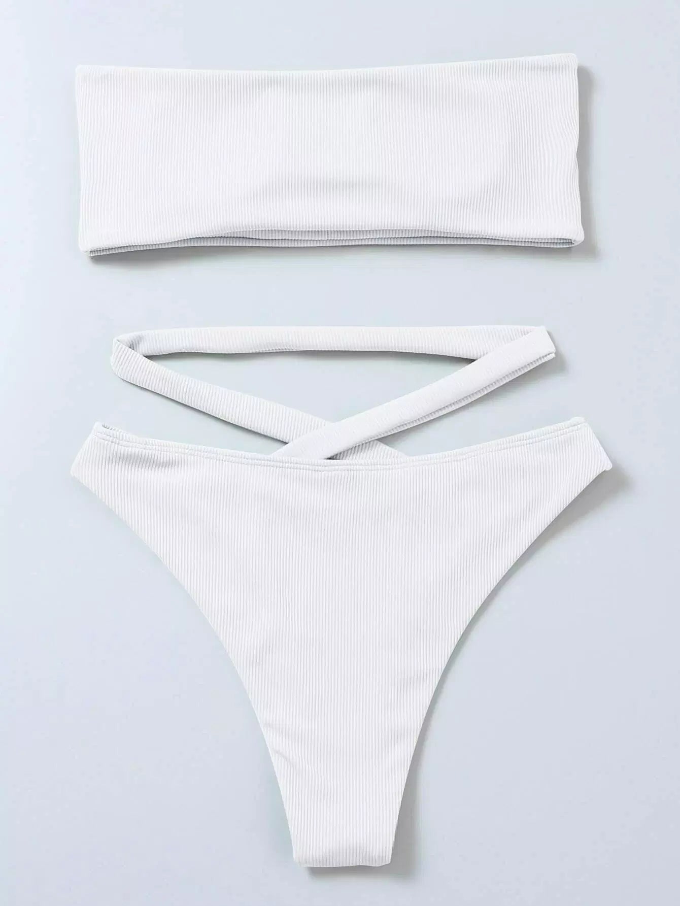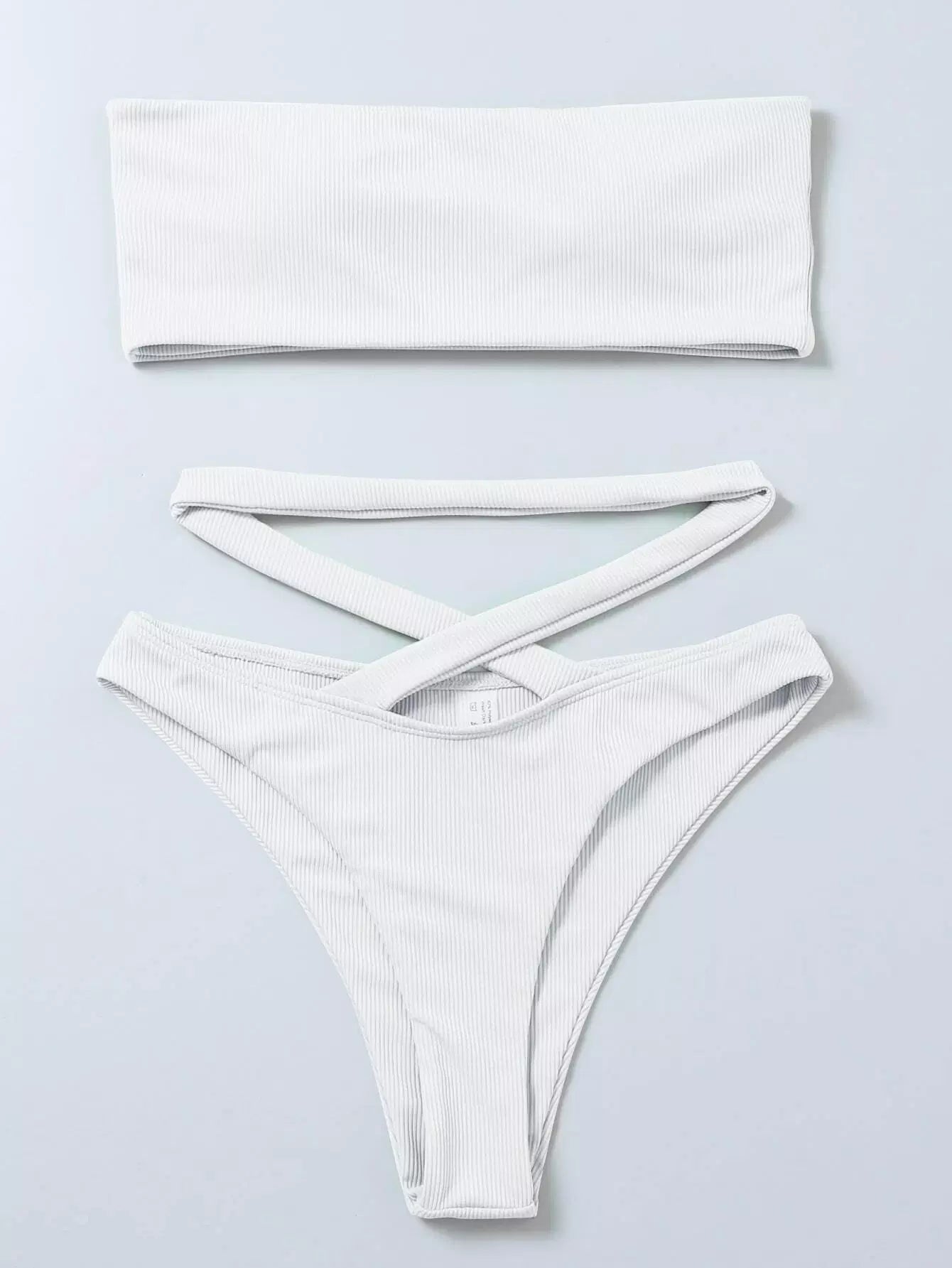 Rib Criss Detail Bandeau Bikini Swimsuit