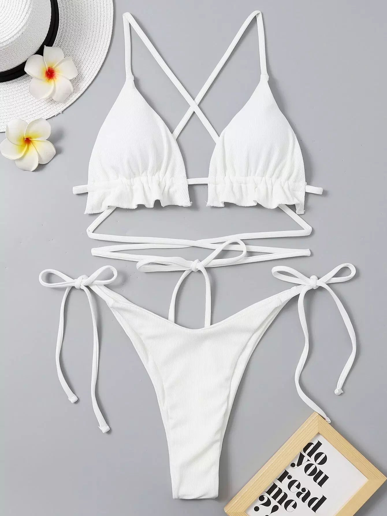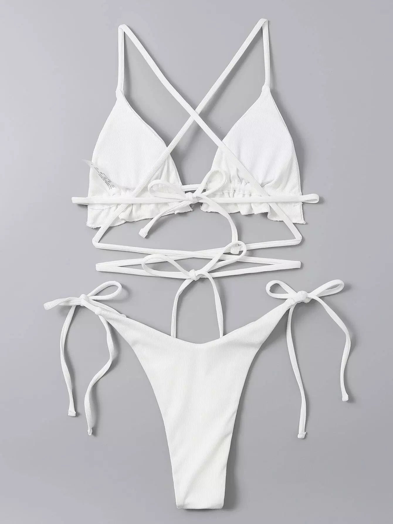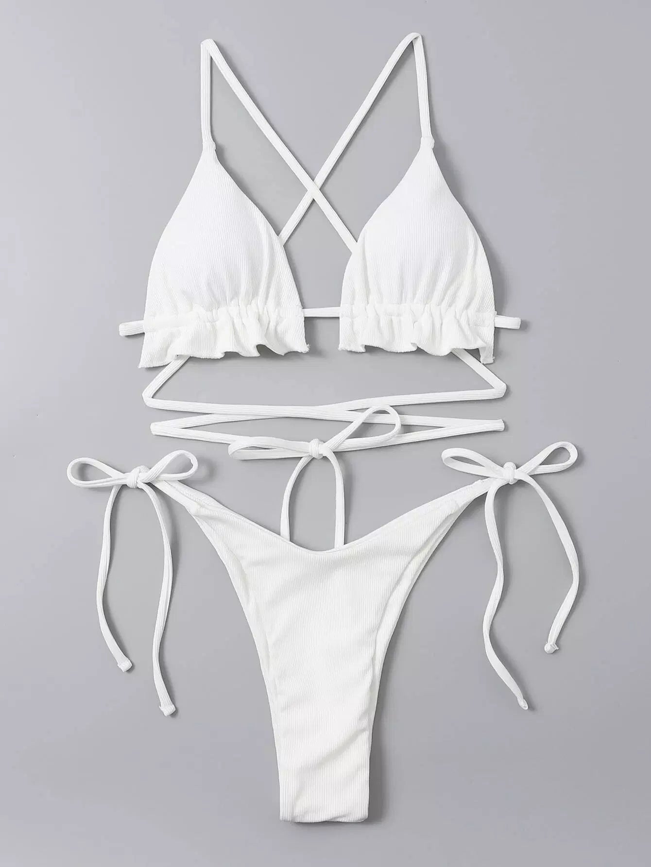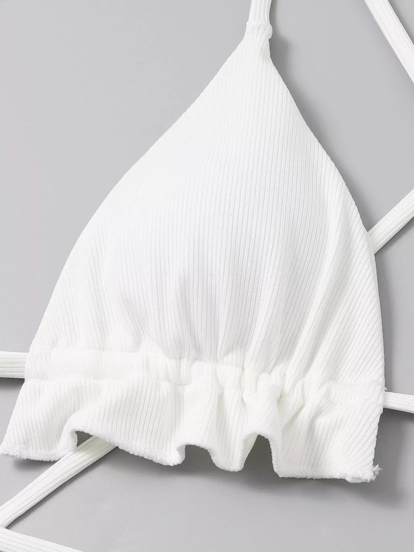 Rib Frill Triangle Tie Side Bikini Swimsuit