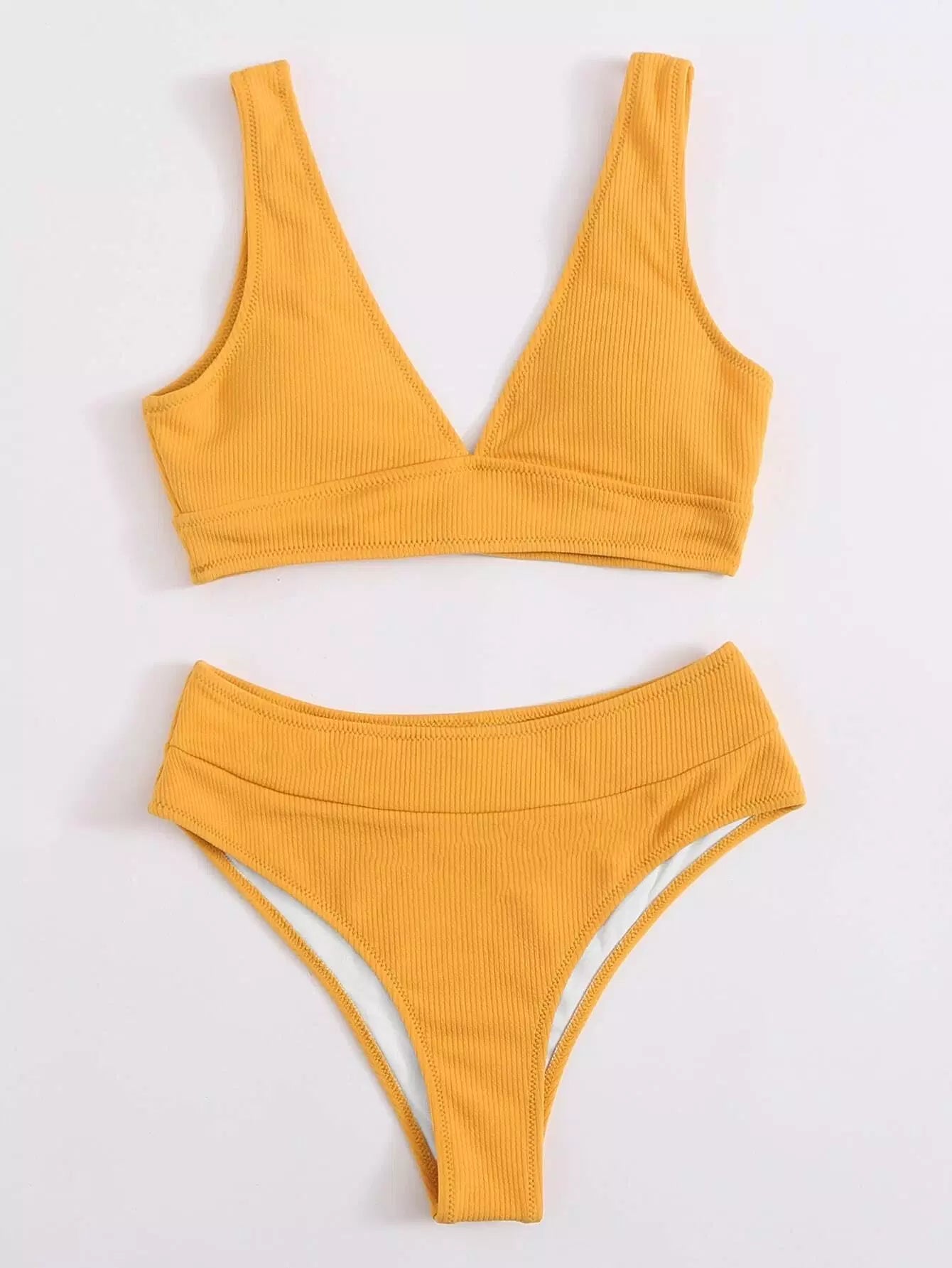 Rib High Waisted Bikini Swimsuit