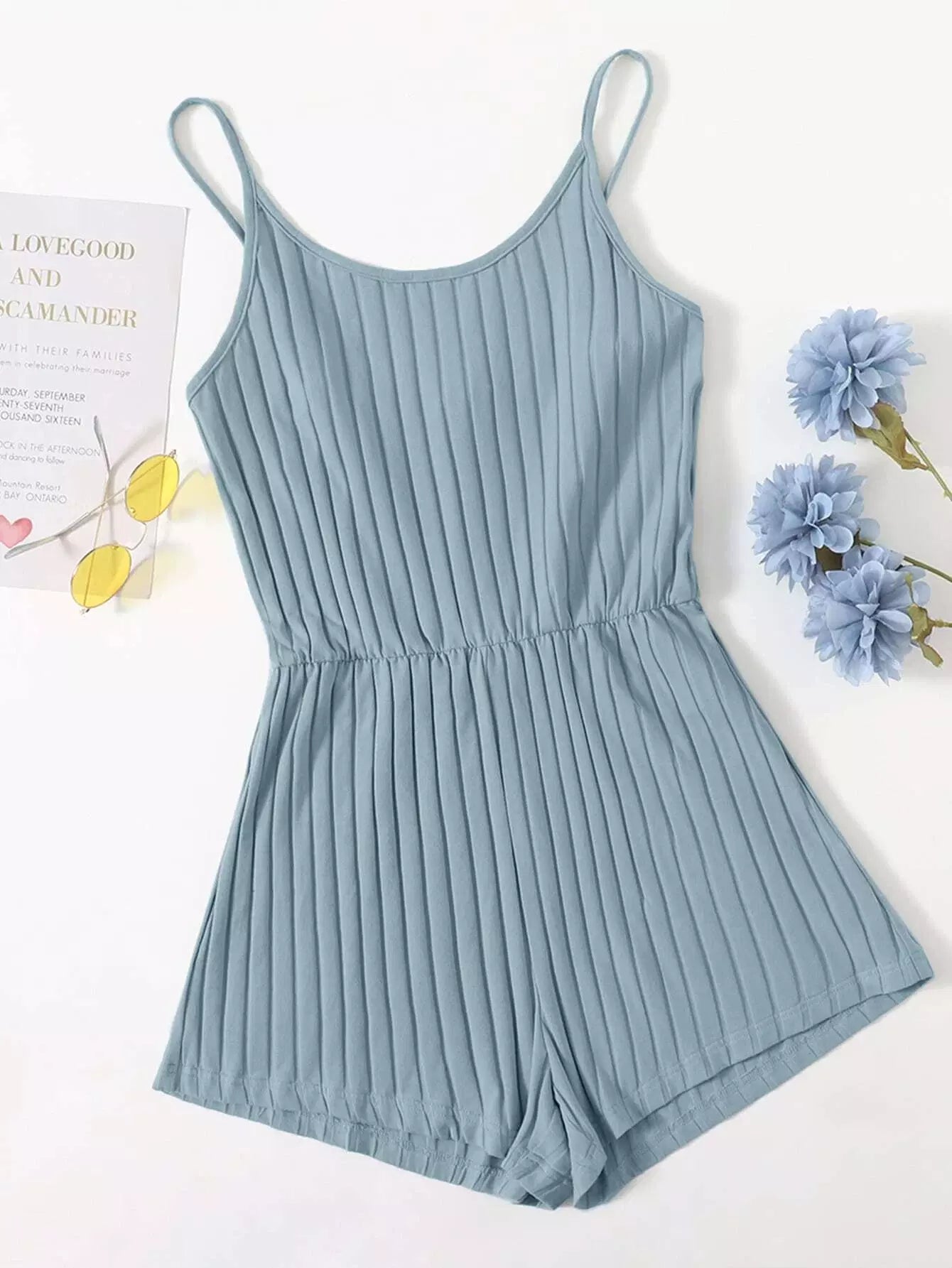 Rib-knit Cami Romper