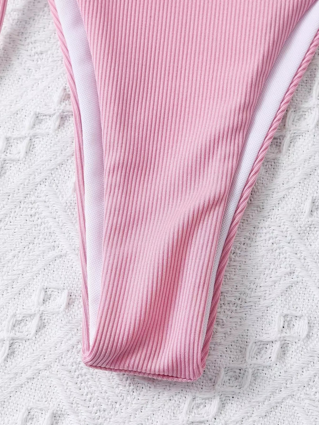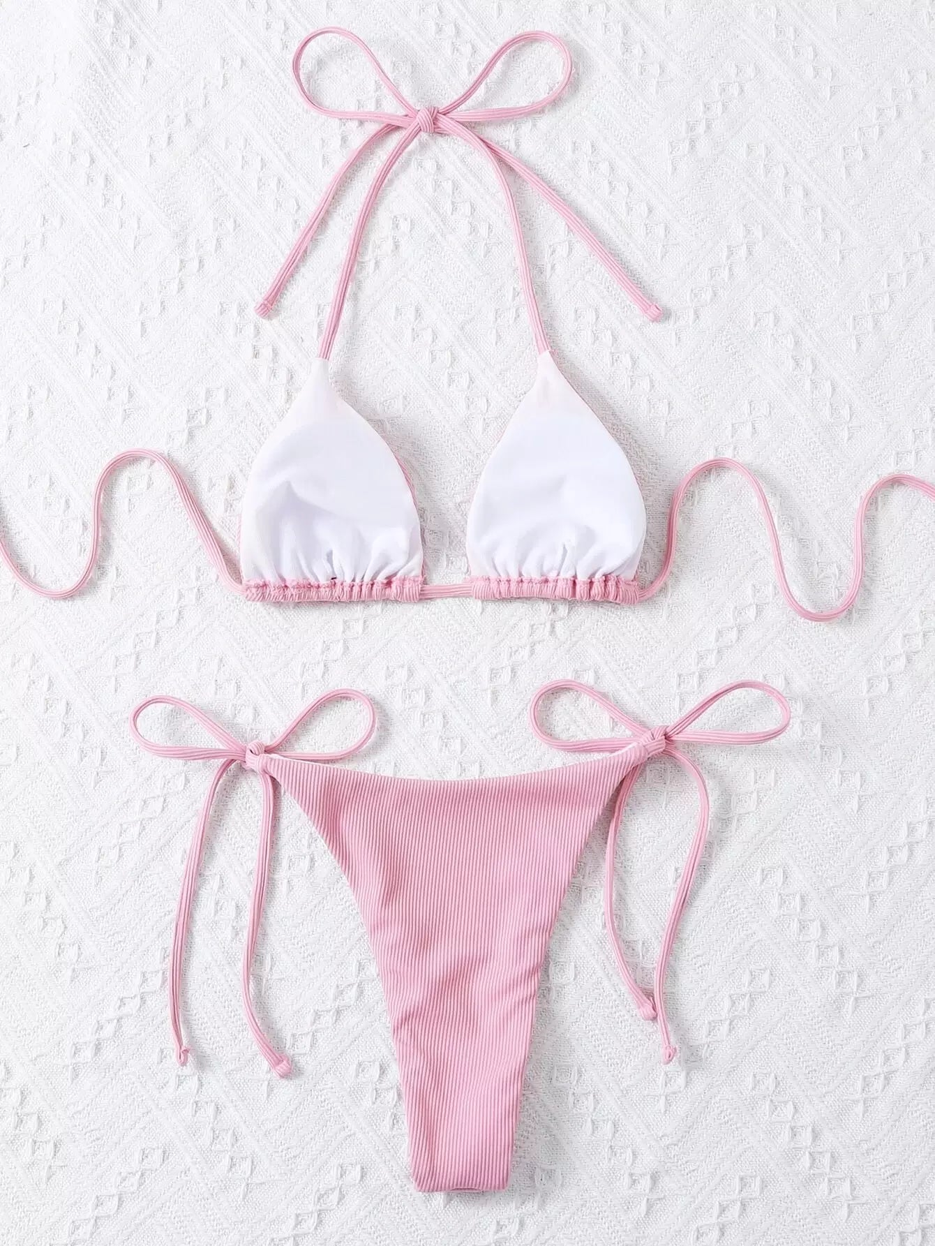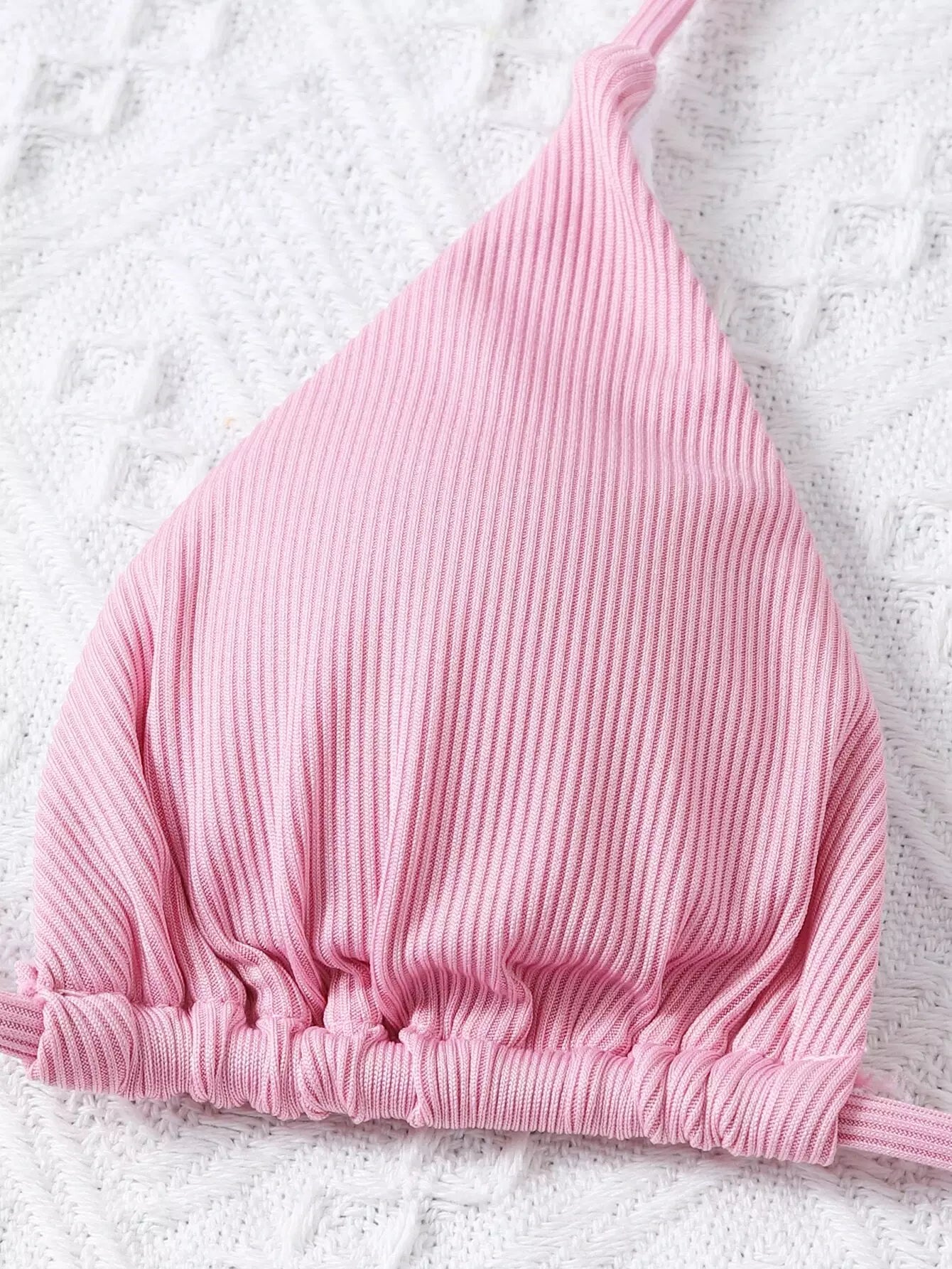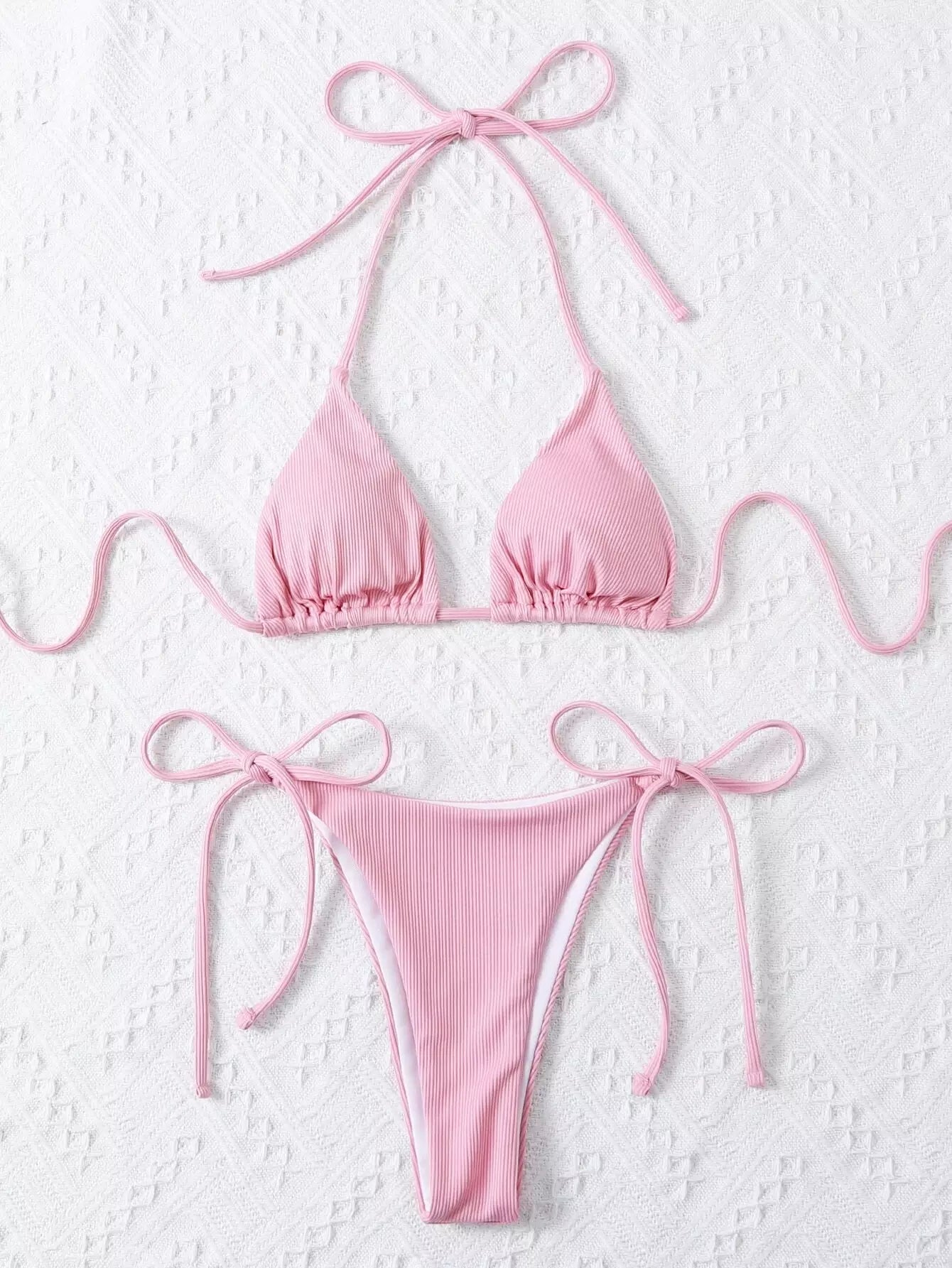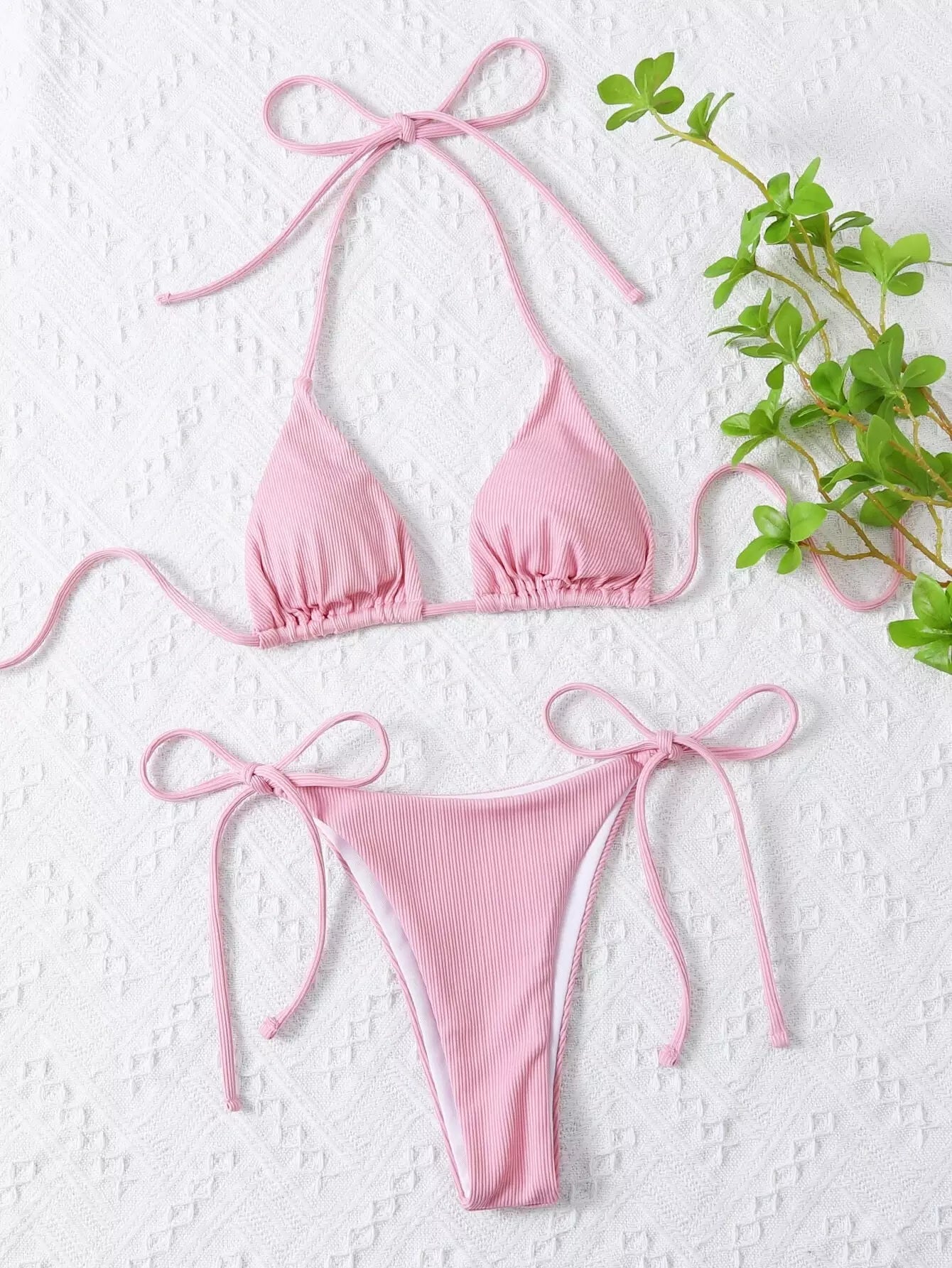 Women - Rib Triangle Tie Side Bikini Swimsuit