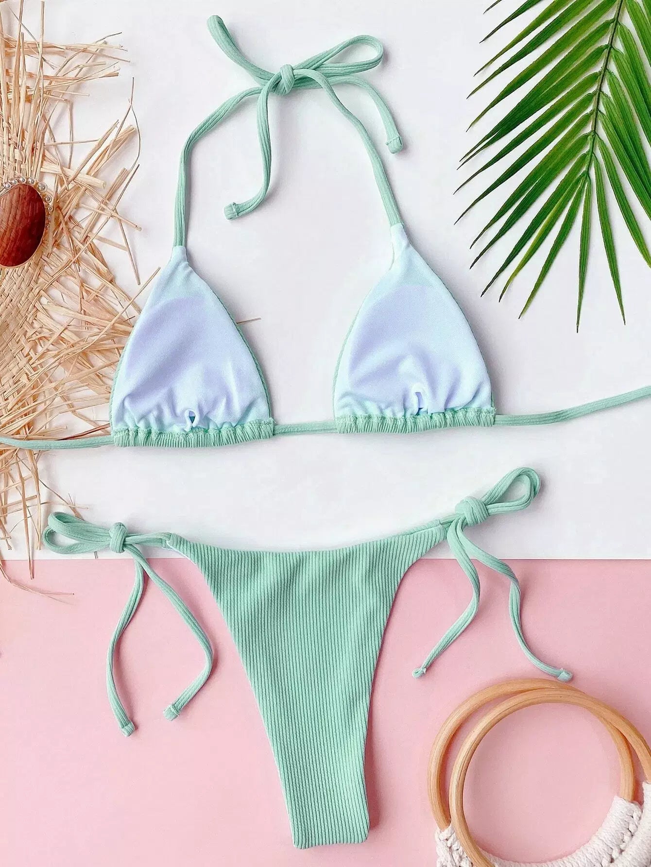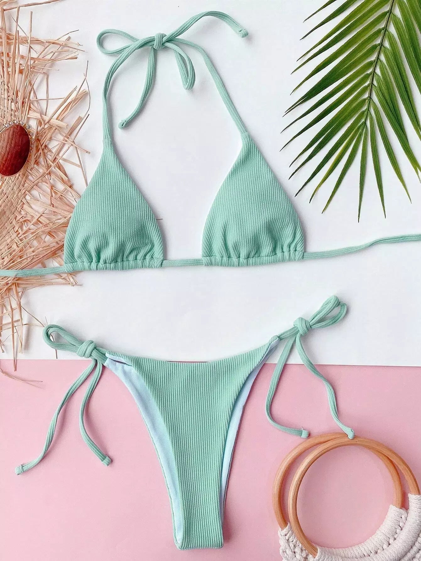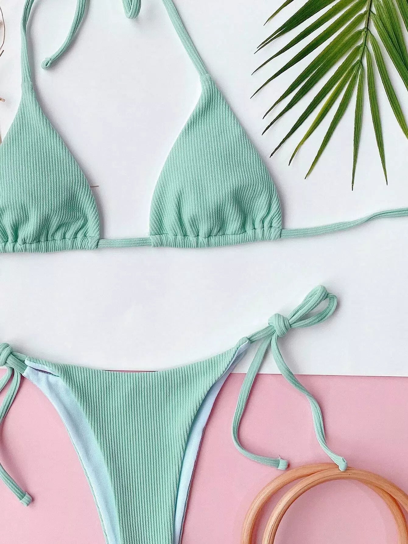 Rib Triangle Tie Side Bikini Swimsuit