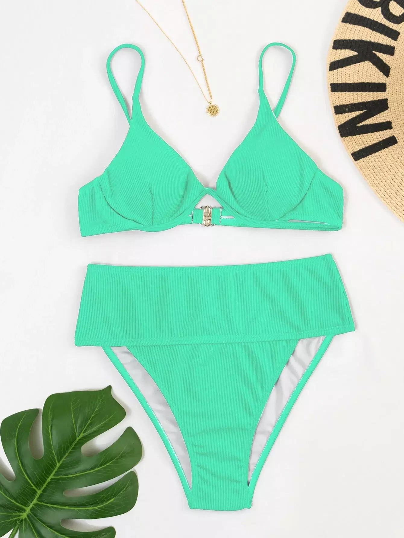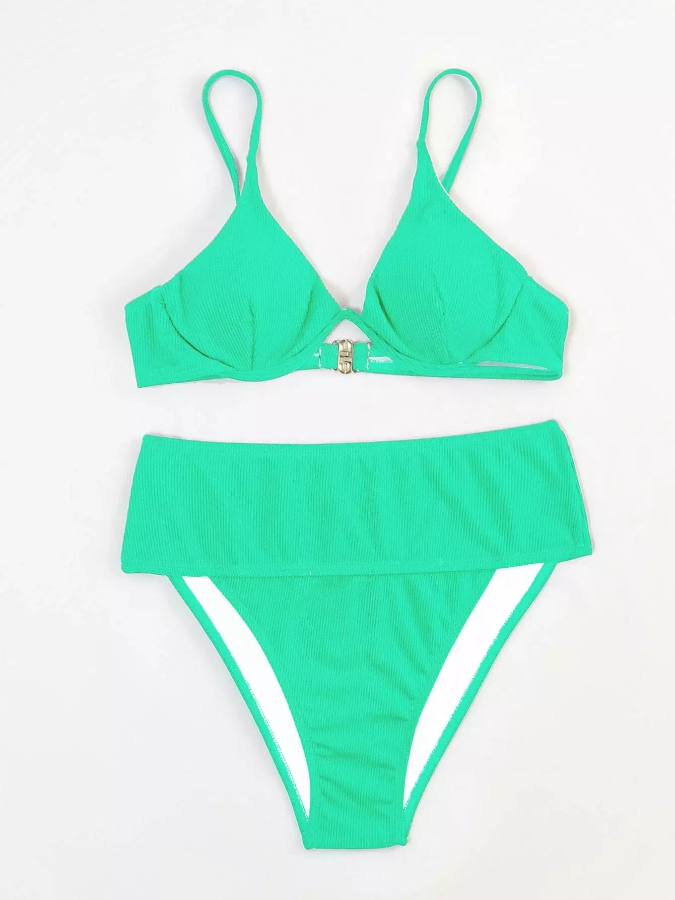 Rib Underwire High Waisted Bikini Swimsuit