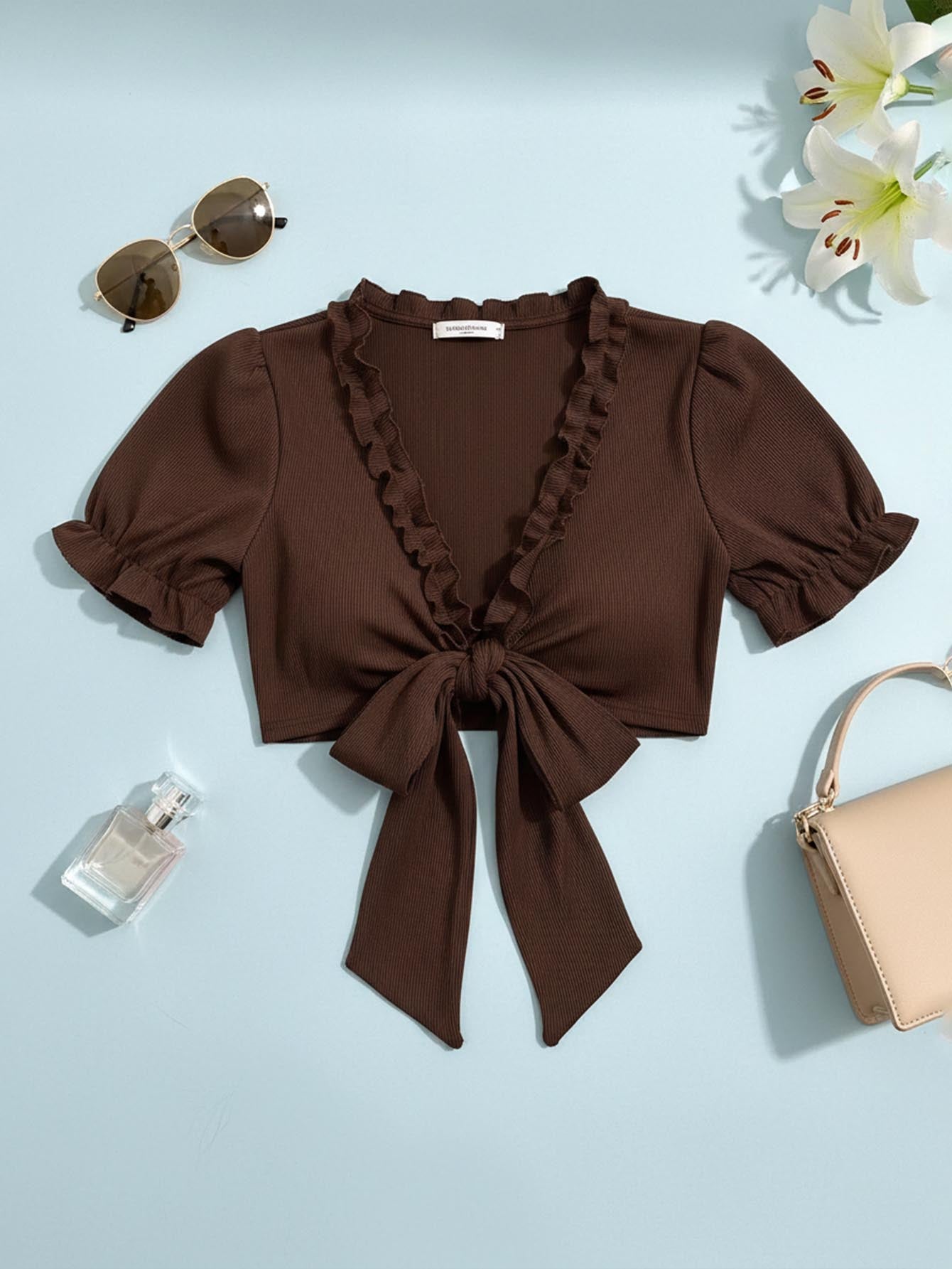 Ribbed Tie Front Crop Top