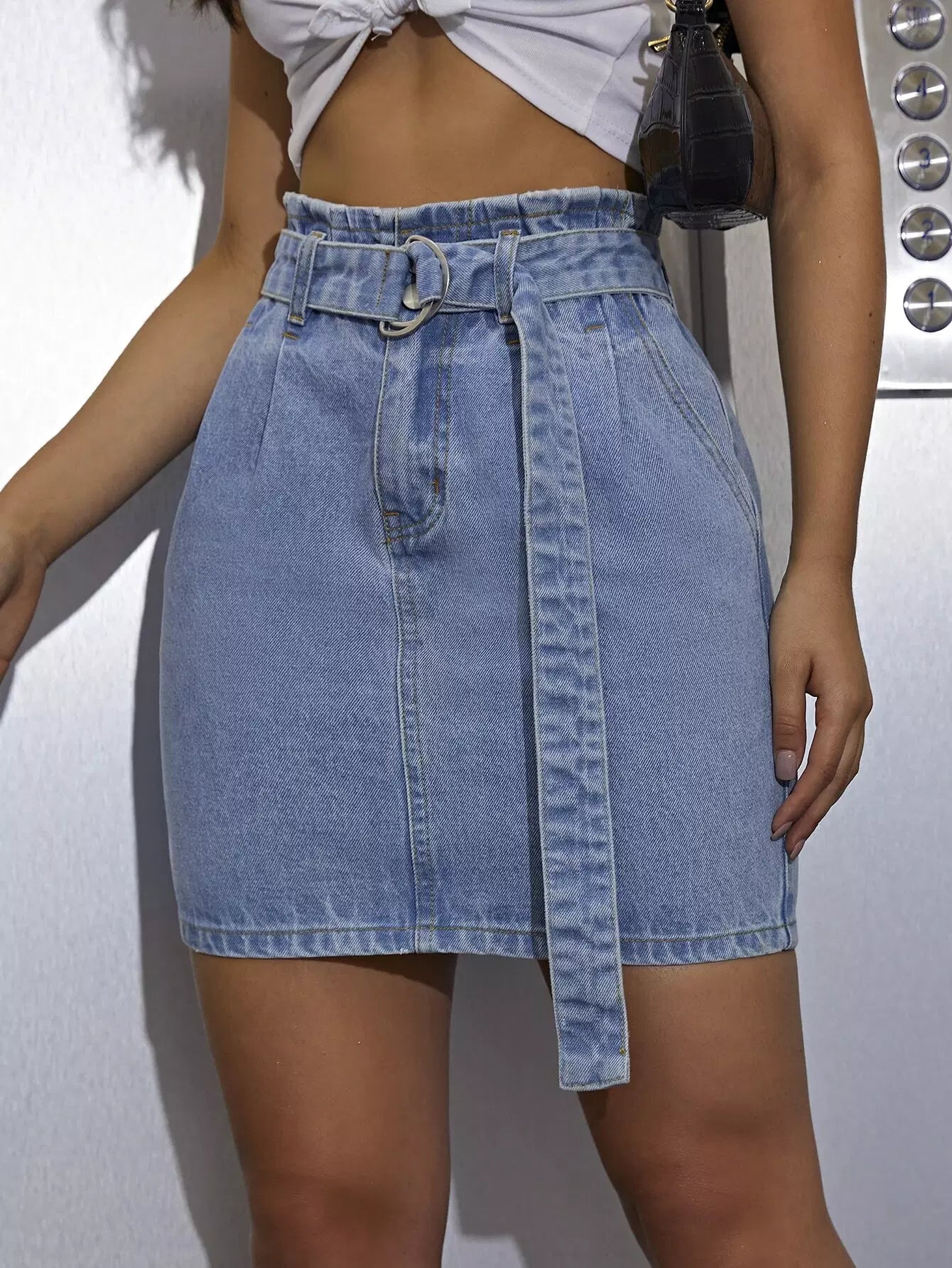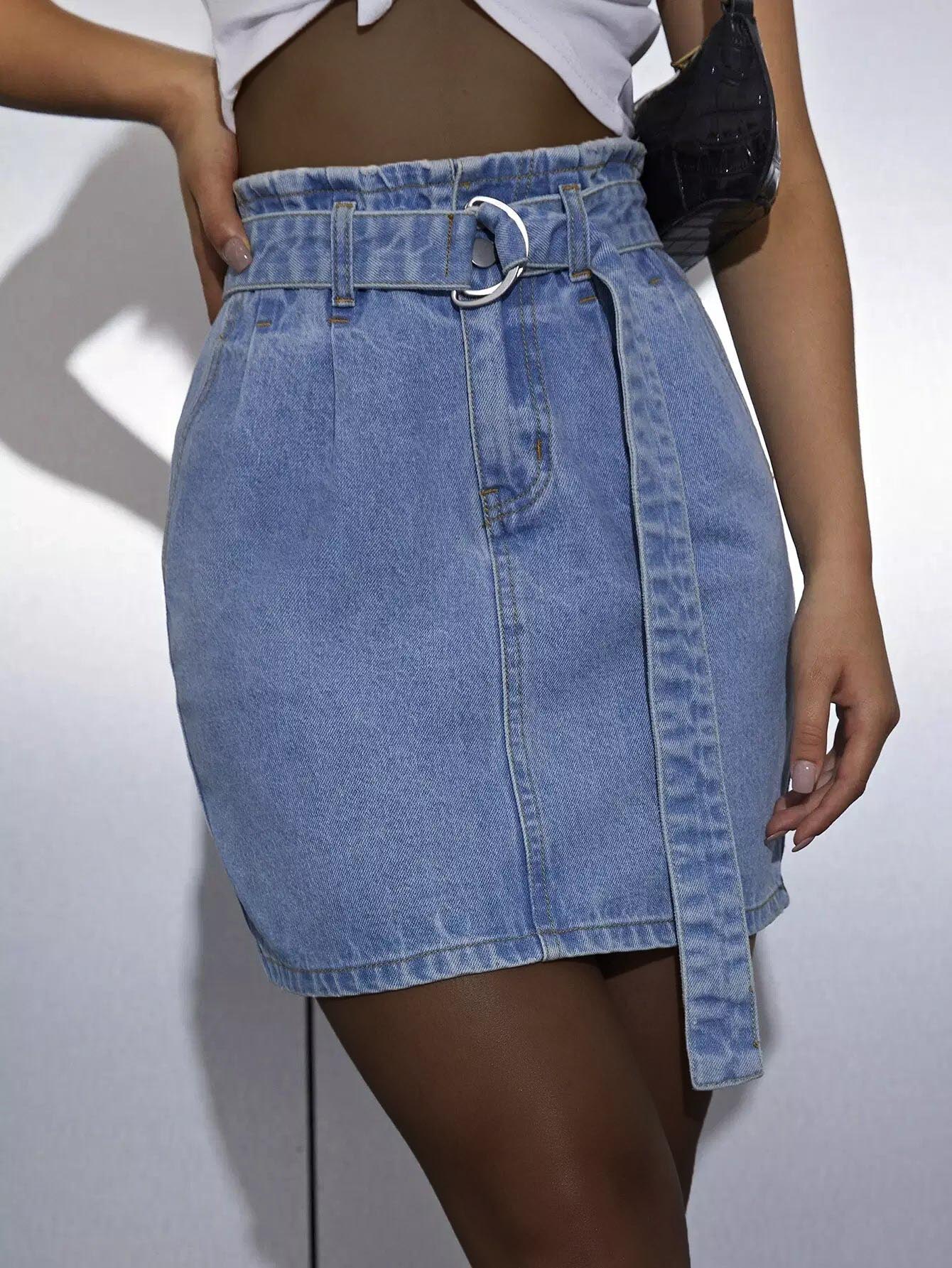Ring Denim Skirt Without Belt