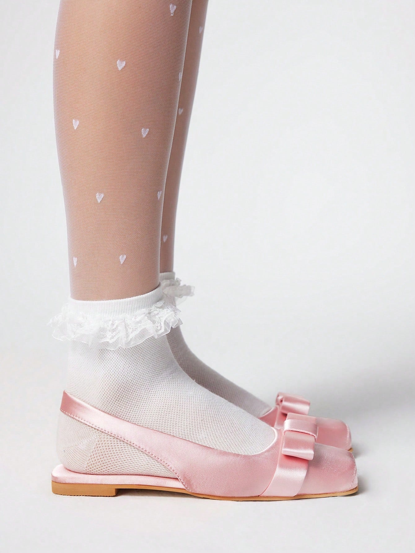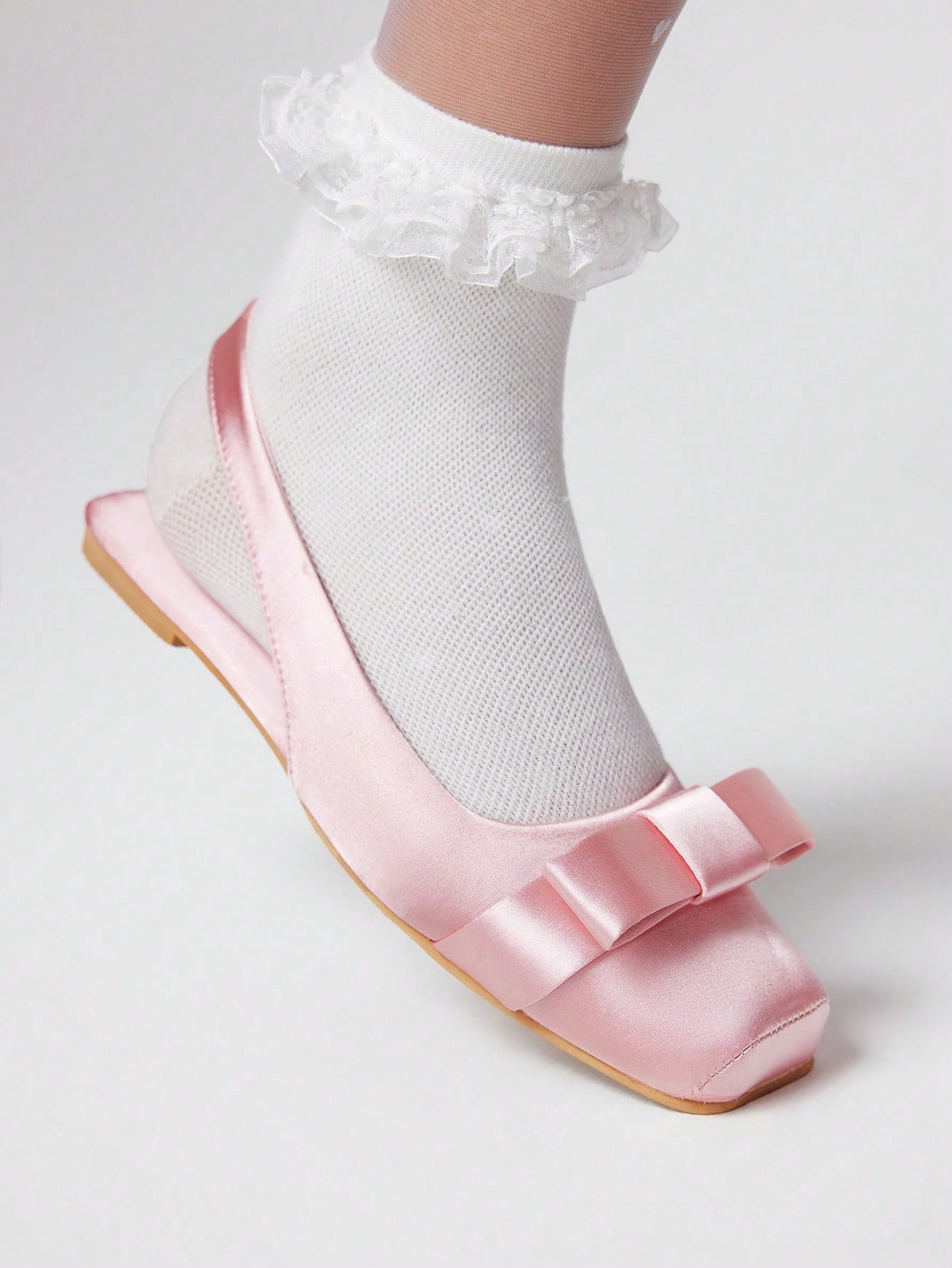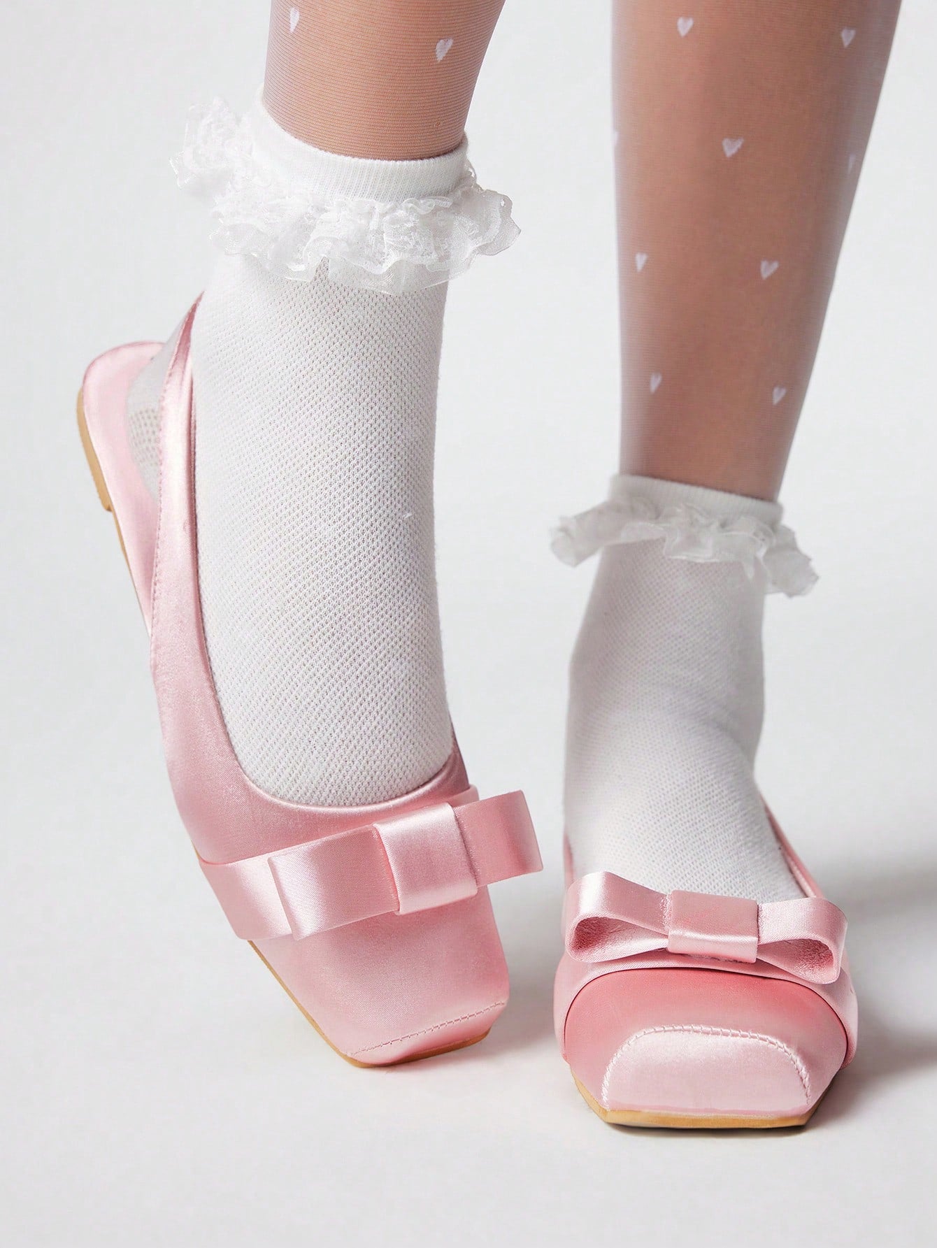 ROMWE Kawaii Women's Ballerina Shoes Black Square Toe Bow Decor Hollow-Out Ballet Flats